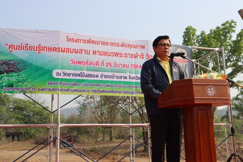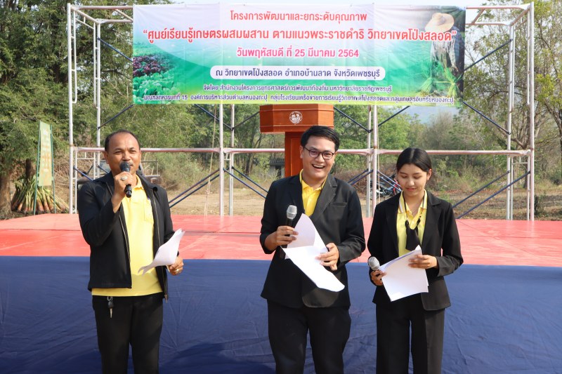 ตามที่มหาวิทยาลัยราชภัฏเพชรบุรี ได้ดำเนินยุทธศาสตร์การพัฒนาท้องถิ่นตามพระบรมราโชบาย ตลอด 2 ปีที่ผ่านมาได้พัฒนาชุมชนต้นแบบ จำนวน 48 หมู่บ้าน ที่สามารถพึ่งพาตนเองและขยายผลไปสู่ชุมชนอื่นได้อย่างเป็นรูปธรรม ในปี 2564 โดยนโยบายของสภามหาวิทยาลัยและดำริของท่านอธิการบดีในปีนี้ให้ใช้พื้นที่วิทยาเขตโป่งสลอดเป็นศูนย์เรียนรู้ เพื่อถ่ายทอดองค์ความรู้ให้กับประชาชนและผู้ที่สนใจ ดังนั้น คณะผู้ดำเนินงานจึงได้จัดทำโครงการพัฒนาและยกระดับศูนย์เรียนรู้เกษตรผสมผสานตามแนวพระราชดำริ วิทยาเขตโป่งสลอด โดยจัดทำในกิจกรรมที่เรียกว่า เดินตามรอยเท้าพ่อ สานต่อความพอเพียง มีวัตถุประสงค์ ดังต่อไปนี้