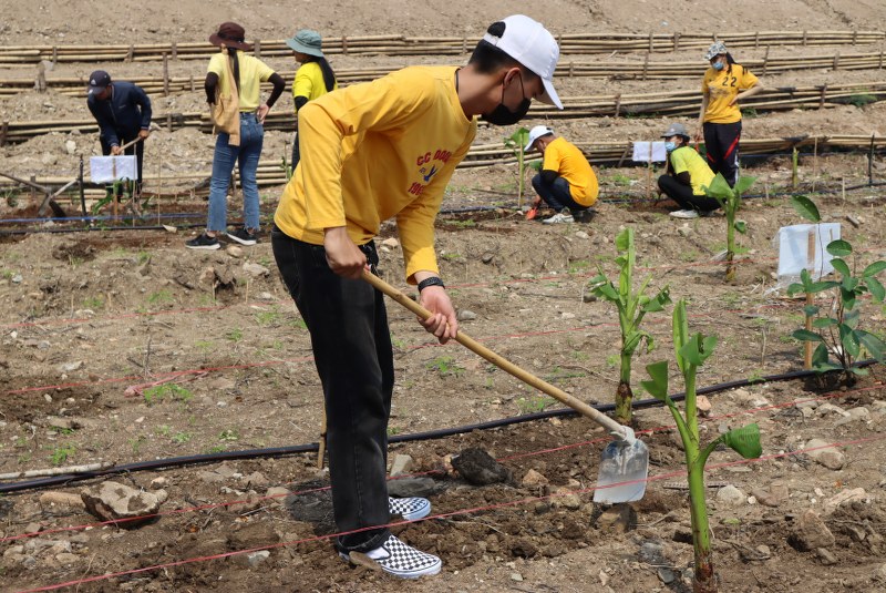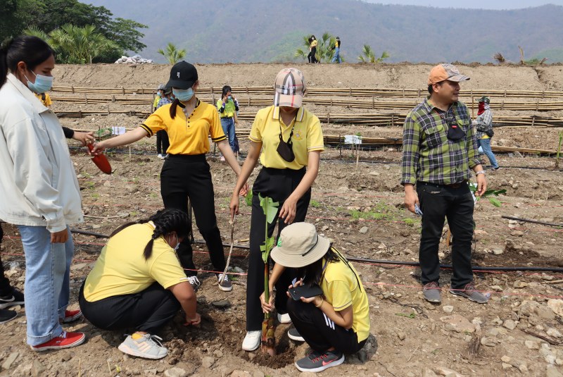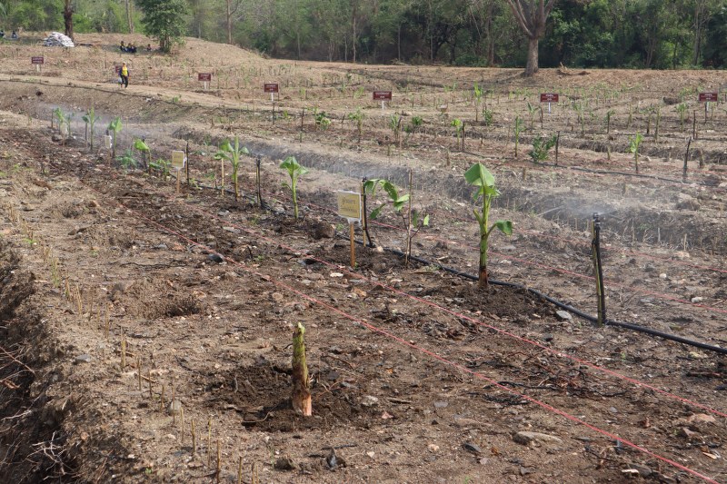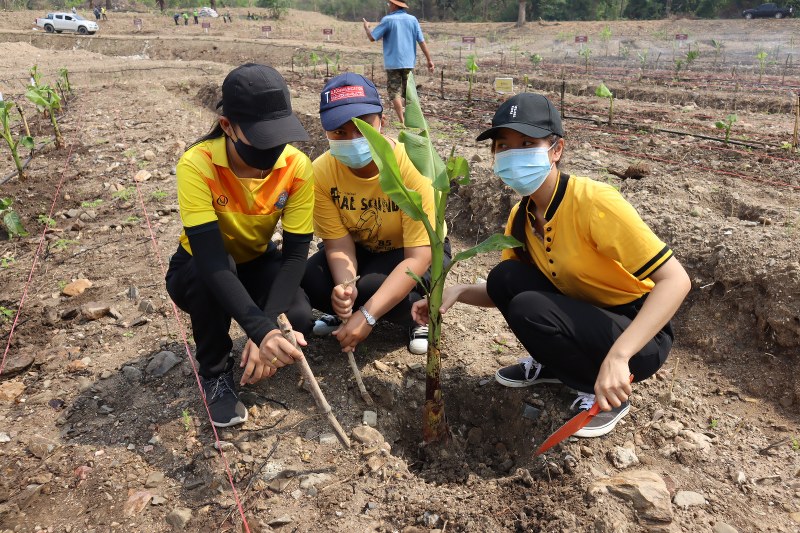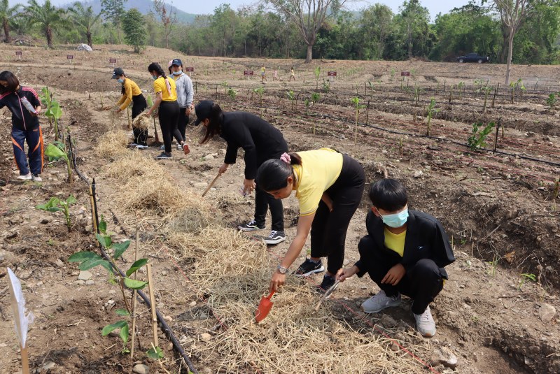 - การปลูกพืชผสมผสานโดยเน้นพืชที่ปลูกกินและเก็บผล เพื่อสร้างรายได้รายวัน รายสัปดาห์ และเก็บผลตลอดทั้งปี โดยพืชที่ปลูกในวันนี้ประกอบด้วย พืชผักสวนครัว เช่น ผักบุ้ง ผักคะน้า กวางตุ้ง กะเพรา โหระพา พริก มะเขือ ผลไม้ เช่น ชมพู่เพชรสายรุ้ง มะนาวแป้นรำไพ ทุเรียนหมอนทอง ส้มโอ กล้วยหอมทอง กล้วยน้ำว้า กล้วยไข่ เป็นต้น นอกจากนั้นยังมีการปลูกกล้วยตามแนวขอบแปลง และมีการปลูกผักสำหรับประชาชนที่เป็นภาคีเครือข่าย ได้ให้ในการบริโภคและจัดจำหน่าย