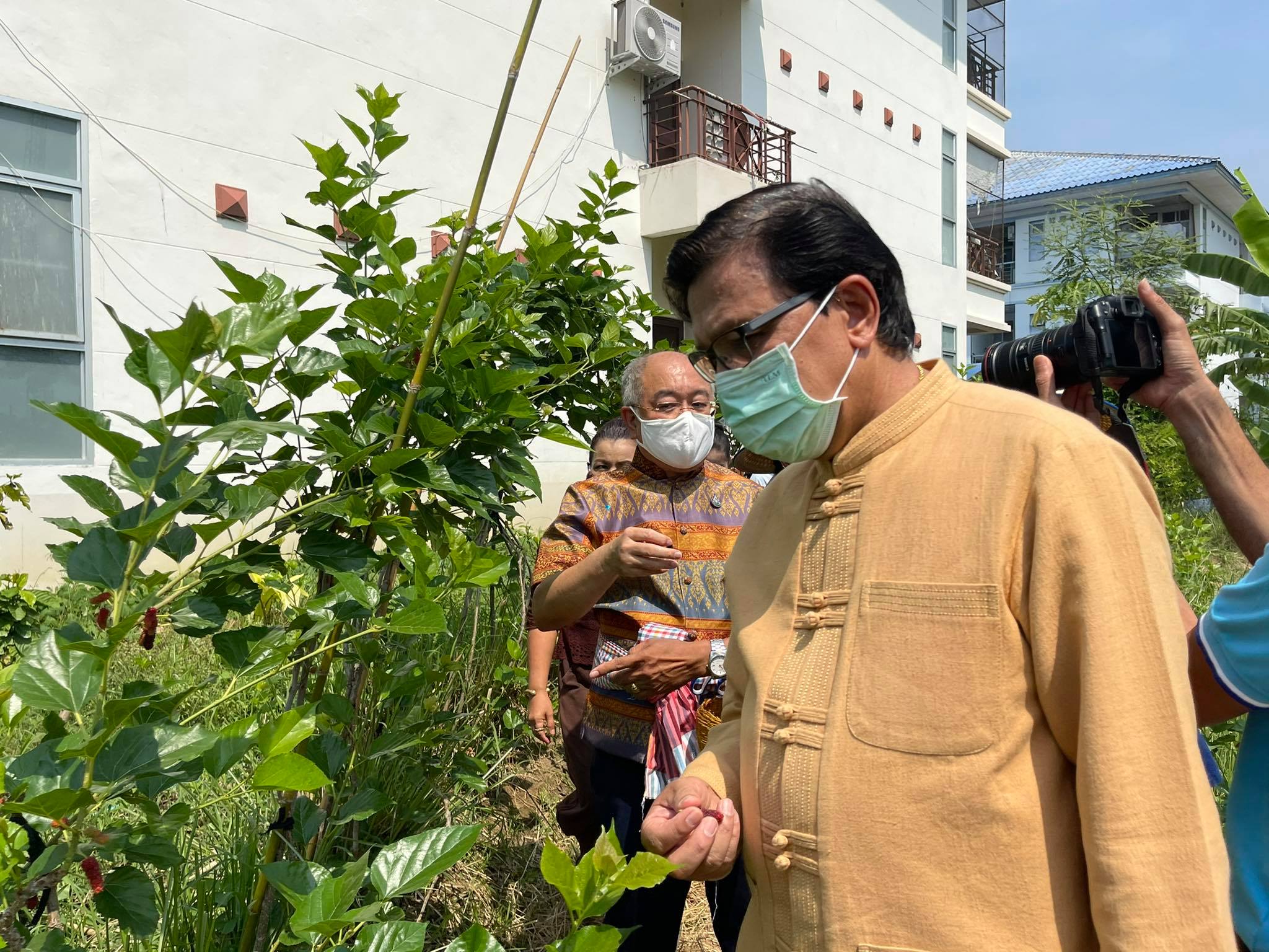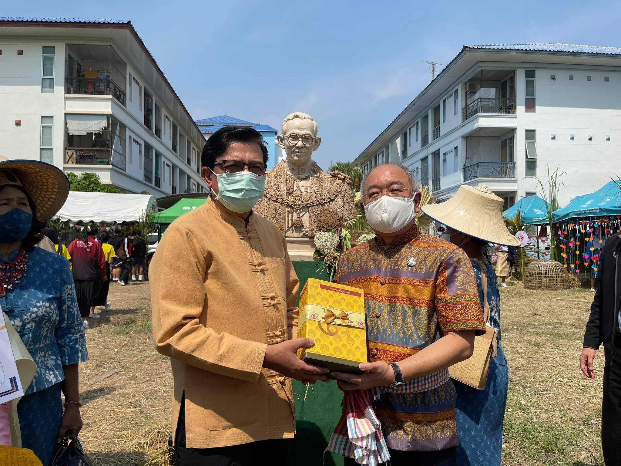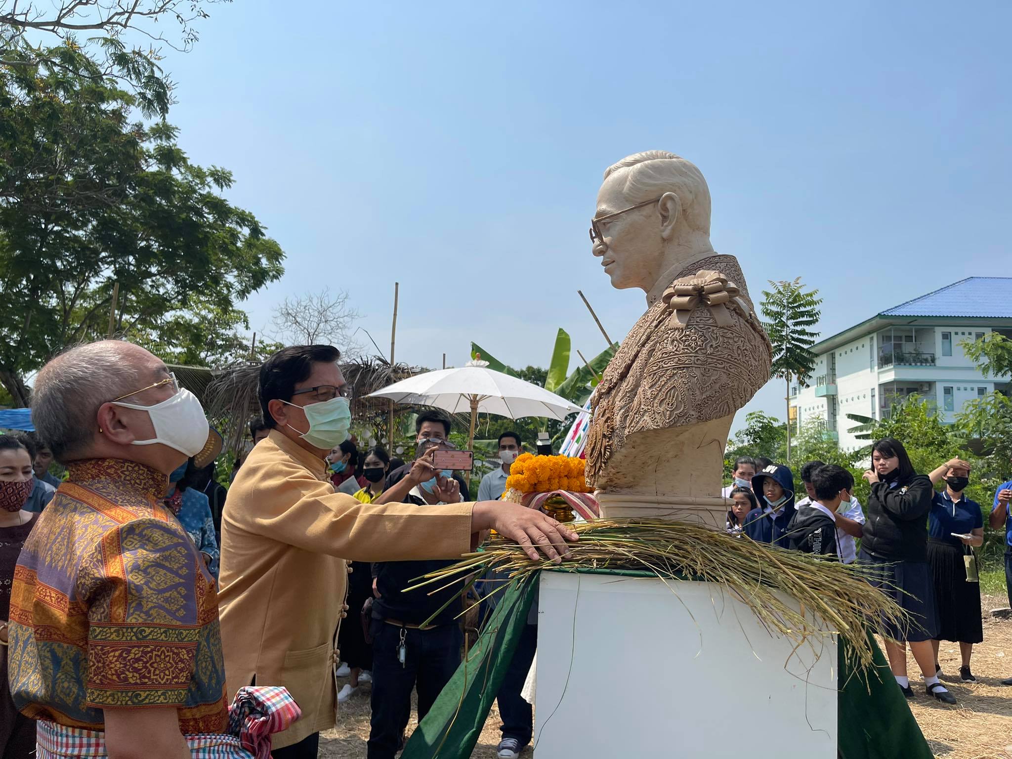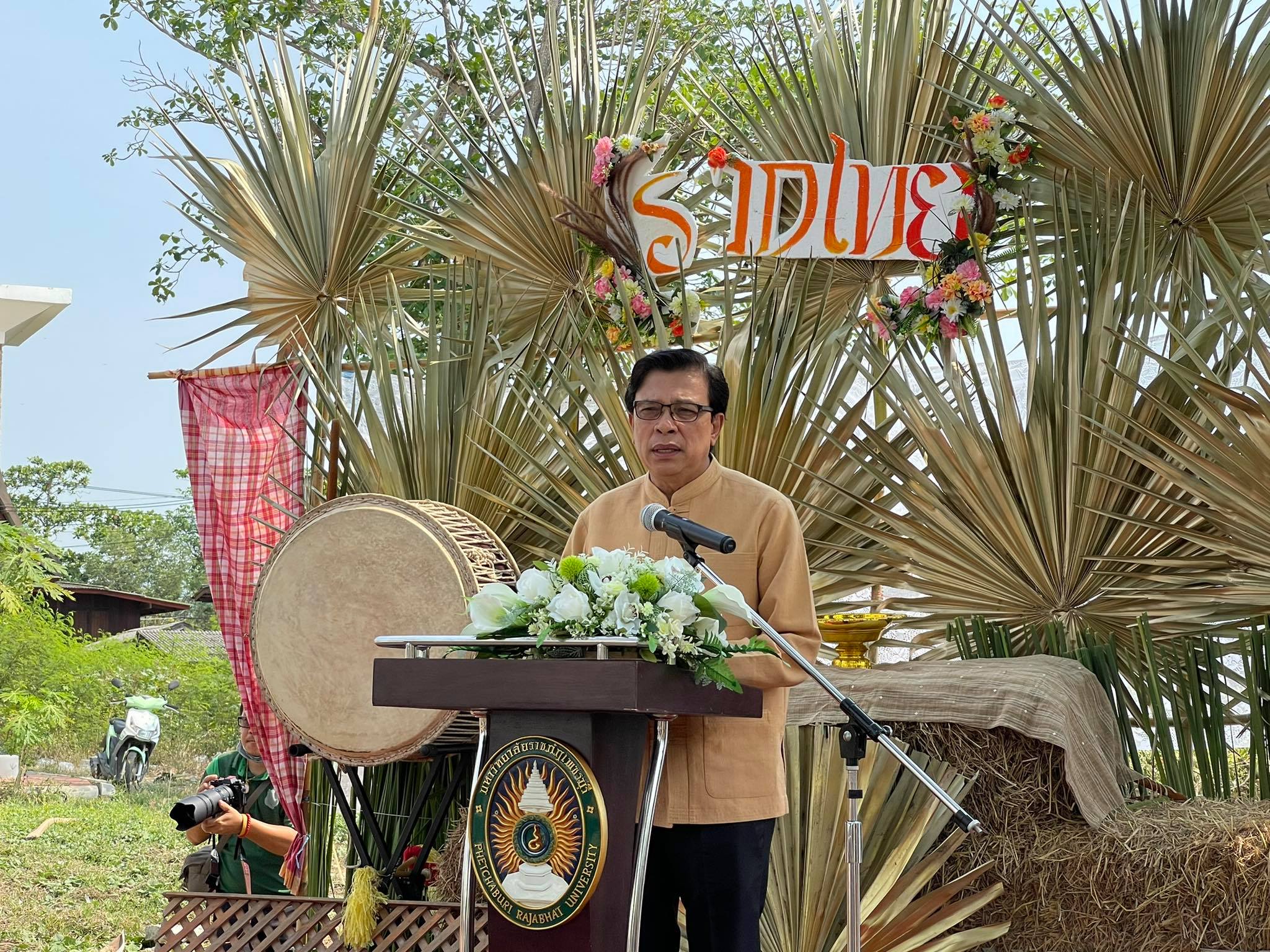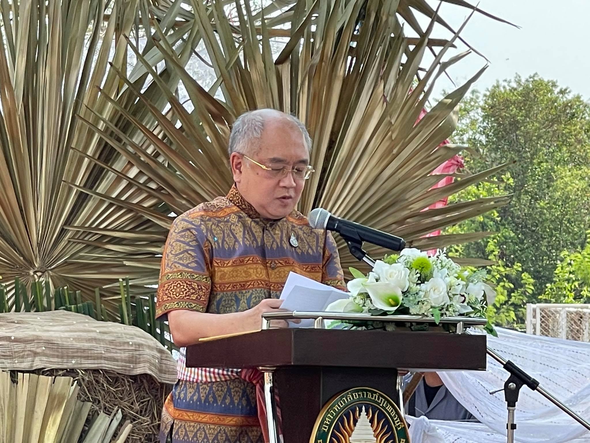ผู้ช่วยศาสตราจารย์ ดร.เสนาะ กลิ่นงาม อธิการบดีมหาวิทยาลัยราชภัฏเพชรบุรี พร้อมด้วยคณะผู้บริหารมหาวิทยาลัยฯ และนักศึกษา ให้การต้อนรับนายภัคพงศ์ ทวิพัฒน์ ผู้ว่าราชการจังหวัดเพชรบุรี และหัวหน้าส่วนราชการ ในโอกาสเดินทางเปิดนิทรรศการ “รากไทย ณ เมืองเพ็ชร ครั้งที่ 3 ตอน หลักการทรงงาน” และกล่าวปาฐกถา หัวข้อ “เพชรบุรีปฐมบทการทรงงาน และคุณูปการต่อสังคมไทย” เมื่อช่วงเช้าวันที่ 26 มีนาคม 2564 ณ ฐานการเรียนรู้ทฤษฎีใหม่สู่ดอนขังใหญ่ มหาวิทยาลัยราชภัฏเพชรบุรี