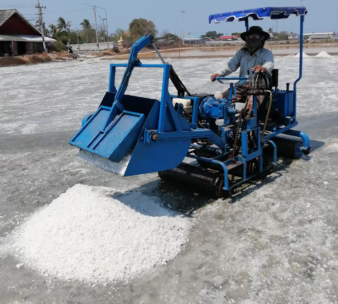 ขณะที่ผลการทดสอบสมรรถนะของรถลำเลียงเกลือแบบตัวตักด้านหน้ากึ่งอัตโนมัติ พบว่า สามารถวิ่งบนแปลงนาเกลือที่มีผิวแน่นด้วยความเร็วค่าเฉลี่ย 7 กิโลเมตรต่อชั่วโมง บรรทุกได้ครั้งละไม่เกิน 100 กิโลกรัม แต่ถ้าเป็นพื้นที่ที่มีผิวนิ่ม ความเร็วเฉลี่ยลดลงอยู่ที่ 5 กิโลเมตรต่อชั่วโมง ตัวตักด้านหน้าสามารถตักเกลือได้ในปริมาณเฉลี่ย 45 กิโลกรัมต่อ 1 ครั้ง โดยกะบะบรรทุกเกลือสามารถบรรทุกเกลือได้ 150 กิโลกรัม ซึ่งจะสามารถทดแทนแรงงานคนได้ 4 คน และการทดสอบการทำงานของระบบกึ่งอัตโนมัติ พบว่า สามารถทำงานได้โดยกดปุ่มอัตโนมัติหมุนได้ 360 องศา เพื่อเทเกลือจากบุ้งกี๋เก็บไว้ในยุ้งฉาง