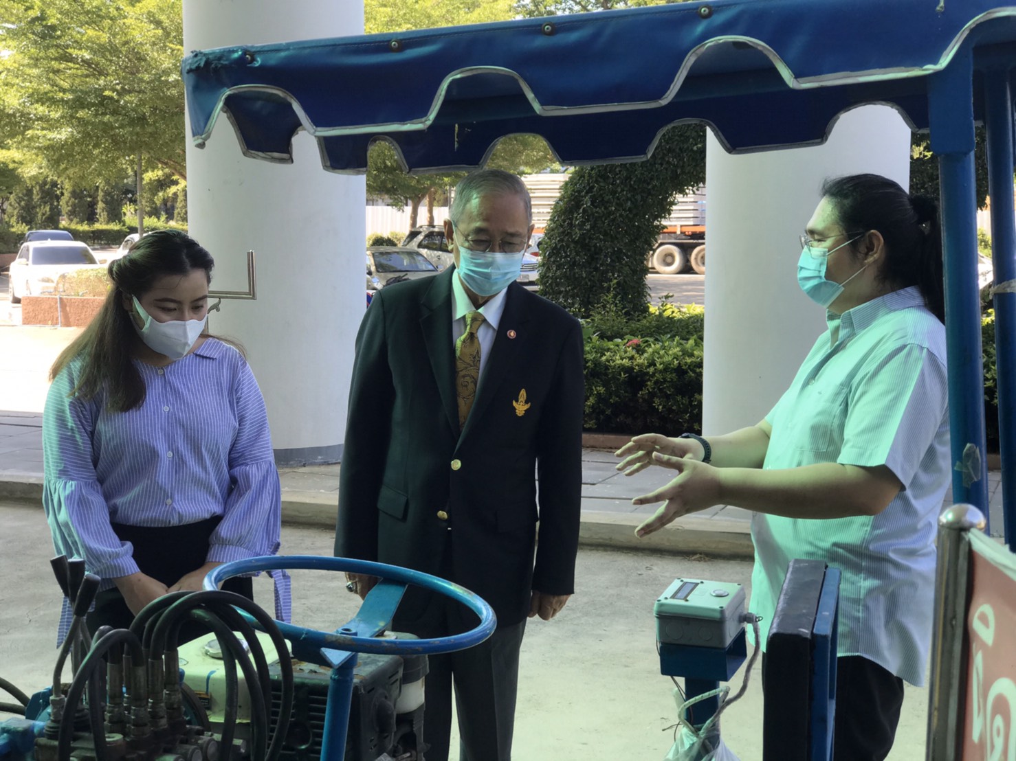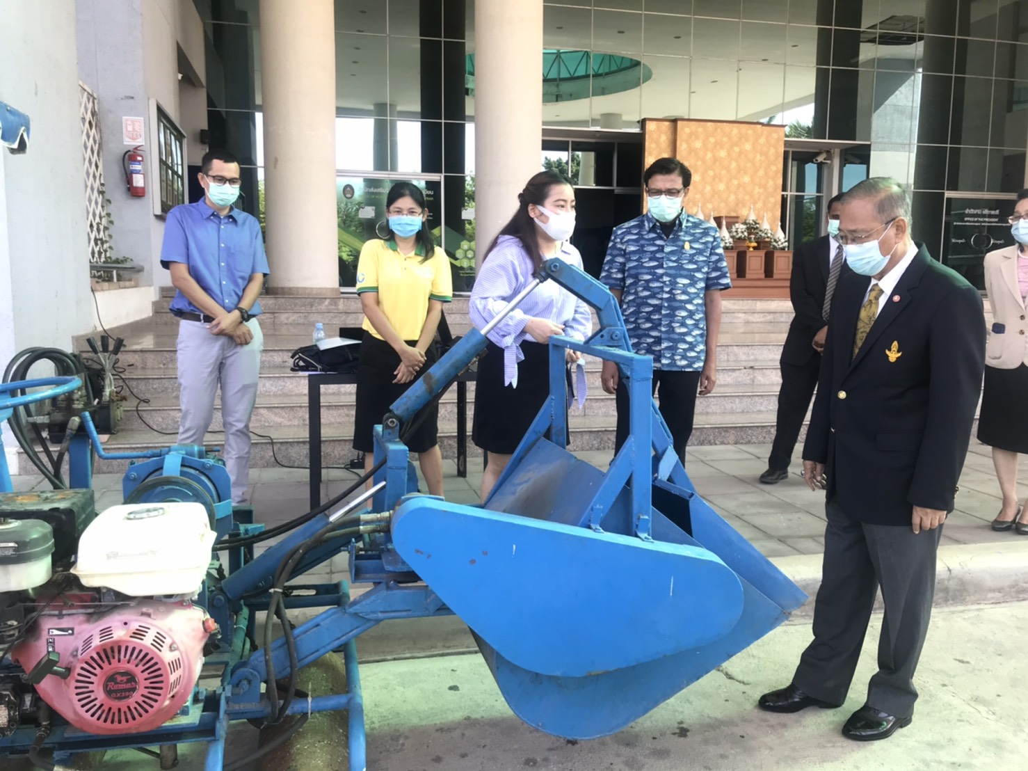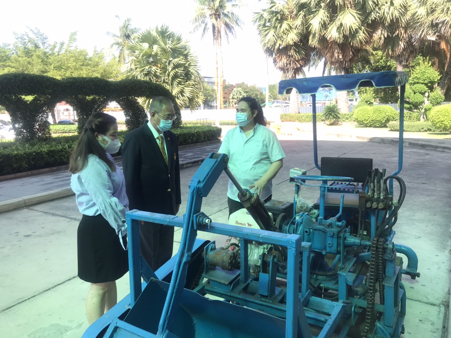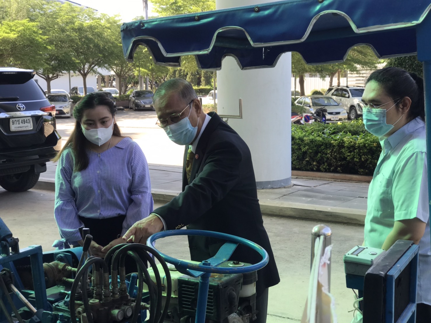 นายกสภามหาวิทยาลัยฯ ชมผลงานรถลำเลียงเกลือแบบตัวตักด้านหน้ากึ่งอัตโนมัติ ทดแทนการใช้แรงงานคนที่น้อยลง