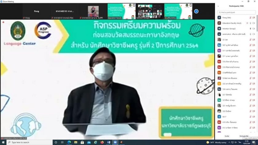 ศูนย์พัฒนาภาษาและวิเทศสัมพันธ์ร่วมกับศูนย์พัฒนาวิชาชีพครู ศูนย์เทคโนโลยีดิจิทัล และสำนักส่งเสริมวิชาการและงานทะเบียน จัดพิธีปฐมนิเทศกิจกรรมเตรียมความพร้อมก่อนสอบวัดมาตรฐานสมรรถนะภาษาอังกฤษสำหรับนักศึกษาวิชาชีพครู รุ่นที่ 2 ประจำปีการศึกษา 2564 รูปแบบ Online และจัดสอบวัดระดับก่อนเรียนให้แก่นักศึกษาหลักสูตรครุศาสตรบัณฑิต จำนวน 415 ราย โดยได้รับเกียรติจากผู้ช่วยศาสตราจารย์ ดร.เสนาะ กลิ่นงาม อธิการบดีมหาวิทยาลัยราชภัฏเพชรบุรี เป็นประธานในพิธีเปิดปฐมนิเทศ โดยมีผู้บริหาร คณบดี และคณาจารย์ให้เกียรติเข้าร่วมการเปิดพิธีดังกล่าว เมื่อช่วงบ่ายวันที่ 18 สิงหาคม 2564