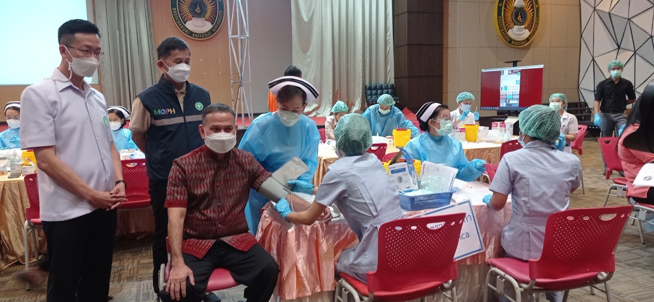 เมื่อช่วงเช้าวันที่ 6 มกราคม 2565 ณ ห้องประชุมพะนอมแก้วกำเนิด อาคารสุเมธตันติเวชกุล มหาวิทยาลัยราชภัฏเพชรบุรี ผู้ช่วยศาสตราจารย์ ดร.เสนาะ กลิ่นงาม อธิการบดีมหาวิทยาลัยราชภัฏเพชรบุรี ให้การต้อนรับนายณัฐวุฒิ เพ็ชรพรหมศร ผู้ว่าราชการจังหวัดเพชรบุรี ในโอกาสที่เดินทางมาตรวจเยี่ยมหน่วยฉีดวัคซีน Covid-19 ที่มหาวิทยาลัยราชภัฏเพชรบุรีได้ร่วมกับโรงพยาบาลพระจอมเกล้าจังหวัดเพชรบุรีจัดขึ้น ระหว่างวันที่ 6 – 21 มกราคม นี้