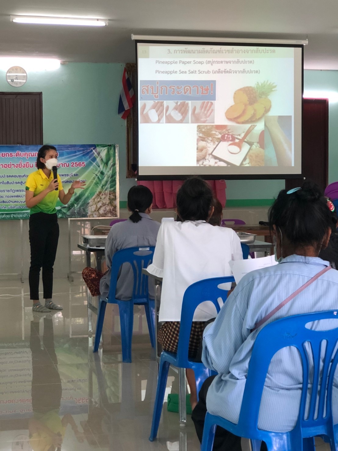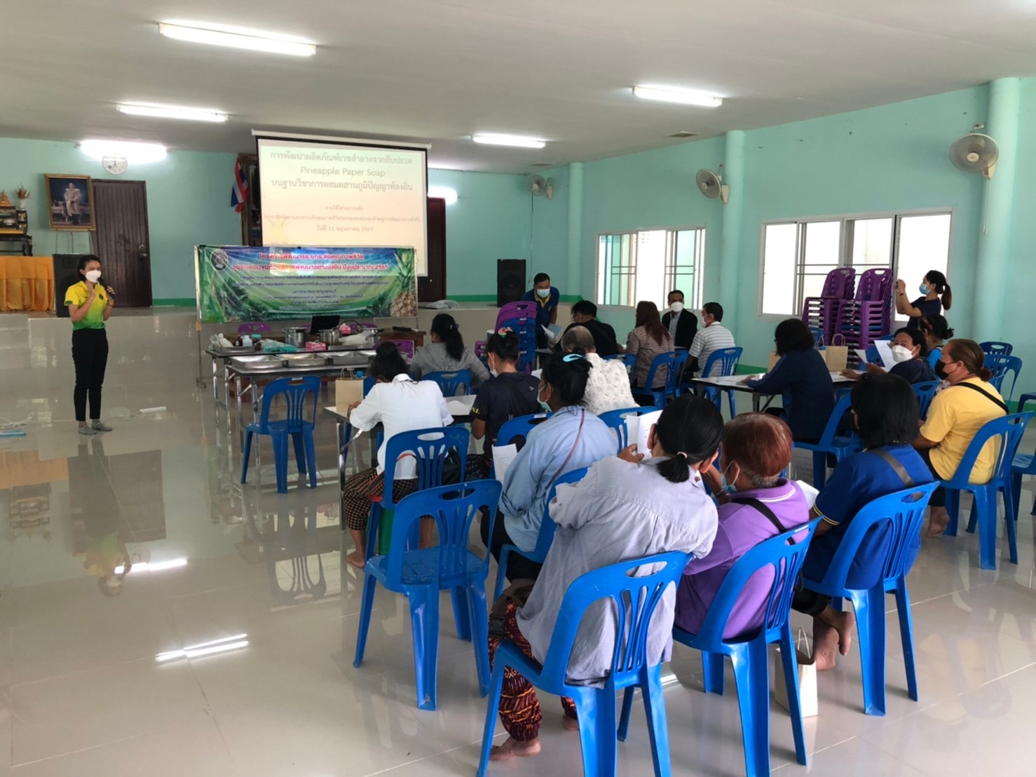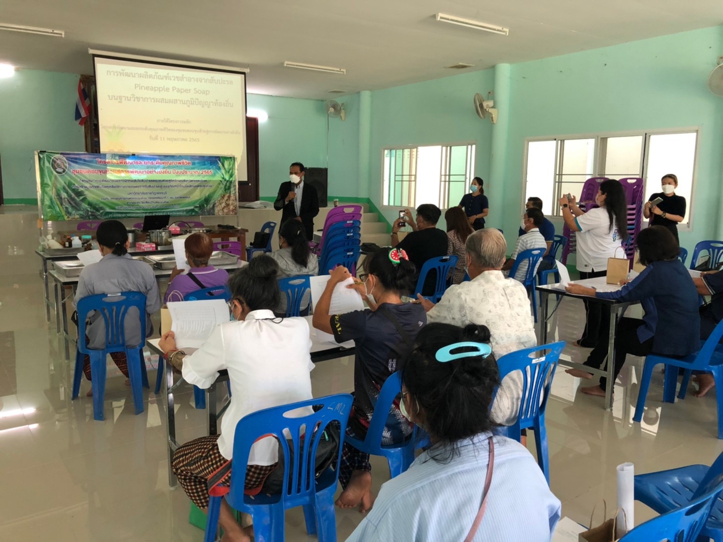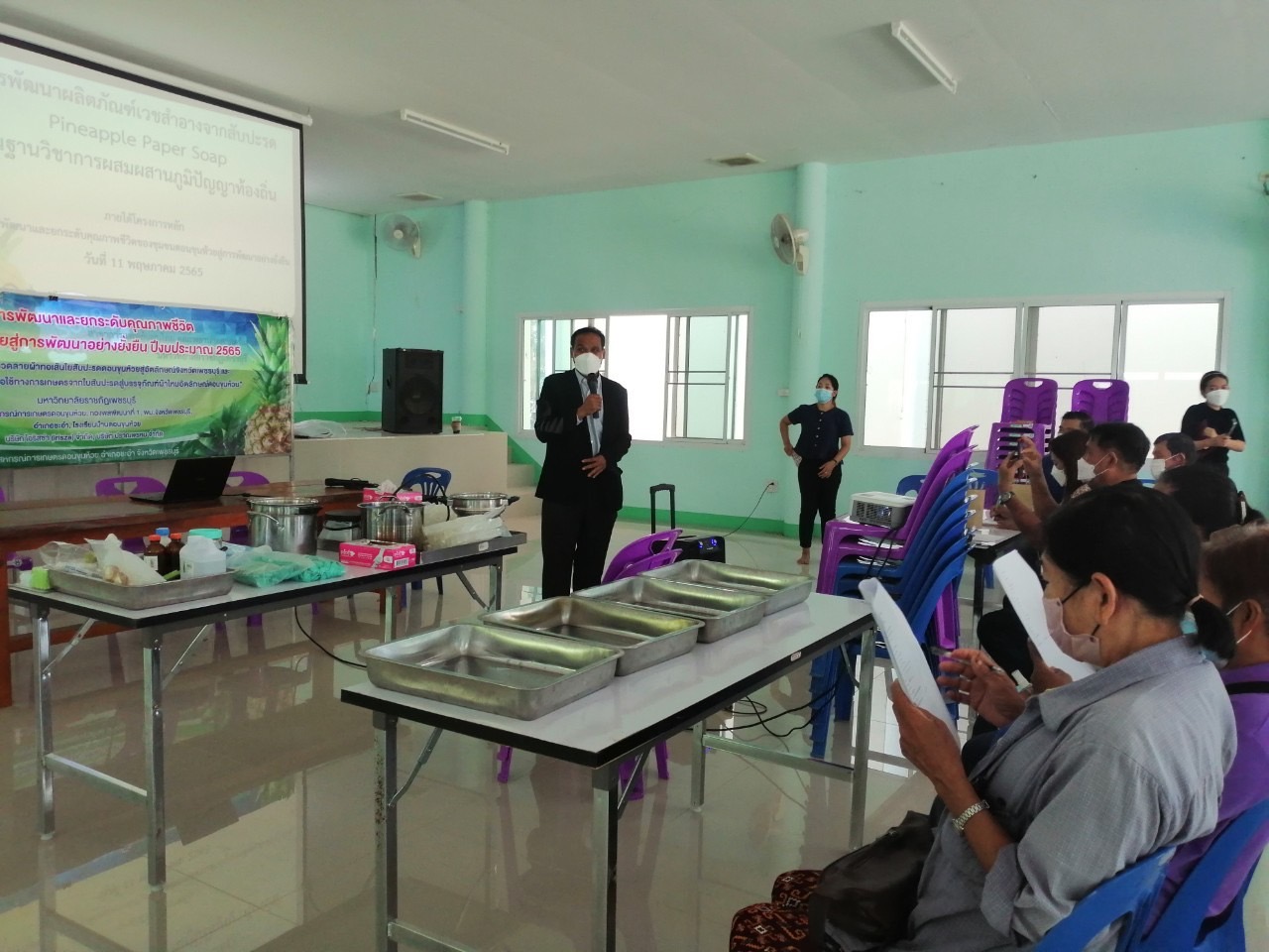 โครงการพัฒนาผลิตภัณฑ์เวชสำอางจากสับปะรด 12 พฤษภาคม 202212 พฤษภาคม 2022Thitiporn Karaketข่าวสื่อสารองค์กร จำนวนผู้ชม : 144 คณะพยาบาลศาสตร์และวิทยาการสุขภาพ จัดโครงการพัฒนาผลิตภัณฑ์เวชสำอางจากสับปะรด บนฐานวิชาการผสมผสานภูมิปัญญาท้องถิ่น ผู้ช่วยศาสตราจารย์พจนารถ บัวเขียว รองอธิการบดีมหาวิทยาลัยราชภัฏเพชรบุรี เป็นประธานเปิด โครงการพัฒนาผลิตภัณฑ์เวชสำอางจากสับปะรด “Pineapple Paper Soap and Pineapple Sea Salt Scrub” บนฐานวิชาการผสมผสานภูมิปัญญาท้องถิ่น ที่คณะพยาบาลศาสตร์และวิทยาการสุขภาพได้จัดขึ้นเมื่อวันที่ 11 พฤษภาคม 2565 ณ สหกรณ์การเกษตรดอนขุนห้วย อำเภอชะอำ จังหวัดเพชรบุรีสืบเนื่องจากประชาชนในตำบลดอนขุนห้วยส่วนใหญ่ประกอบอาชีพปลูกสับปะรด เพราะสภาพพื้นที่ส่วนใหญ่มีความแห้งแล้ง สภาพดินและปริมาณฝนมีความเหมาะสมในการปลูกสับปะรด แต่เมื่อมีการปลูกเป็นจำนวนมากส่งผลให้เกิดปัญหาราคาผลผลิตตกต่ำ เกษตรกรขาดความรู้ในการพัฒนาให้เป็นผลิตภัณฑ์ที่หลากหลาย มหาวิทยาลัยราชภัฏเพชรบุรี โดยคณะพยาบาลศาสตร์และวิทยาการสุขภาพ จึงได้เข้าไปสนับสนุน ต่อยอดผลิตภัณฑ์เพื่อให้เกิดความยั่งยืนในท้องถิ่นและยังเป็นการยกระดับคุณภาพชีวิตของประชาชนคณะพยาบาลศาสตร์และวิทยาการสุขภาพ ซึ่งประกอบไปด้วยสาขาวิชาพยาบาลศาสตร์ สาขาวิชาการแพทย์แผนไทยและสาขาวิชาสาธารณสุขศาสตร์ มีความเชี่ยวชาญทางด้านสุขภาพและการพัฒนาต่อยอดผลิตภัณฑ์เชิงสุขภาพ เช่น เครื่องสำอาง เวชภัณฑ์ ยาสมุนไพร เป็นต้น ซึ่งการลงพื้นที่ในครั้งนี้ ได้มีการต่อยอดในเรื่องของการนำสับปะรดมาพัฒนาเป็นสบู่กระดาษและเกลือสครับสับปะรด# กลุ่มงานสื่อสารองค์กร มหาวิทยาลัยราชภัฏเพชรบุรี Facebook iconFacebookTwitter iconTwitterLINE iconLine