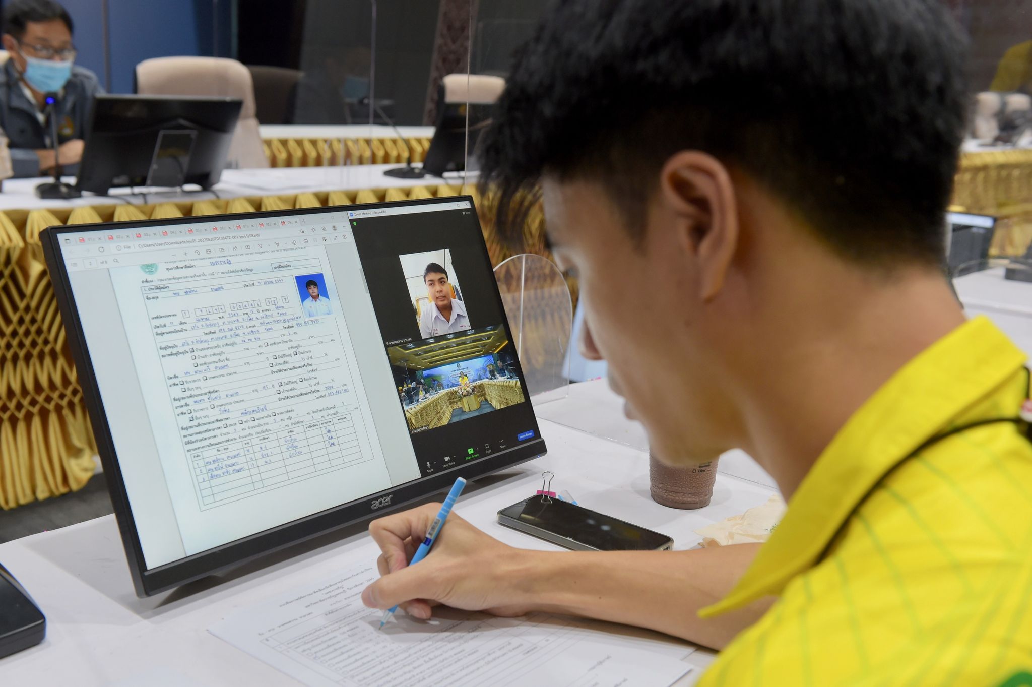 สัมภาษณ์นักศึกษาเข้ารับทุน “เพชรราชภัฏ” 21 พฤษภาคม 202221 พฤษภาคม 2022Thitiporn Karaketข่าวสื่อสารองค์กร จำนวนผู้ชม : 125 กองพัฒนานักศึกษาสัมภาษณ์นักศึกษาใหม่ เพื่อเข้ารับทุนการศึกษายกเว้นค่าเล่าเรียน “เพชรราชภัฏ” อาจารย์ ดร.เมธาวิน สาระยาน ผู้ช่วยอธิการบดีมหาวิทยาลัยราชภัฏเพชรบุรี พร้อมด้วยนายกิตติภพ รักษาราษฎร์ รักษาการผู้อำนวยการกองพัฒนานักศึกษา และผู้แทนคณาจารย์ สัมภาษณ์นักศึกษาที่สมัครเข้ารับทุนการศึกษา “เพชรราชภัฏ” ประเภททุนยกเว้นค่าเล่าเรียน สำหรับนักศึกษาใหม่ ชั้นปีที่ 1 ปีการศึกษา 2565 เมื่อวันที่ 20 พฤษภาคม 2565 ผ่านระบบออนไลน์ สำหรับทุนการศึกษา“เพชรราชภัฏ” เป็นทุนการศึกษาแบบต่อเนื่องจนสำเร็จการศึกษา ประเภทยกเว้นค่าเล่าเรียน เพื่อเป็นการเทิดพระเกียรติแด่องค์พระมหากษัตริย์ไทยที่ทรงมีพระมหากรุณาธิคุณต่อมหาวิทยาลัยราชภัฏทั่วประเทศ และเป็นการเพิ่มโอกาสทางการศึกษาให้กับนักเรียนที่จบชั้นมัธยมศึกษาปีที่ 6 ที่ประสงค์จะเข้ามาศึกษาต่อในสาขาวิชาต่าง ๆ ของมหาวิทยาลัยราชภัฏเพชรบุรี ในปีการศึกษา 2565 ทั้งนี้ จะมีการประกาศรายชื่อผู้ผ่านการคัดเลือกรับทุนการศึกษา “เพชรราชภัฏ” ปีการศึกษา 2565 ในวันที่ 25 พฤษภาคม นี้ จากนั้นนักศึกษาที่ผ่านการคัดเลือกจะต้องยืนยันสิทธิ์การรับทุนการศึกษาในวันที่ 31 พฤษภาคม นี้# กลุ่มงานสื่อสารองค์กร มหาวิทยาลัยราชภัฏเพชรบุรี Facebook iconFacebookTwitter iconTwitterLINE iconLine
