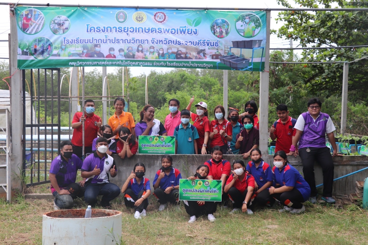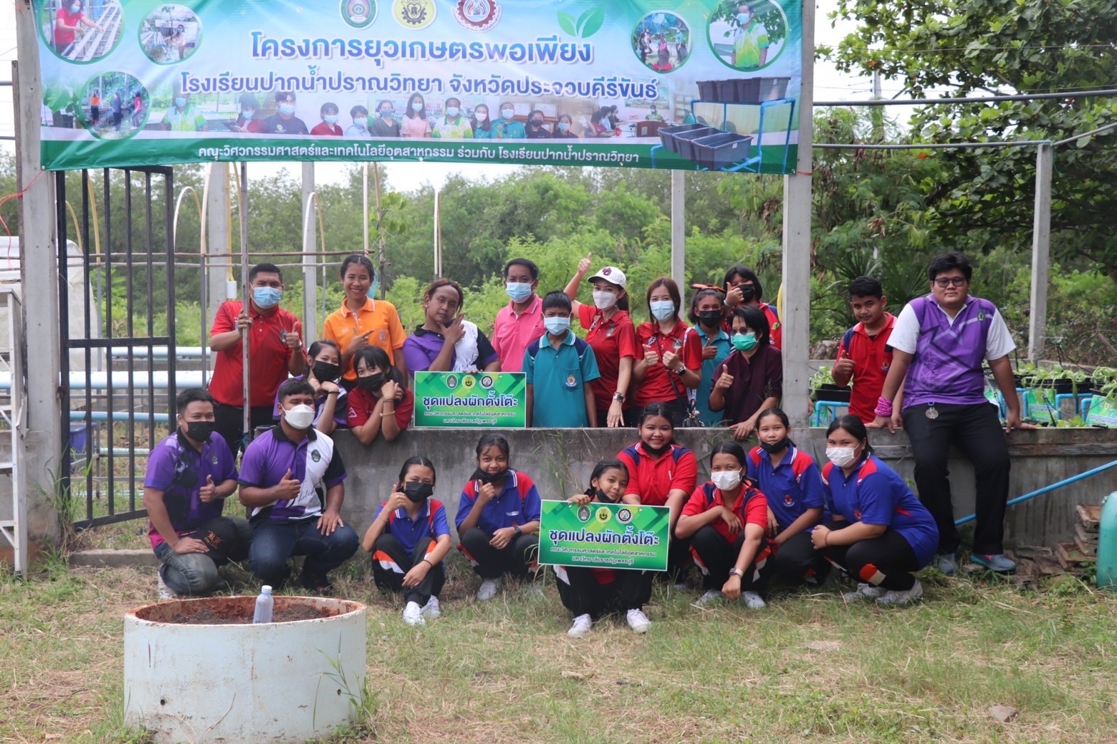 คณะวิศวกรรมศาสตร์และเทคโนโลยีอุตสาหกรรม นำโดยอาจารย์ชลีดล อินยาศรี รองคณบดีคณะวิศวกรรมศาสตร์และเทคโนโลยีอุตสาหกรรม นำทีมสโมสรนักศึกษาและคณาจารย์ ลงพื้นที่โรงเรียนปากน้ำปราณวิทยา อำเภอปราณบุรี จังหวัดประจวบคีรีขันธ์ เพื่อดำเนินโครงการยุวเกษตรพอเพียง เมื่อวันที่ 31 พฤษภาคม 2565 เพื่อพัฒนาทักษะ soft skills ด้วยเครื่องมือวิศวกรสังคม หลังจากที่ได้มีกิจกรรมอบรมออนไลน์การออกแบบระบบน้ำและการประมาณราคาและเทคนิคการทำแปลงปลูกผักตั้งโต๊ะจากท่อ PVC ไปเมื่อวันที่ 25 พฤษภาคม ที่ผ่านมา
