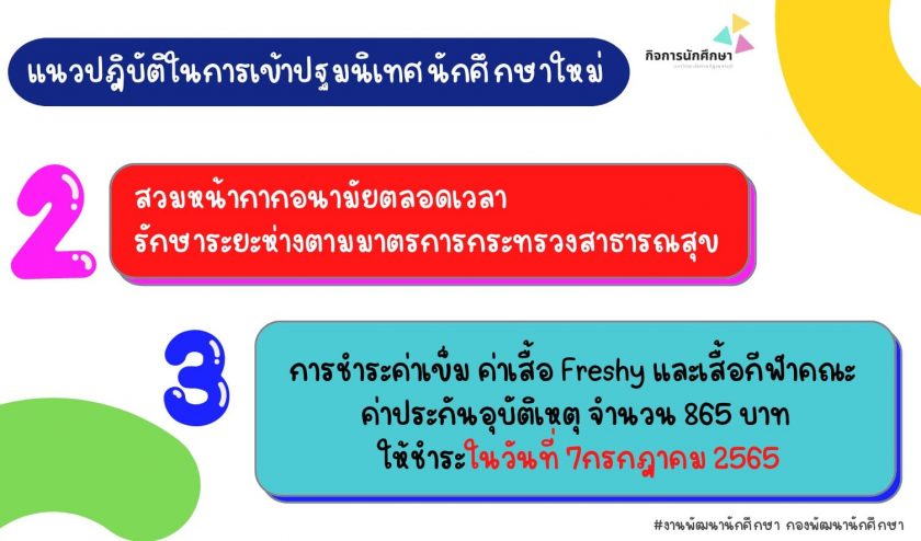 เรื่อง การรายงานตัวและกิจกรรมปฐมนิเทศนักศึกษาใหม่ ประจำปีการศึกษา 2565