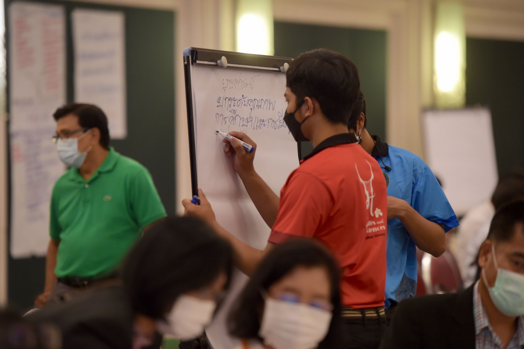 มหาวิทยาลัยราชภัฏเพชรบุรี สัมมนาพลิกโฉมมหาวิทยาลัย 16 มิถุนายน 202216 มิถุนายน 2022Thitiporn Karaketข่าวสื่อสารองค์กร จำนวนผู้ชม : 182 มหาวิทยาลัยราชภัฏเพชรบุรี สัมมนาพลิกโฉมมหาวิทยาลัย “การพัฒนารูปแบบการปฏิรูประบบกลไกการบริหารจัดการเพื่อพัฒนาท้องถิ่น” ผู้ช่วยศาสตราจารย์ ดร.เสนาะ กลิ่นงาม อธิการบดีมหาวิทยาลัยราชภัฏเพชรบุรี นำคณะผู้บริหารมหาวิทยาลัยฯ ประธานสาขาวิชา หัวหน้าสำนักงาน ผู้อำนวยการกอง กลุ่มงาน ศูนย์ เข้าร่วมโครงการสัมมนา “การพัฒนารูปแบบการปฏิรูประบบกลไกการบริหารจัดการเพื่อพัฒนาท้องถิ่น : ภายใต้โครงการพลิกโฉมมหาวิทยาลัยราชภัฎเพชรบุรี” ระหว่างวันที่ 13 – 15 มิถุนายน 2565 ณ The Regent Cha Am Beach Resort อ.ชะอำ จ.เพชรบุรี การสัมมนาในครั้งนี้มีวัตถุประสงค์เพื่อสร้างความเข้าใจให้กับบุคลากรในการเป็นผู้นำการเปลี่ยนแปลง ที่พร้อมรับมือกับการบริหารจัดการและการทำงานร่วมกับเทคโนโลยี นวัตกรรมและระบบการบริหารจัดการสมัยใหม่ เข้าใจหน้าที่และสิทธิของคนที่อยู่ร่วมกันในสังคม พัฒนาภาวะผู้นำ ผู้บริหาร การพัฒนาผู้สอน การสอน กระบวนการเรียนรู้ และให้บุคลากรสามารถมองเห็นแนวทางในการพัฒนามหาวิทยาลัยราชภัฏเพชรบุรีในอนาคต สำหรับหัวข้อในการสัมมนา ประกอบไปด้วย การพลิกโฉมมหาวิทยาลัยราชภัฏเพชรบุรีต่อ “การผลิตและพัฒนาบุคลากรวิชาชีพและสาขาเฉพาะทาง” เพื่อการขับเคลื่อนประเทศ การสร้างความรู้และความเข้าใจเกี่ยวกับนโยบาย แนวทางการดำเนินการในการขับเคลื่อนเพื่อให้เกิดการพลิกโฉมสถาบันอุดมศึกษา สอดคล้องกับทิศทางการพัฒนาประเทศตามยุทธศาสตร์ชาติและแผนปฏิรูปประเทศ นอกจากนี้ยังมี Workshop การนำข้อมูลที่ได้จากการวิเคราะห์สภาพแวดล้อมและวิเคราะห์สภาวการณ์ปัจจุบันของมหาวิทยาลัย สู่การจัดทำ (ร่าง) แผนยุทธศาสตร์ปี พ.ศ. 2566 – 2570 ที่มีความสอดคล้องและเชื่อมโยงกับการพลิกโฉมมหาวิทยาลัย (Reinventing University) การแบ่งกลุ่มเพื่อนำเสนอกลยุทธ์จาก TOWS Matrix สู่การจัดทำโครงการ/ตัวชี้วัด/เป้าหมายของแผนยุทธศาสตร์ฯ ระยะ 5 ปี (พ.ศ. 2566-2570)# กลุ่มงานสื่อสารองค์กร มหาวิทยาลัยราชภัฏเพชรบุรี Facebook iconFacebookTwitter iconTwitterLINE iconLine
