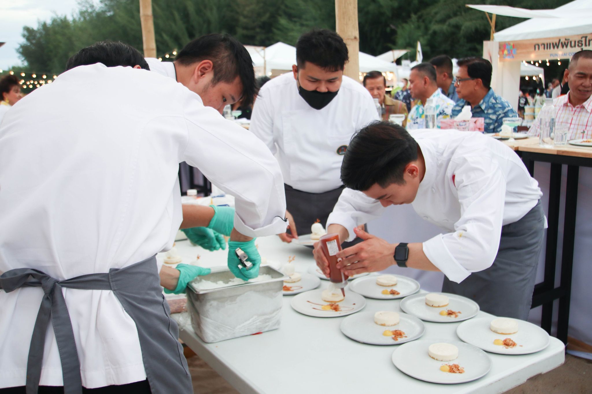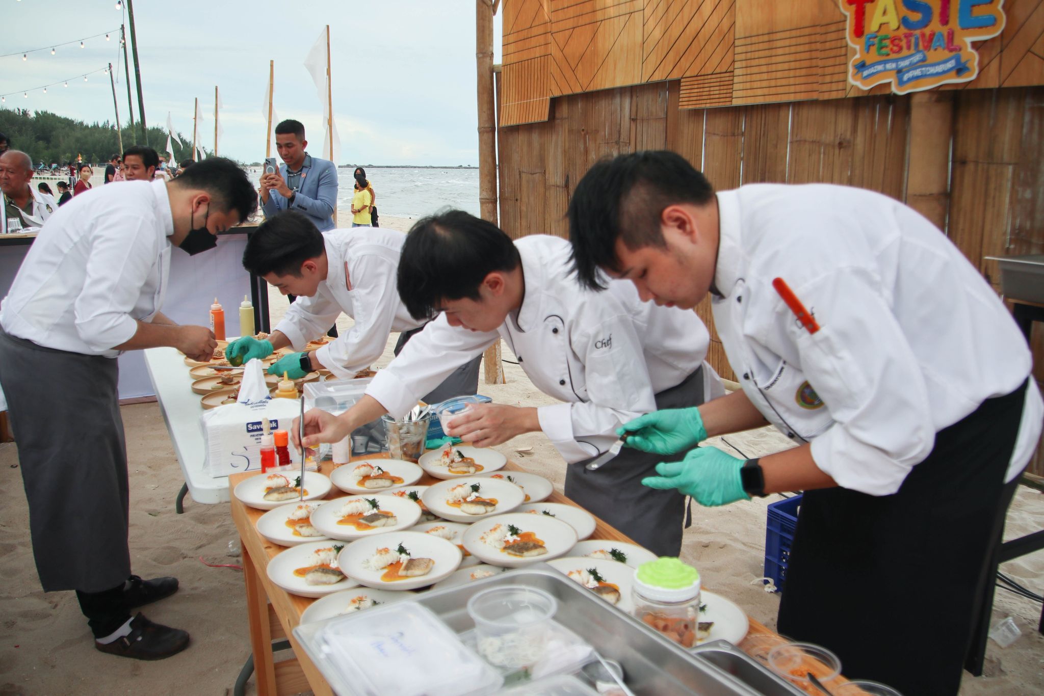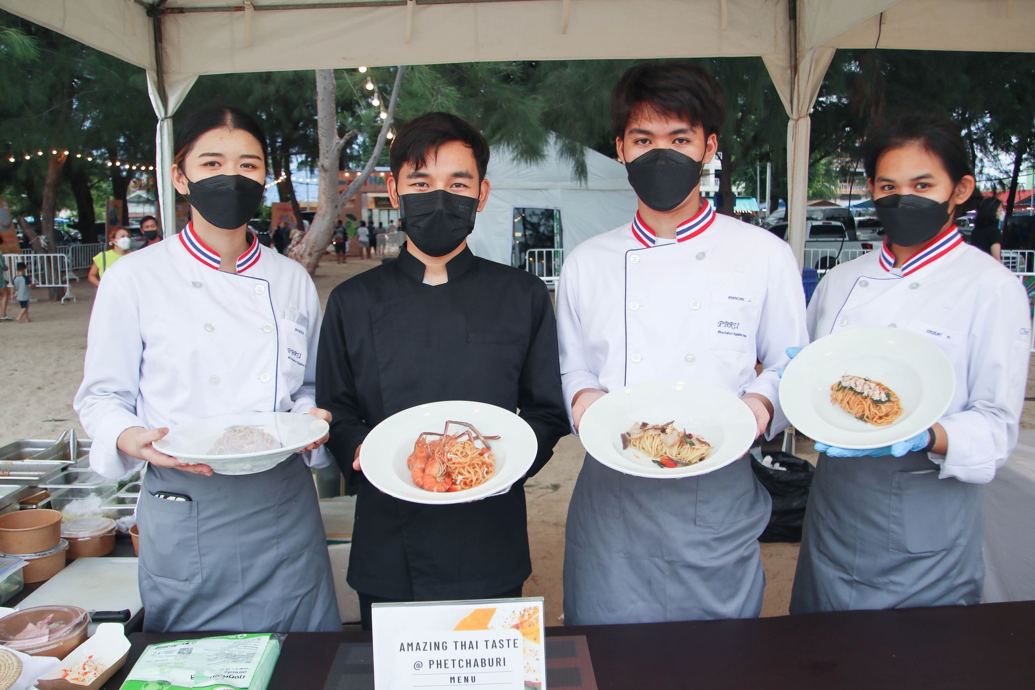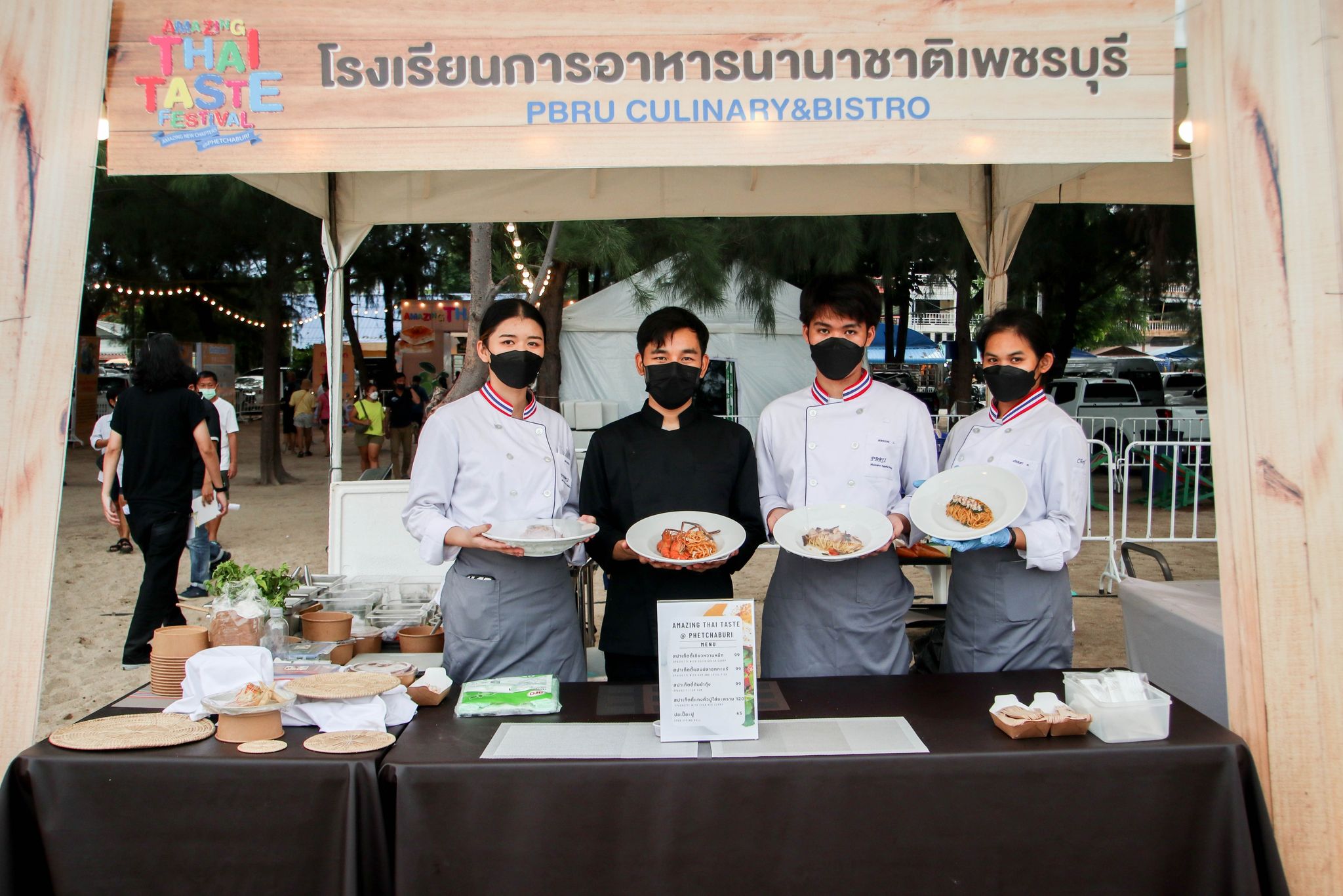 เมนูเมืองสามรส Amazing Thai Taste Festival Amazing New Chapters 26 มิถุนายน 202226 มิถุนายน 2022Thitiporn Karaketข่าวสื่อสารองค์กร จำนวนผู้ชม : 139 มหาวิทยาลัยราชภัฏเพชรบุรี ร่วมนำเสนอเมนูเมืองสามรส ในงาน Amazing Thai Taste Festival Amazing New Chapters@Phetchaburi เมื่อช่วงเย็นวันที่ 25 มิถุนายน 2565 ผู้ช่วยศาสตราจารย์ ดร.เสนาะ กลิ่นงาม อธิการบดีมหาวิทยาลัยราชภัฏเพชรบุรี เข้าร่วมในพิธีเปิดงาน Amazing Thai Taste Festival Amazing New Chapters @ Phetchaburi ที่การท่องเที่ยวแห่งประเทศไทย (ททท.) ได้ร่วมกับหน่วยงานต่าง ๆ ในจังหวัดเพชรบุรีจัดขึ้น ระหว่างวันที่ 25 – 26 มิถุนายน 2565 ณ บริเวณหาดชะอำเหนือ จังหวัดเพชรบุรี โอกาสนี้ มหาวิทยาลัยราชภัฏเพชรบุรี โดยสาขาวิชาเทคโนโลยีและศิลปะการประกอบอาหาร คณะวิทยาศาสตร์และเทคโนโลยี ได้นำอาหารไปจัดแสดงและให้แขกผู้มีเกียรติได้สัมผัสความอร่อย ภายใต้การรังสรรค์เมนูโดยนายทศพร ลิ้มดำเนิน ผู้เชี่ยวชาญด้านอาหาร โรงเรียนการอาหารนานาชาติเพชรบุรี มหาวิทยาลัยราชภัฏเพชรบุรี และนักศึกษาสาขาวิชาเทคโนโลยีและศิลปะการประกอบอาหาร ที่ได้นำเมนูพิเศษจากวัตถุดิบท้องถิ่น เมืองสามรส มานำเสนอ 4 เมนู ใน Zone Fusion Food ได้แก่ เมนูที่ 1 ชะอำสลัดปู เมนูที่ 2 ปลากะพงอบ แกงคั่วชะคราม ครีมฟักทอง เมนูที่ 3 มูสน้ำตาลโตนด ไอครีมมะนาว ก่อนที่จะปิดท้ายเมนูที่ 4 เพชรดอนขุนห้วย ซึ่งแต่ละเมนูเป็นที่ชื่นชอบของผู้ที่ได้ลิ้มลองรสเป็นอย่างมาก นอกจากนี้ อาจารย์นราธร สัตย์ซื่อ อาจารย์ประจำสาขาวิชาเทคโนโลยีและศิลปะการประกอบอาหาร ได้เปิดบูธนำอาหารไปจำหน่ายภายในงาน จำนวน 5 เมนูในราคาย่อมเยา ประกอบด้วย สปาเก็ตตี้เขียวหวานหมึก สปาเก็ตตี้แฮมปลาอกกะแร้ สปาเก็ตตี้ต้มยำกุ้ง สปาเก็ตตี้แกงคั่วปูใส่ชะคราม และปอเปี๊ยะปูผู้ช่วยศาสตราจารย์ ดร.เสนาะ กลิ่นงาม กล่าวว่า การเข้าร่วมกิจกรรมในครั้งนี้ มหาวิทยาลัยราชภัฏเพชรบุรีได้เข้ามาเป็นส่วนหนึ่งในการนำเสนออาหารที่มีวัตถุดิบมาจากสินค้าในพื้นถิ่น นำมาปรุงพร้อมจัดจานให้มีความสวยงาม มีเอกลักษณ์ของความเป็นเมืองเพชรบุรี เน้นย้ำภาพลักษณ์เมืองสร้างสรรค์ด้านอาหาร (City of Gastronomy) ของยูเนสโก ประกอบกับมหาวิทยาลัยราชภัฎเพชรบุรีมีวิสัยทัศน์ในการเป็นมหาวิทยาลัยที่มีความโดดเด่นด้านอาหารและการท่องเที่ยว มีการสนับสนุนให้บุคลากรและนักศึกษาได้มีสถานที่ในการปฏิบัติจริง รู้จักการแก้ปัญหาเฉพาะหน้า# กลุ่มงานสื่อสารองค์กร มหาวิทยาลัยราชภัฏเพชรบุรี Facebook iconFacebookTwitter iconTwitterLINE iconLine