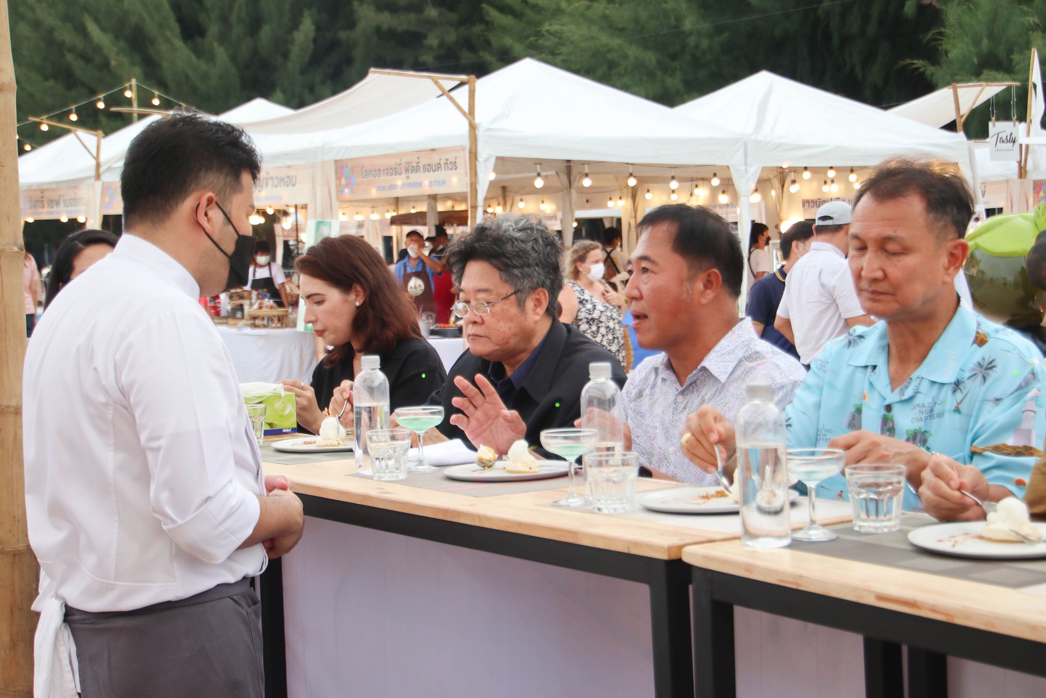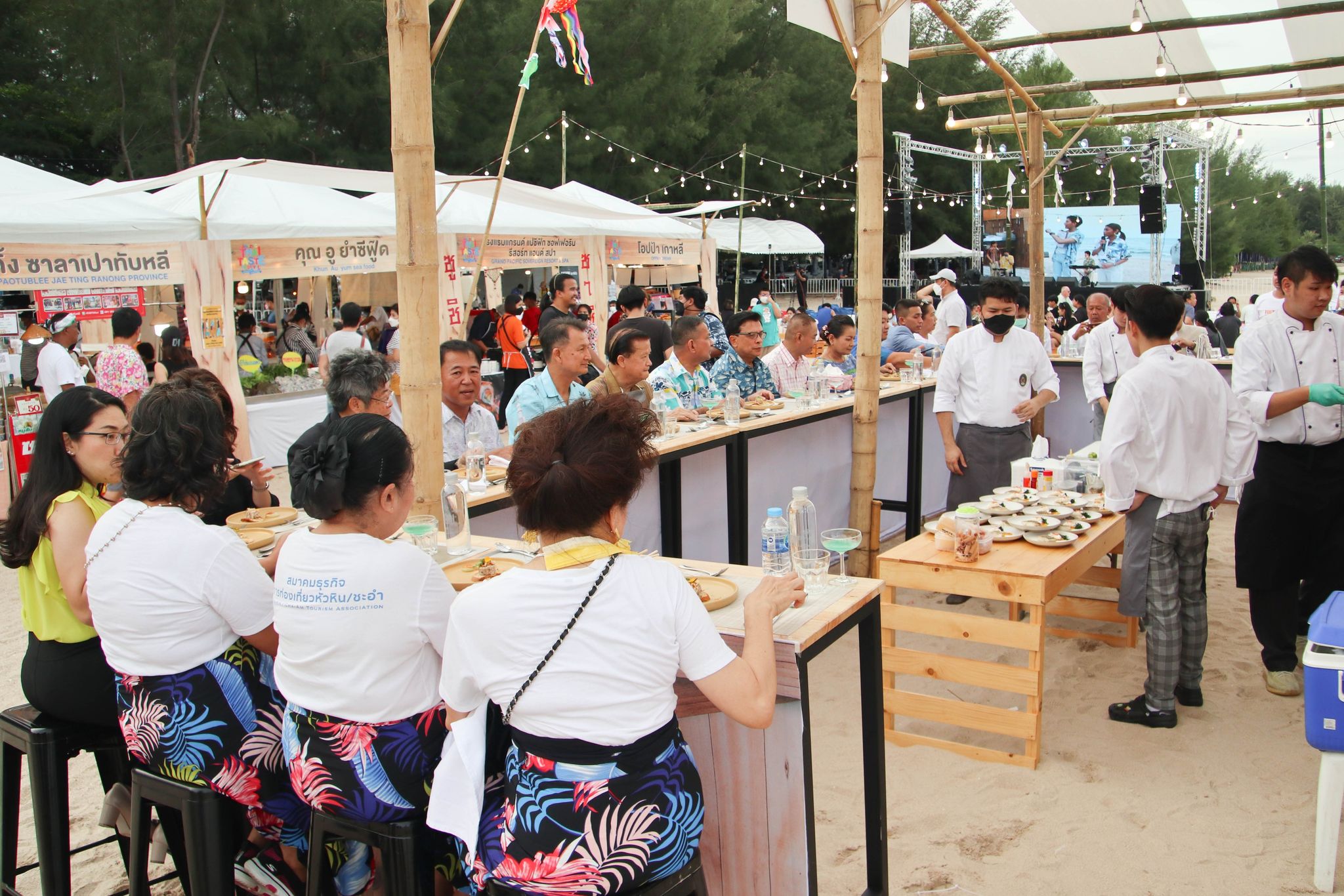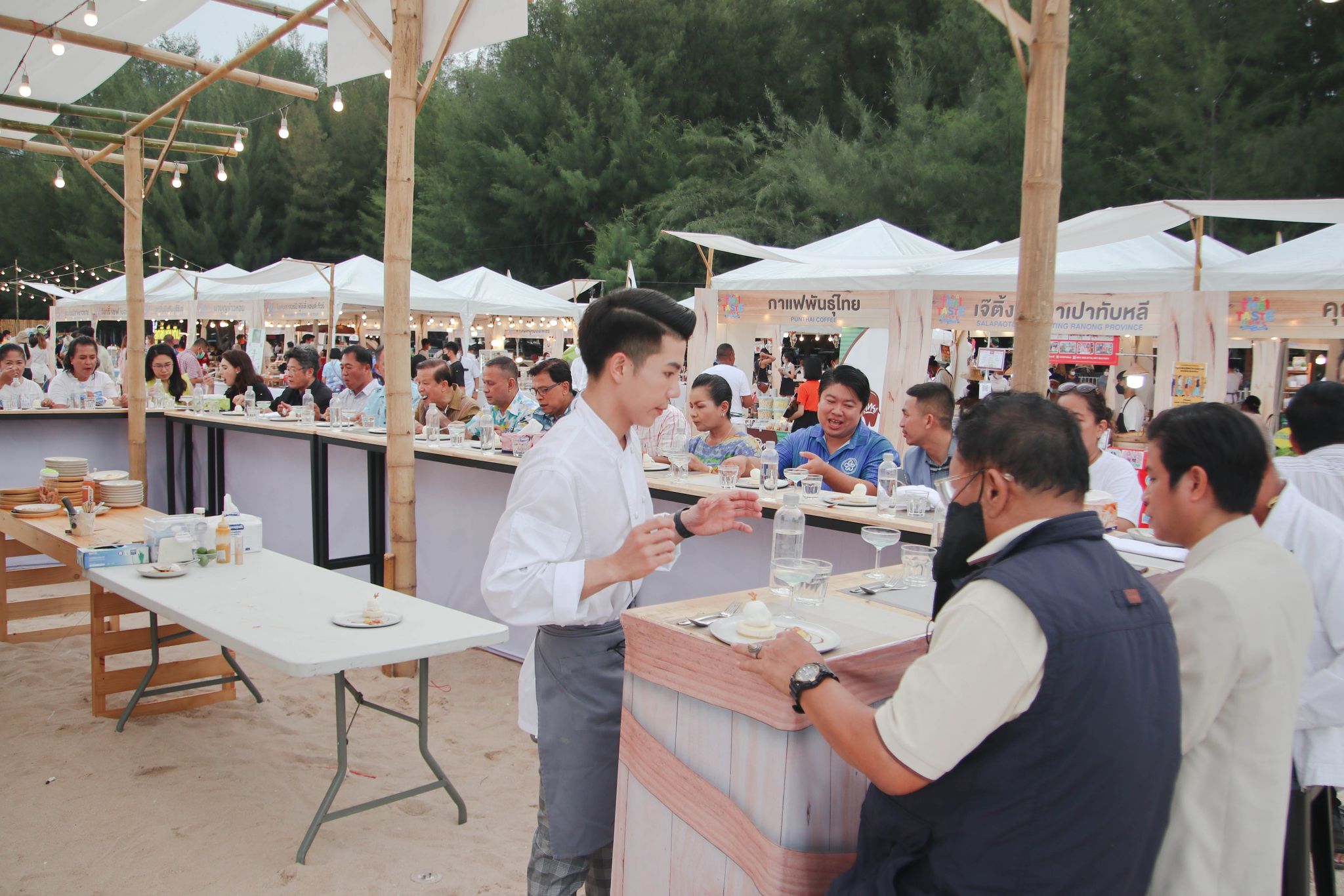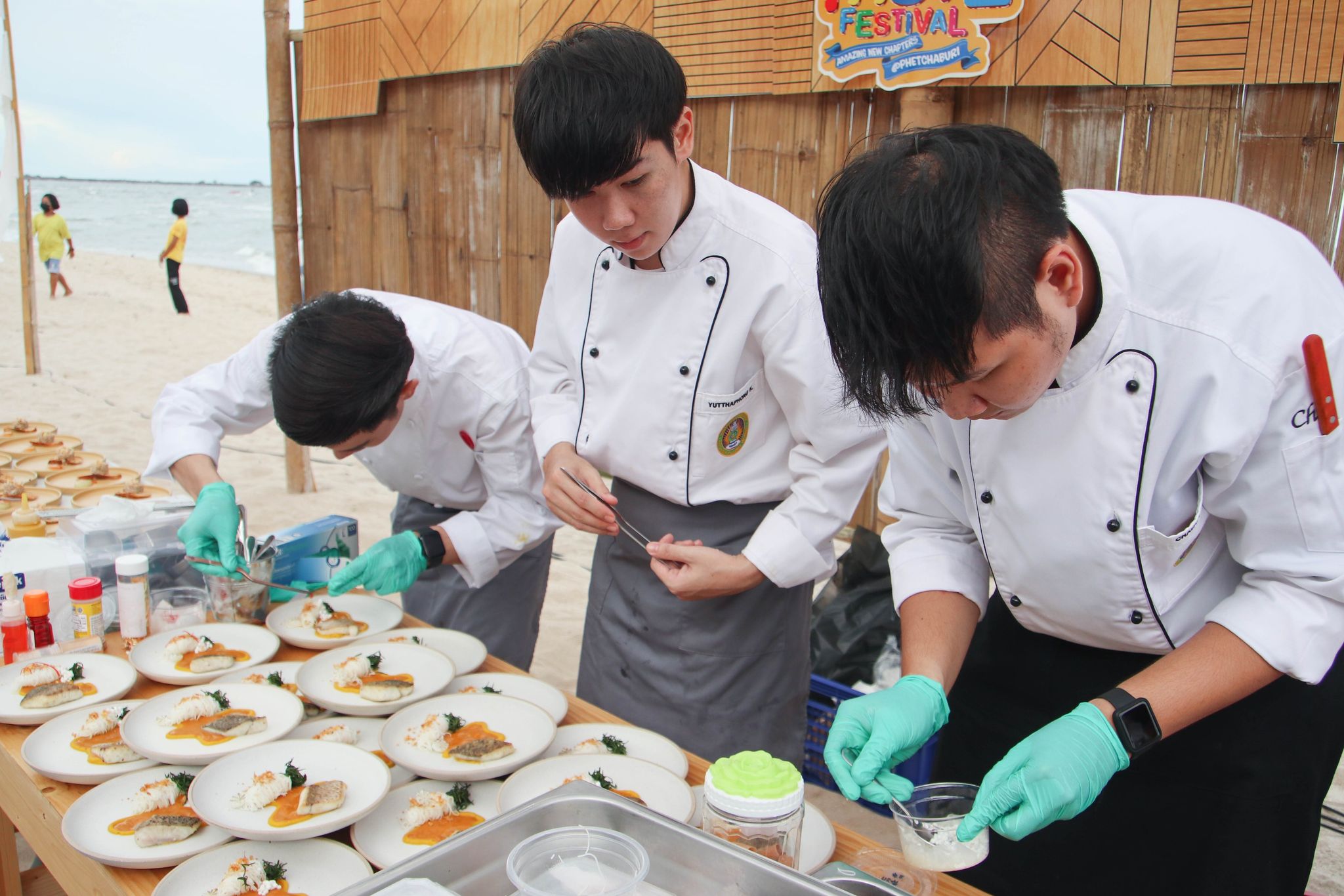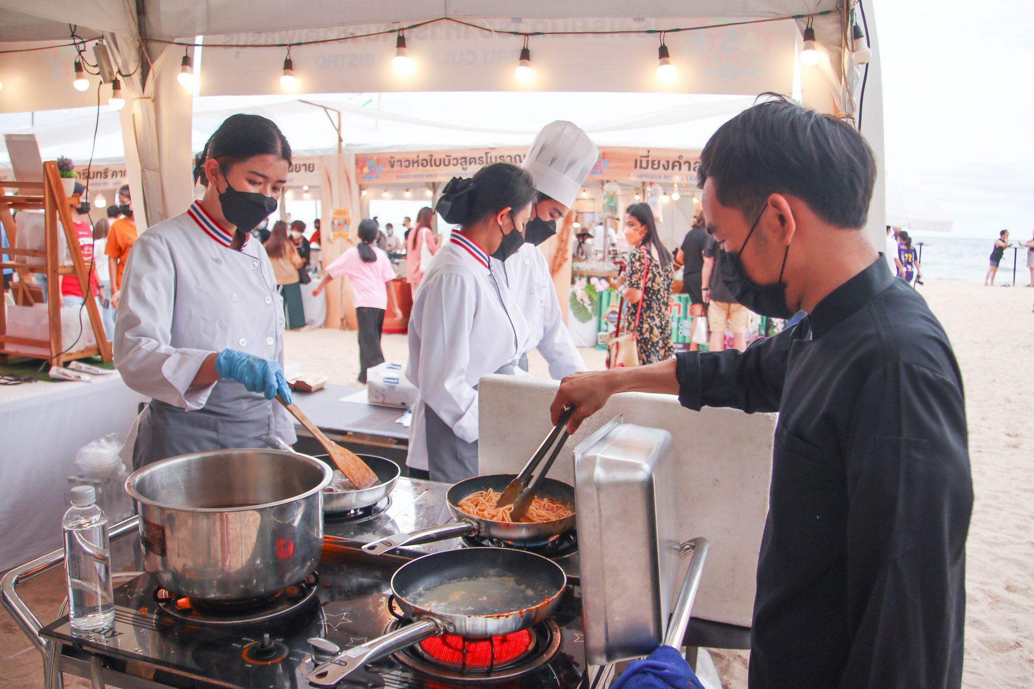 เมนูเมืองสามรส Amazing Thai Taste Festival Amazing New Chapters 26 มิถุนายน 202226 มิถุนายน 2022Thitiporn Karaketข่าวสื่อสารองค์กร จำนวนผู้ชม : 139 มหาวิทยาลัยราชภัฏเพชรบุรี ร่วมนำเสนอเมนูเมืองสามรส ในงาน Amazing Thai Taste Festival Amazing New Chapters@Phetchaburi เมื่อช่วงเย็นวันที่ 25 มิถุนายน 2565 ผู้ช่วยศาสตราจารย์ ดร.เสนาะ กลิ่นงาม อธิการบดีมหาวิทยาลัยราชภัฏเพชรบุรี เข้าร่วมในพิธีเปิดงาน Amazing Thai Taste Festival Amazing New Chapters @ Phetchaburi ที่การท่องเที่ยวแห่งประเทศไทย (ททท.) ได้ร่วมกับหน่วยงานต่าง ๆ ในจังหวัดเพชรบุรีจัดขึ้น ระหว่างวันที่ 25 – 26 มิถุนายน 2565 ณ บริเวณหาดชะอำเหนือ จังหวัดเพชรบุรี โอกาสนี้ มหาวิทยาลัยราชภัฏเพชรบุรี โดยสาขาวิชาเทคโนโลยีและศิลปะการประกอบอาหาร คณะวิทยาศาสตร์และเทคโนโลยี ได้นำอาหารไปจัดแสดงและให้แขกผู้มีเกียรติได้สัมผัสความอร่อย ภายใต้การรังสรรค์เมนูโดยนายทศพร ลิ้มดำเนิน ผู้เชี่ยวชาญด้านอาหาร โรงเรียนการอาหารนานาชาติเพชรบุรี มหาวิทยาลัยราชภัฏเพชรบุรี และนักศึกษาสาขาวิชาเทคโนโลยีและศิลปะการประกอบอาหาร ที่ได้นำเมนูพิเศษจากวัตถุดิบท้องถิ่น เมืองสามรส มานำเสนอ 4 เมนู ใน Zone Fusion Food ได้แก่ เมนูที่ 1 ชะอำสลัดปู เมนูที่ 2 ปลากะพงอบ แกงคั่วชะคราม ครีมฟักทอง เมนูที่ 3 มูสน้ำตาลโตนด ไอครีมมะนาว ก่อนที่จะปิดท้ายเมนูที่ 4 เพชรดอนขุนห้วย ซึ่งแต่ละเมนูเป็นที่ชื่นชอบของผู้ที่ได้ลิ้มลองรสเป็นอย่างมาก นอกจากนี้ อาจารย์นราธร สัตย์ซื่อ อาจารย์ประจำสาขาวิชาเทคโนโลยีและศิลปะการประกอบอาหาร ได้เปิดบูธนำอาหารไปจำหน่ายภายในงาน จำนวน 5 เมนูในราคาย่อมเยา ประกอบด้วย สปาเก็ตตี้เขียวหวานหมึก สปาเก็ตตี้แฮมปลาอกกะแร้ สปาเก็ตตี้ต้มยำกุ้ง สปาเก็ตตี้แกงคั่วปูใส่ชะคราม และปอเปี๊ยะปูผู้ช่วยศาสตราจารย์ ดร.เสนาะ กลิ่นงาม กล่าวว่า การเข้าร่วมกิจกรรมในครั้งนี้ มหาวิทยาลัยราชภัฏเพชรบุรีได้เข้ามาเป็นส่วนหนึ่งในการนำเสนออาหารที่มีวัตถุดิบมาจากสินค้าในพื้นถิ่น นำมาปรุงพร้อมจัดจานให้มีความสวยงาม มีเอกลักษณ์ของความเป็นเมืองเพชรบุรี เน้นย้ำภาพลักษณ์เมืองสร้างสรรค์ด้านอาหาร (City of Gastronomy) ของยูเนสโก ประกอบกับมหาวิทยาลัยราชภัฎเพชรบุรีมีวิสัยทัศน์ในการเป็นมหาวิทยาลัยที่มีความโดดเด่นด้านอาหารและการท่องเที่ยว มีการสนับสนุนให้บุคลากรและนักศึกษาได้มีสถานที่ในการปฏิบัติจริง รู้จักการแก้ปัญหาเฉพาะหน้า# กลุ่มงานสื่อสารองค์กร มหาวิทยาลัยราชภัฏเพชรบุรี Facebook iconFacebookTwitter iconTwitterLINE iconLine