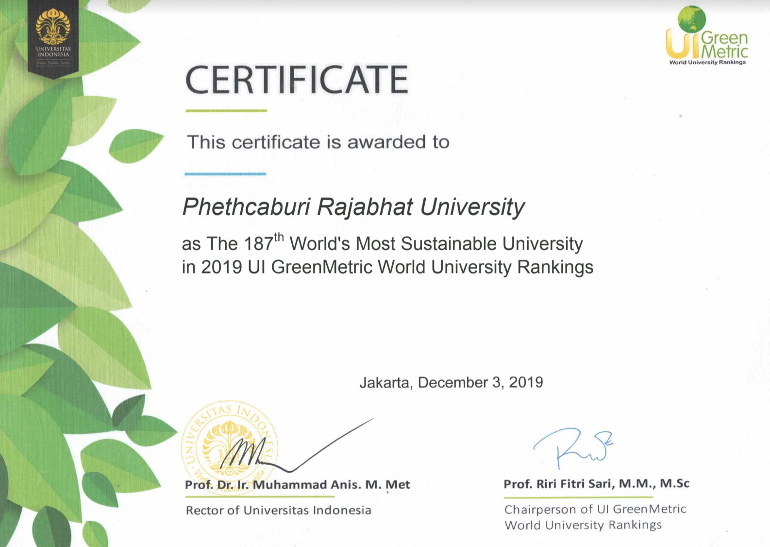 มหาวิทยาลัยราชภัฏเพชรบุรี ได้รับการจัดอันดับมหาวิทยาลัยสีเขียวโลก ปี 2019 (UI Green Metric World University Rankings 2019) 9 ธันวาคม 201911 ธันวาคม 2019piyanunข่าวเด่น จำนวนผู้ชม : 264 มหาวิทยาลัยราชภัฏเพชรบุรี ได้รับการจัดอันดับมหาวิทยาลัยสีเขียวโลก ปี 2019 (UI Green Metric World University Rankings 2019)โดย: UI Green Metric👉อันดับที่ 1 ในกลุ่มมหาวิทยาลัยราชภัฏ👉อันดับที่ 12 ของมหาวิทยาลัยในประเทศ👉อันดับที่ 187 ของโลก Facebook iconFacebookTwitter iconTwitterLINE iconLine