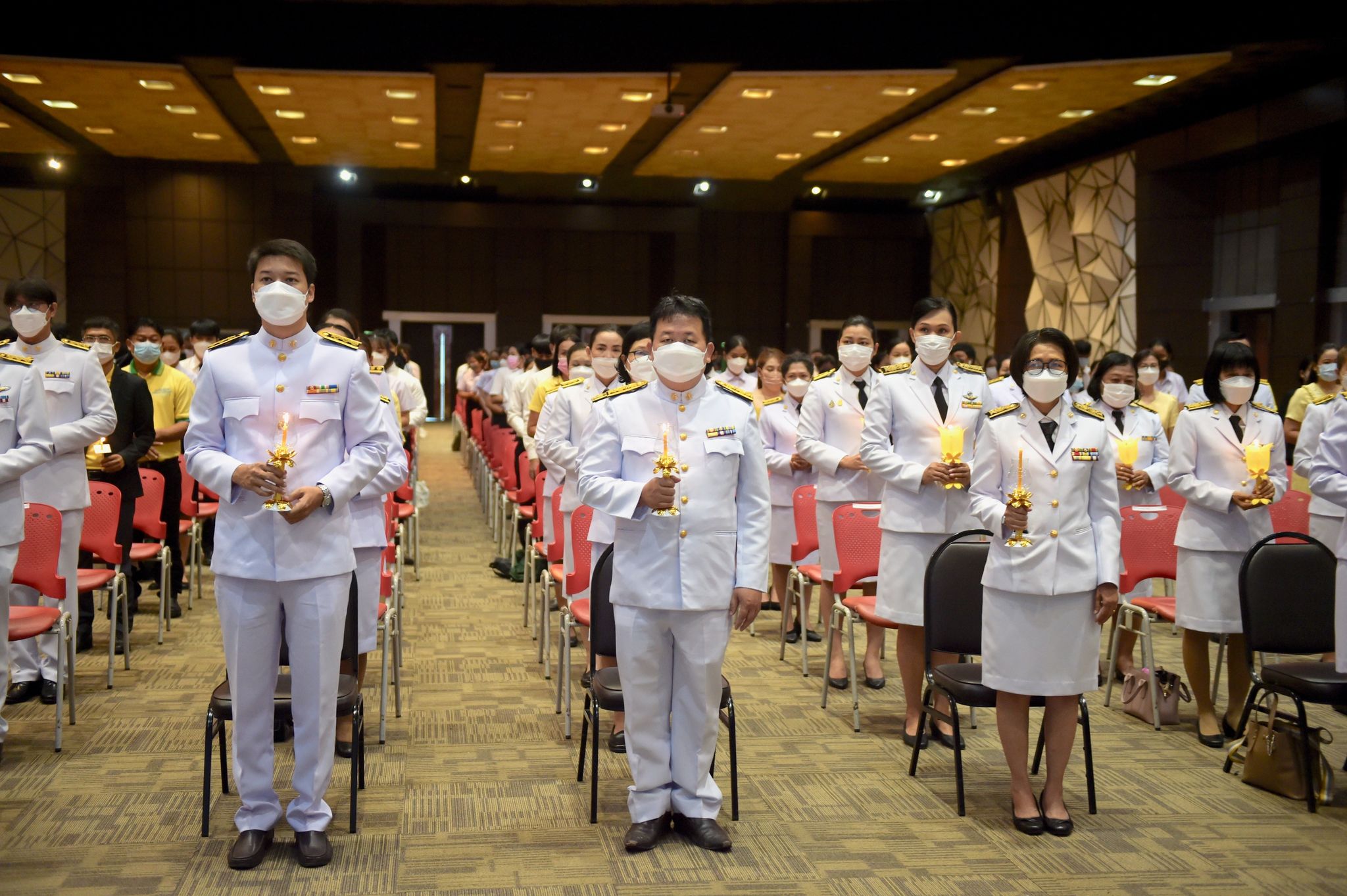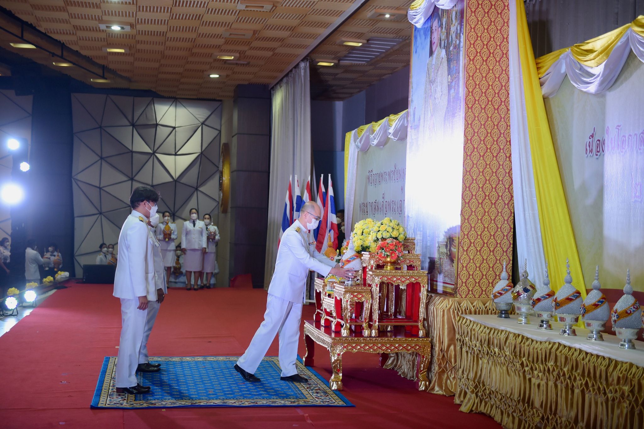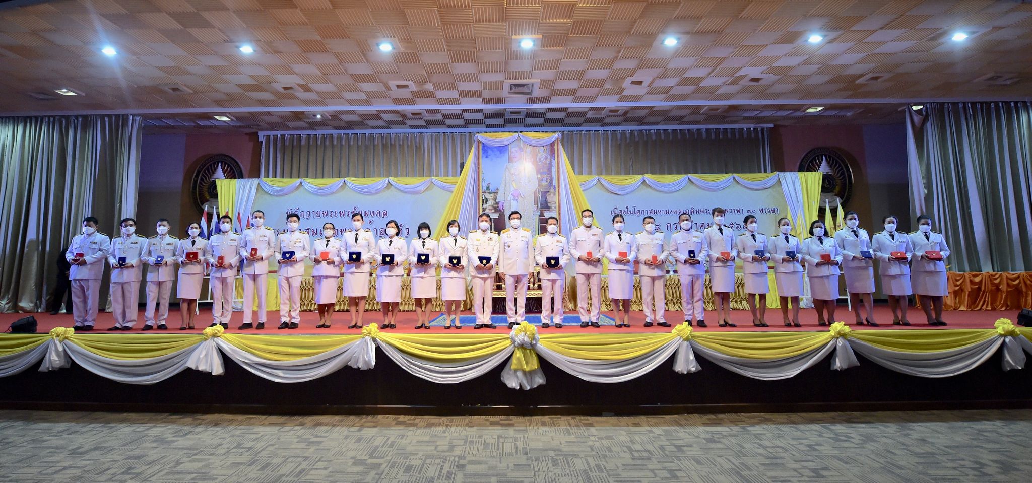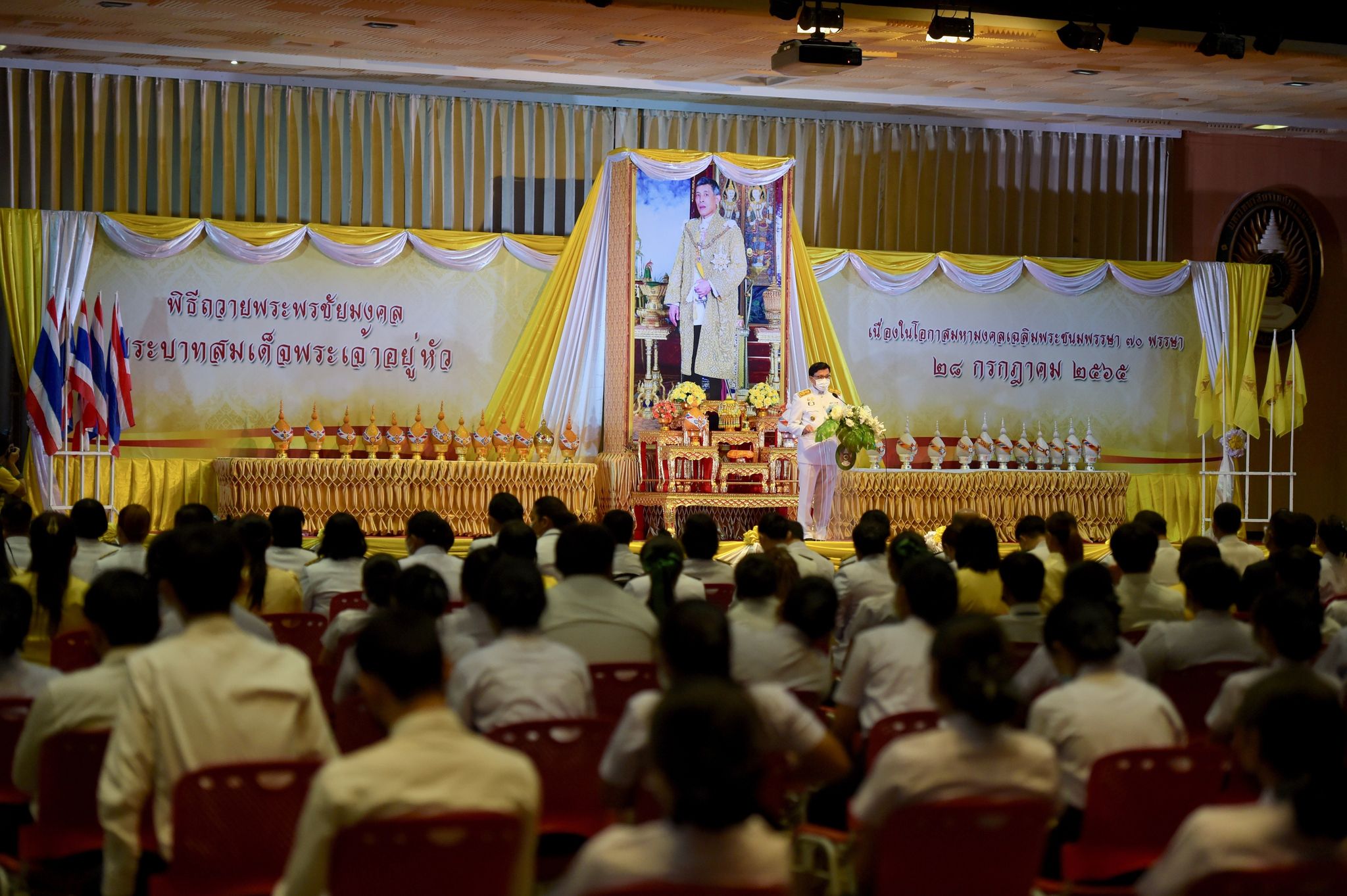 พิธีเฉลิมพระเกียรติพระบาทสมเด็จพระเจ้าอยู่หัว 27 กรกฎาคม 202228 กรกฎาคม 2022Thitiporn Karaketข่าวสื่อสารองค์กร จำนวนผู้ชม : 200 มหาวิทยาลัยราชภัฏเพชรบุรี ประกอบพิธีเฉลิมพระเกียรติพระบาทสมเด็จพระเจ้าอยู่หัว เนื่องในโอกาสมหามงคล เฉลิมพระชนมพรรษา 70 พรรษา เมื่อเวลา 09.09 น. ณ ห้องประชุมพะนอมแก้วกำเนิด อาคารสุเมธตันติเวชกุล มหาวิทยาลัยราชภัฏเพชรบุรี ผู้ช่วยศาสตราจารย์ ดร.เสนาะ กลิ่นงาม อธิการบดีมหาวิทยาลัยราชภัฏเพชรบุรี เป็นประธานในการประกอบพิธีเฉลิมพระเกียรติพระบาทสมเด็จพระเจ้าอยู่หัว เนื่องในโอกาสมหามงคล เฉลิมพระชนมพรรษา 70 พรรษา โดยมีคณะผู้บริหารมหาวิทยาลัยฯ คณาจารย์ บุคลากรและนักศึกษา เข้าร่วมกิจกรรม ในพิธี มีการวางพานพุ่มทอง พุ่มเงิน เปิดกรวย ถวายราชสักการะ อ่านคำสดุดีเฉลิมพระเกียรติ ถวายพระพรชัยมงคล และจุดเทียนชัยถวายพระพรชัยมงคล จากนั้น ประธานในพิธีและผู้เข้าร่วมพิธีได้พร้อมใจกันลงนามถวายพระพรชัยมงคล เพื่อแสดงออกถึงความจงรักภักดีและสำนึกในพระมหากรุณาธิคุณที่ทรงมีต่อชาวมหาวิทยาลัยราชภัฏ นอกจากนี้ ในพิธีดังกล่าวยังมีการมอบรางวัลการเขียนเรียงความในหัวข้อ “วิถีชีวิตใหม่ ใต้ร่มพระบารมี” และพิธีรับพระราชทานเครื่องราชอิสริยาภรณ์หน้าพระบรมฉายาลักษณ์พระบาทสมเด็จพระเจ้าอยู่หัว จำนวน 25 ราย ก่อนที่จะจบกิจกรรมในช่วงเช้าด้วยการแสดงเฉลิมพระเกียรติโดยนักศึกษาสาขาวิชานาฏศิลป์ศึกษา คณะมนุษยศาสตร์และสังคมศาสตร์ จากนั้นในช่วงบ่ายของวันเดียวกัน กองพัฒนานักศึกษายังได้นำคณะผู้บริหารมหาวิทยาลัยฯ คณาจารย์ บุคลากรและนักศึกษา เข้าร่วมกิจกรรมจิตอาสา เราทำความดีด้วยหัวใจ ณ ศูนย์วิศวกรสังคมเกษตรพอเพียง มหาวิทยาลัยราชภัฏเพชรบุรี วิทยาเขตโป่งสลอด ด้วยการปลูกต้นทองอุไรและต้นยี่เข่ง จำนวนทั้งหมด 70 ต้น เพื่อถวายเป็นพระราชกุศล เนื่องในวันคล้ายวันเฉลิมพระชนมพรรษา พระบาทสมเด็จพระเจ้าอยู่หัว และเป็นการเพิ่มพื้นที่สีเขียวให้กับวิทยาเขตโป่งสลอดในการเป็นสถานที่ท่องเที่ยว# กลุ่มงานสื่อสารองค์กร มหาวิทยาลัยราชภัฏเพชรบุรี Facebook iconFacebookTwitter iconTwitterLINE iconLine