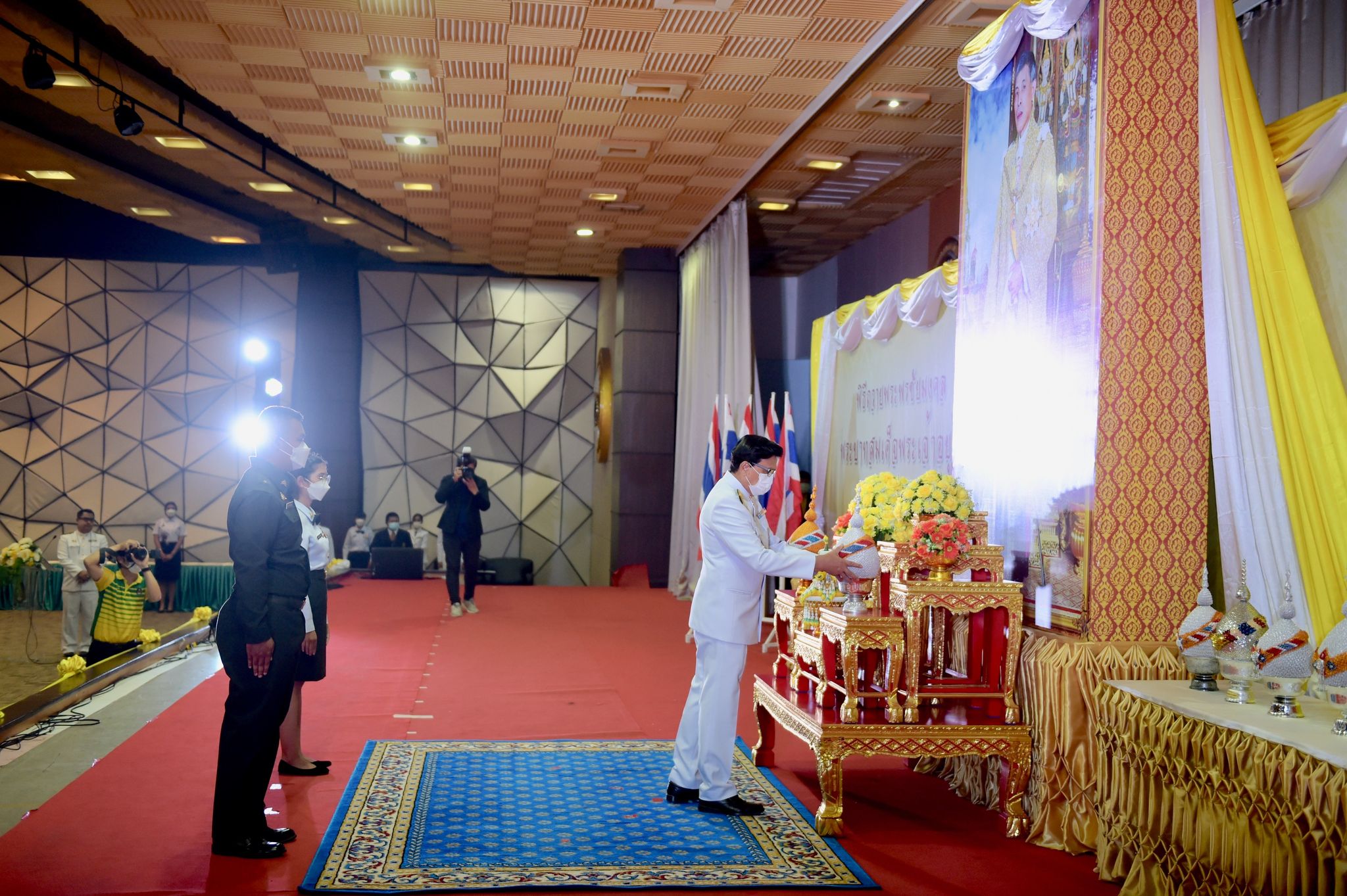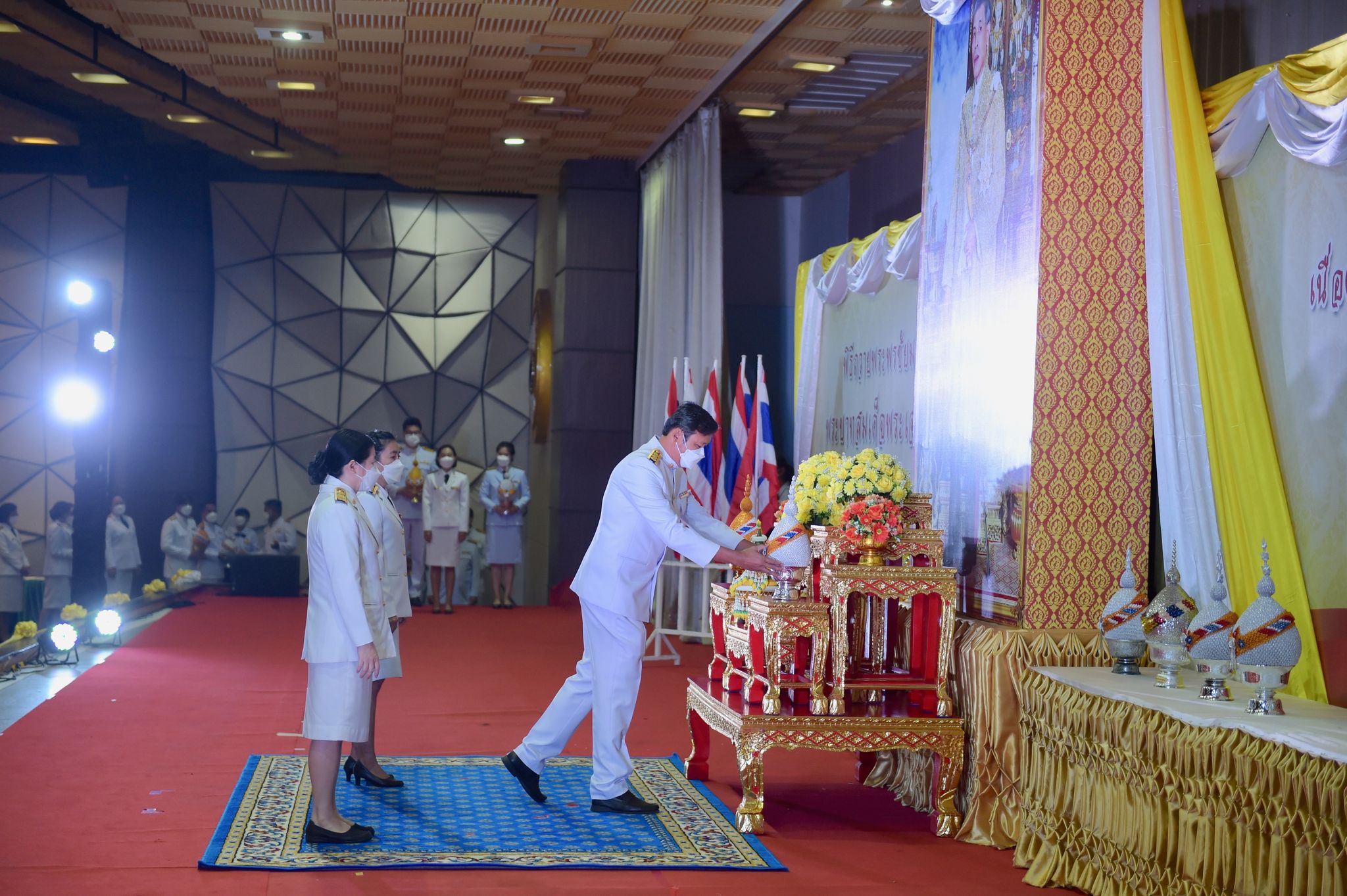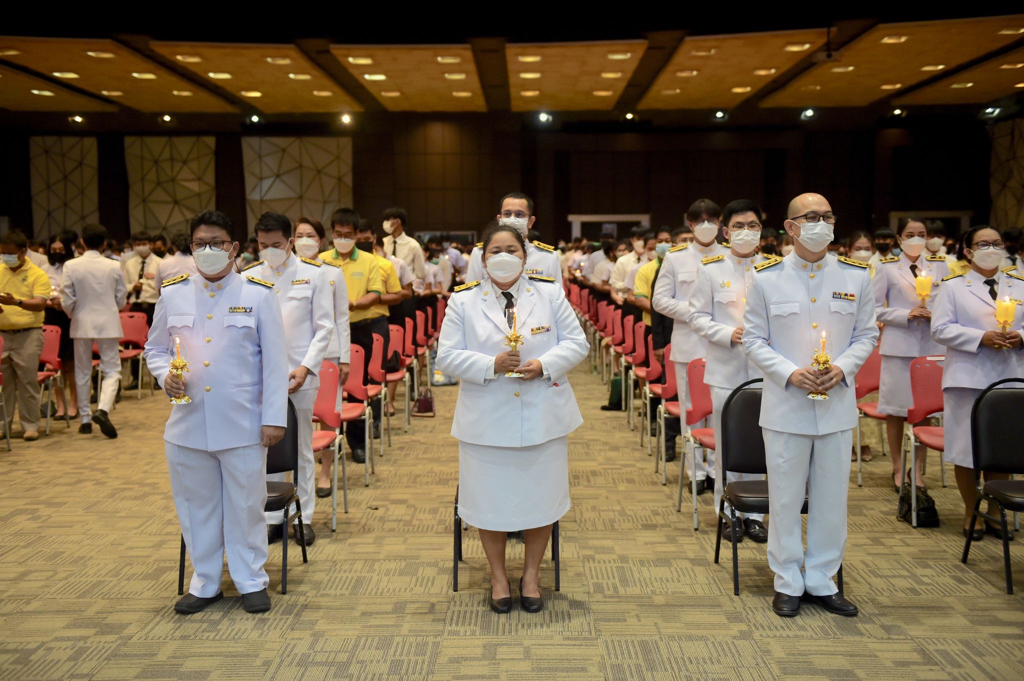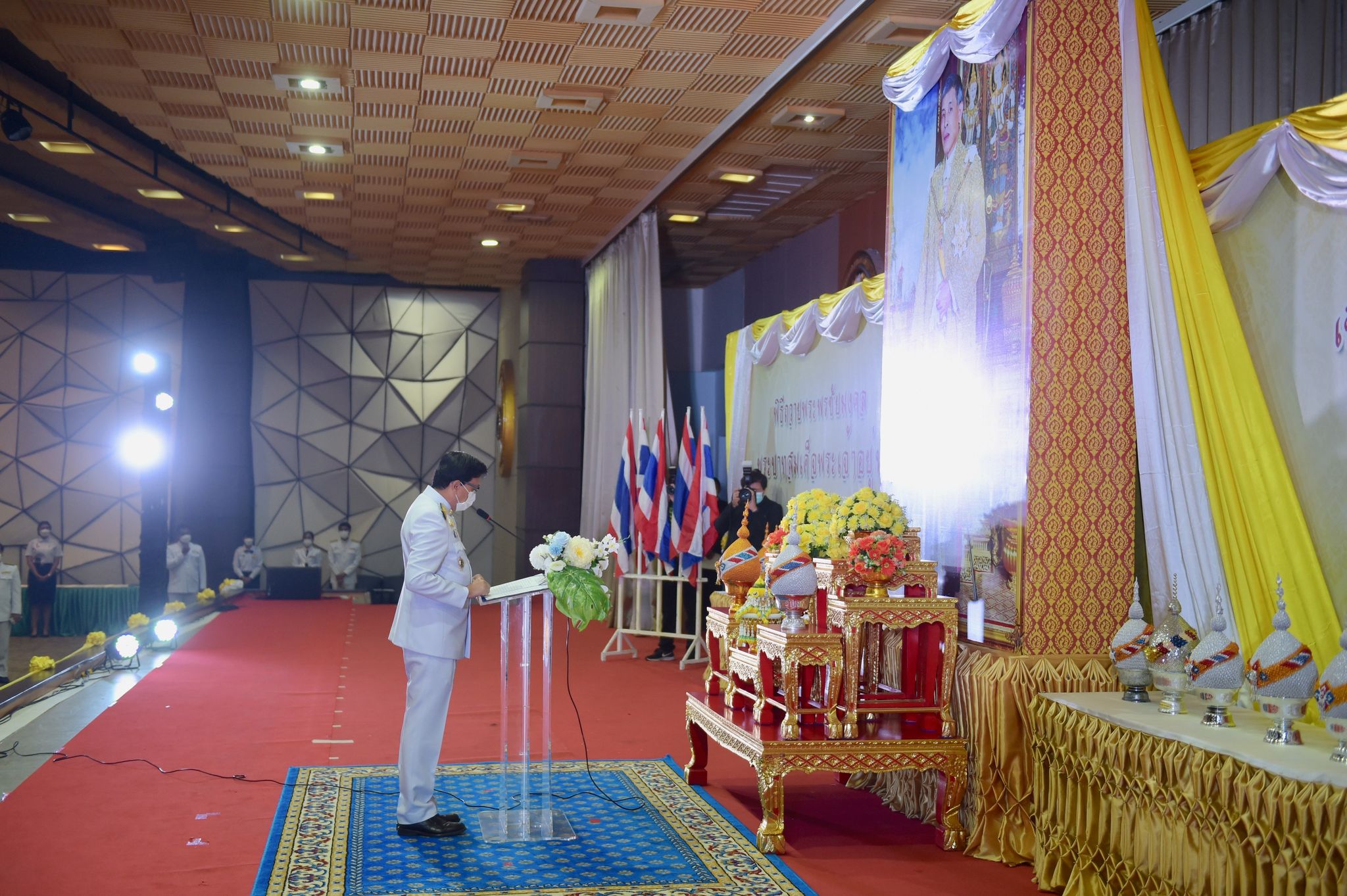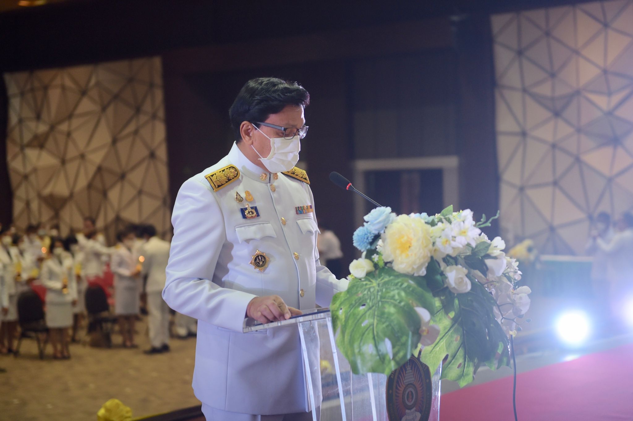พิธีเฉลิมพระเกียรติพระบาทสมเด็จพระเจ้าอยู่หัว 27 กรกฎาคม 202228 กรกฎาคม 2022Thitiporn Karaketข่าวสื่อสารองค์กร จำนวนผู้ชม : 200 มหาวิทยาลัยราชภัฏเพชรบุรี ประกอบพิธีเฉลิมพระเกียรติพระบาทสมเด็จพระเจ้าอยู่หัว เนื่องในโอกาสมหามงคล เฉลิมพระชนมพรรษา 70 พรรษา เมื่อเวลา 09.09 น. ณ ห้องประชุมพะนอมแก้วกำเนิด อาคารสุเมธตันติเวชกุล มหาวิทยาลัยราชภัฏเพชรบุรี ผู้ช่วยศาสตราจารย์ ดร.เสนาะ กลิ่นงาม อธิการบดีมหาวิทยาลัยราชภัฏเพชรบุรี เป็นประธานในการประกอบพิธีเฉลิมพระเกียรติพระบาทสมเด็จพระเจ้าอยู่หัว เนื่องในโอกาสมหามงคล เฉลิมพระชนมพรรษา 70 พรรษา โดยมีคณะผู้บริหารมหาวิทยาลัยฯ คณาจารย์ บุคลากรและนักศึกษา เข้าร่วมกิจกรรม ในพิธี มีการวางพานพุ่มทอง พุ่มเงิน เปิดกรวย ถวายราชสักการะ อ่านคำสดุดีเฉลิมพระเกียรติ ถวายพระพรชัยมงคล และจุดเทียนชัยถวายพระพรชัยมงคล จากนั้น ประธานในพิธีและผู้เข้าร่วมพิธีได้พร้อมใจกันลงนามถวายพระพรชัยมงคล เพื่อแสดงออกถึงความจงรักภักดีและสำนึกในพระมหากรุณาธิคุณที่ทรงมีต่อชาวมหาวิทยาลัยราชภัฏ นอกจากนี้ ในพิธีดังกล่าวยังมีการมอบรางวัลการเขียนเรียงความในหัวข้อ “วิถีชีวิตใหม่ ใต้ร่มพระบารมี” และพิธีรับพระราชทานเครื่องราชอิสริยาภรณ์หน้าพระบรมฉายาลักษณ์พระบาทสมเด็จพระเจ้าอยู่หัว จำนวน 25 ราย ก่อนที่จะจบกิจกรรมในช่วงเช้าด้วยการแสดงเฉลิมพระเกียรติโดยนักศึกษาสาขาวิชานาฏศิลป์ศึกษา คณะมนุษยศาสตร์และสังคมศาสตร์ จากนั้นในช่วงบ่ายของวันเดียวกัน กองพัฒนานักศึกษายังได้นำคณะผู้บริหารมหาวิทยาลัยฯ คณาจารย์ บุคลากรและนักศึกษา เข้าร่วมกิจกรรมจิตอาสา เราทำความดีด้วยหัวใจ ณ ศูนย์วิศวกรสังคมเกษตรพอเพียง มหาวิทยาลัยราชภัฏเพชรบุรี วิทยาเขตโป่งสลอด ด้วยการปลูกต้นทองอุไรและต้นยี่เข่ง จำนวนทั้งหมด 70 ต้น เพื่อถวายเป็นพระราชกุศล เนื่องในวันคล้ายวันเฉลิมพระชนมพรรษา พระบาทสมเด็จพระเจ้าอยู่หัว และเป็นการเพิ่มพื้นที่สีเขียวให้กับวิทยาเขตโป่งสลอดในการเป็นสถานที่ท่องเที่ยว# กลุ่มงานสื่อสารองค์กร มหาวิทยาลัยราชภัฏเพชรบุรี Facebook iconFacebookTwitter iconTwitterLINE iconLine