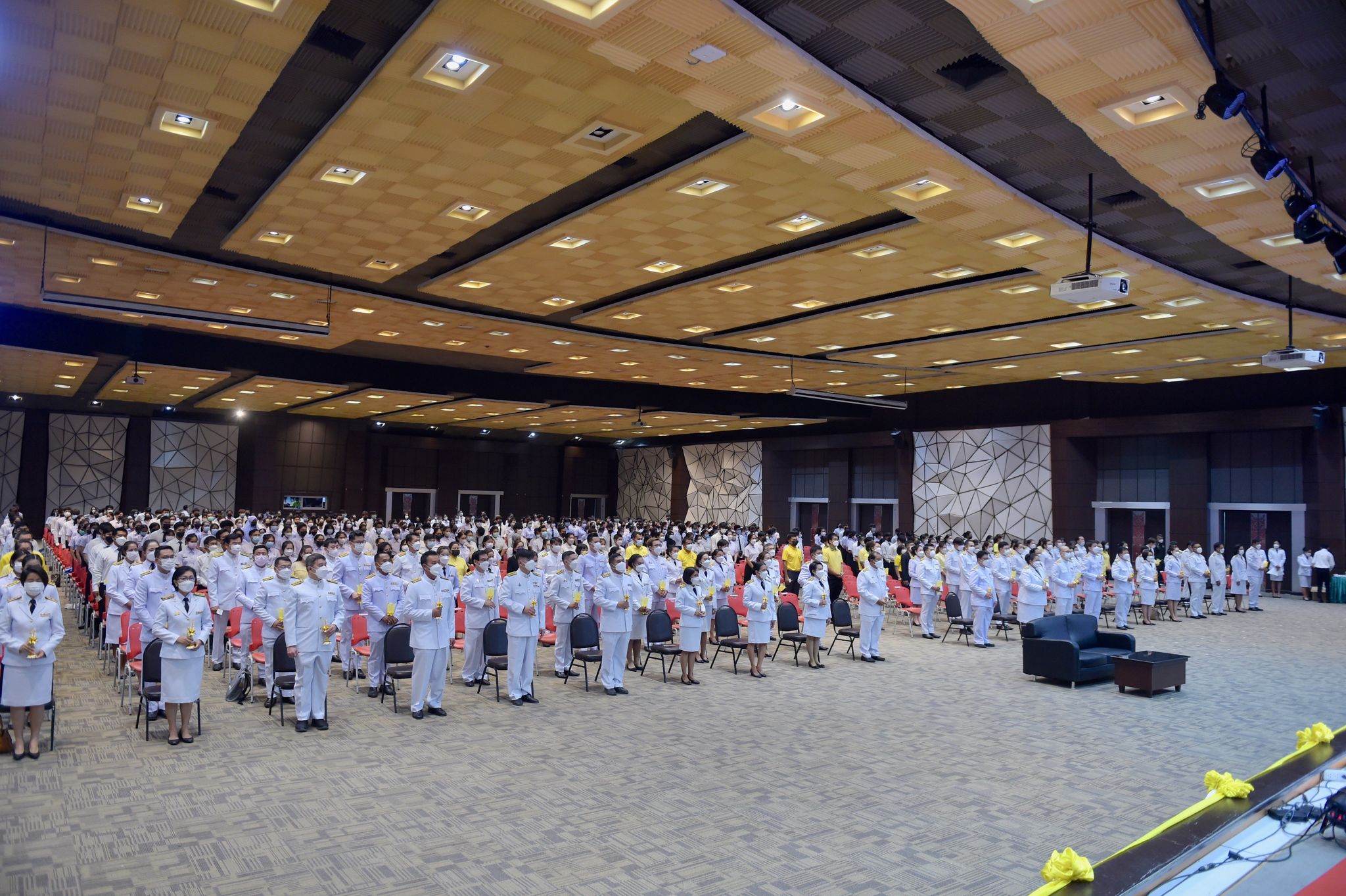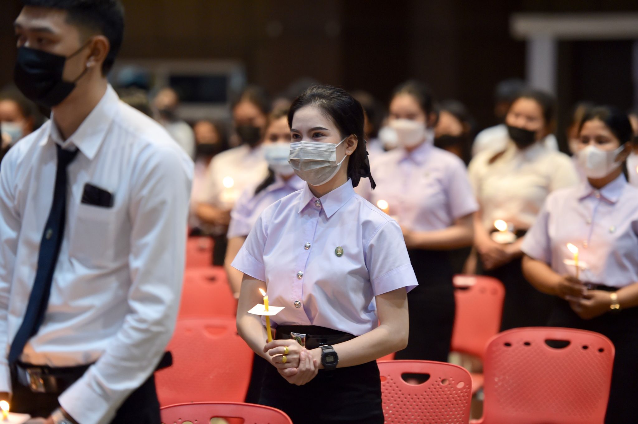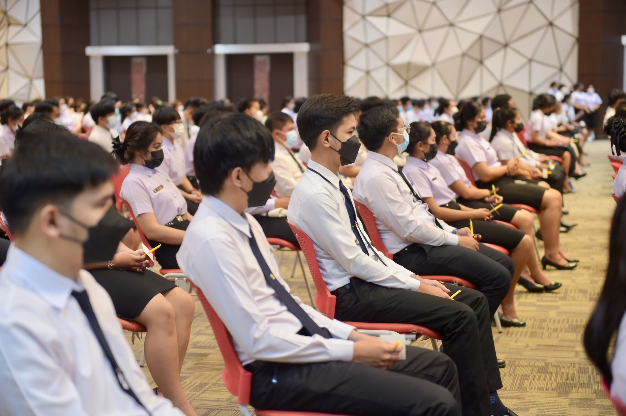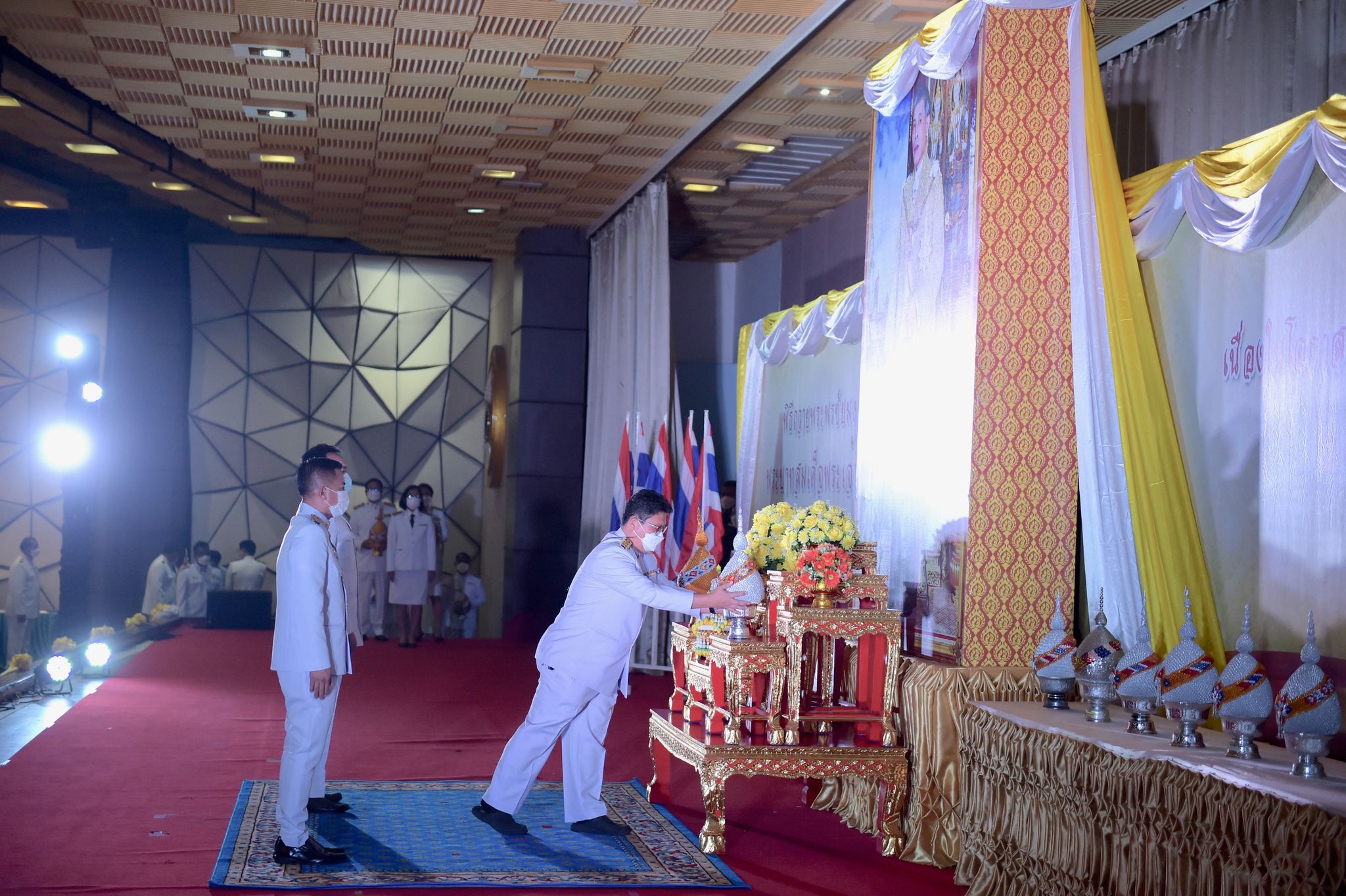 พิธีเฉลิมพระเกียรติพระบาทสมเด็จพระเจ้าอยู่หัว 27 กรกฎาคม 202228 กรกฎาคม 2022Thitiporn Karaketข่าวสื่อสารองค์กร จำนวนผู้ชม : 200 มหาวิทยาลัยราชภัฏเพชรบุรี ประกอบพิธีเฉลิมพระเกียรติพระบาทสมเด็จพระเจ้าอยู่หัว เนื่องในโอกาสมหามงคล เฉลิมพระชนมพรรษา 70 พรรษา เมื่อเวลา 09.09 น. ณ ห้องประชุมพะนอมแก้วกำเนิด อาคารสุเมธตันติเวชกุล มหาวิทยาลัยราชภัฏเพชรบุรี ผู้ช่วยศาสตราจารย์ ดร.เสนาะ กลิ่นงาม อธิการบดีมหาวิทยาลัยราชภัฏเพชรบุรี เป็นประธานในการประกอบพิธีเฉลิมพระเกียรติพระบาทสมเด็จพระเจ้าอยู่หัว เนื่องในโอกาสมหามงคล เฉลิมพระชนมพรรษา 70 พรรษา โดยมีคณะผู้บริหารมหาวิทยาลัยฯ คณาจารย์ บุคลากรและนักศึกษา เข้าร่วมกิจกรรม ในพิธี มีการวางพานพุ่มทอง พุ่มเงิน เปิดกรวย ถวายราชสักการะ อ่านคำสดุดีเฉลิมพระเกียรติ ถวายพระพรชัยมงคล และจุดเทียนชัยถวายพระพรชัยมงคล จากนั้น ประธานในพิธีและผู้เข้าร่วมพิธีได้พร้อมใจกันลงนามถวายพระพรชัยมงคล เพื่อแสดงออกถึงความจงรักภักดีและสำนึกในพระมหากรุณาธิคุณที่ทรงมีต่อชาวมหาวิทยาลัยราชภัฏ นอกจากนี้ ในพิธีดังกล่าวยังมีการมอบรางวัลการเขียนเรียงความในหัวข้อ “วิถีชีวิตใหม่ ใต้ร่มพระบารมี” และพิธีรับพระราชทานเครื่องราชอิสริยาภรณ์หน้าพระบรมฉายาลักษณ์พระบาทสมเด็จพระเจ้าอยู่หัว จำนวน 25 ราย ก่อนที่จะจบกิจกรรมในช่วงเช้าด้วยการแสดงเฉลิมพระเกียรติโดยนักศึกษาสาขาวิชานาฏศิลป์ศึกษา คณะมนุษยศาสตร์และสังคมศาสตร์ จากนั้นในช่วงบ่ายของวันเดียวกัน กองพัฒนานักศึกษายังได้นำคณะผู้บริหารมหาวิทยาลัยฯ คณาจารย์ บุคลากรและนักศึกษา เข้าร่วมกิจกรรมจิตอาสา เราทำความดีด้วยหัวใจ ณ ศูนย์วิศวกรสังคมเกษตรพอเพียง มหาวิทยาลัยราชภัฏเพชรบุรี วิทยาเขตโป่งสลอด ด้วยการปลูกต้นทองอุไรและต้นยี่เข่ง จำนวนทั้งหมด 70 ต้น เพื่อถวายเป็นพระราชกุศล เนื่องในวันคล้ายวันเฉลิมพระชนมพรรษา พระบาทสมเด็จพระเจ้าอยู่หัว และเป็นการเพิ่มพื้นที่สีเขียวให้กับวิทยาเขตโป่งสลอดในการเป็นสถานที่ท่องเที่ยว# กลุ่มงานสื่อสารองค์กร มหาวิทยาลัยราชภัฏเพชรบุรี Facebook iconFacebookTwitter iconTwitterLINE iconLine