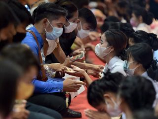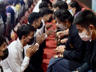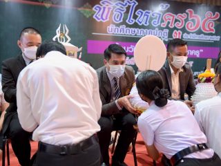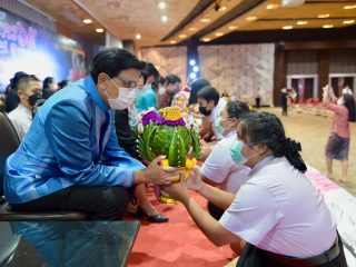 พิธีไหว้ครู ประจำปีการศึกษา 2565 4 สิงหาคม 20224 สิงหาคม 2022Thitiporn Karaketข่าวสื่อสารองค์กร จำนวนผู้ชม : 437 มหาวิทยาลัยราชภัฏเพชรบุรี จัดพิธีไหว้ครู ประจำปีการศึกษา 2565 พร้อมมอบรางวัลให้แก่อาจารย์ที่ปรึกษาระดับดีเด่นและระดับดีมาก ผศ.ดร.เสนาะ กลิ่นงาม อธิการบดีมหาวิทยาลัยราชภัฏเพชรบุรี พร้อมด้วยคณะผู้บริหารมหาวิทยาลัยฯ คณบดีทั้ง 8 คณะ ประกอบด้วย รศ.ดร.กาญจนา บุญส่ง คณบดีคณะครุศาสตร์ อ.ดร.วนิดา มากศิริ คณบดีคณะเทคโนโลยีการเกษตร ผศ.สุวัฒน์ เตชะเพชรไพบูลย์ คณบดีคณะเทคโลยีสารสนเทศ ผศ.ดร.กังสดาล สกุลพงษ์มาลี คณบดีคณะวิศวกรรมศาสตร์และเทคโนโลยีอุตสาหกรรม ผศ.ดร.พัชรินทร์ สุริยวงศ์ คณบดีคณะมนุษยศาสตร์และสังคมศาสตร์ อ.ดร.วิวิศณ์ สุขแสงอร่าม คณบดีคณะวิทยาการจัดการ ผศ.ณรงค์ ไกรเนตร์ คณบดีคณะวิทยาศาสตร์และเทคโนโลยี และ ผศ.ดร.วนิดา ดุรงค์ฤทธิชัย คณะบดีคณะพยาบาลศาสตร์และวิทยาการสุขภาพ เข้าร่วมพิธีวันไหว้ครู ประจำปีการศึกษา 2565 “น้อมวันทา กตัญญุตา บูชาครู” ที่กองพัฒนานักศึกษาได้จัดขึ้นเมื่อช่วงเช้าวันพฤหัสบดีที่ 4 สิงหาคม 2565 ณ ห้องประชุมพะนอมแก้วกำเนิด อาคารสุเมธตันติเวชกุล มหาวิทยาลัยราชภัฏเพชรบุรี สำหรับกิจกรรมภายในพิธี ผู้แทนนักศึกษาชั้นปีที่ 1 ได้นำเครื่องสักการะมาไหว้ครู ซึ่งประกอบไปด้วย ข้าวตอกดอกไม้ที่ร่วมกันจัดทำอย่างสวยงาม ก่อนที่นักศึกษาแต่ละสาขาจพนำพวงมาลัยดอกไม้สดมาไหว้ครู เพื่อฝากตัวเป็นศิษย์และรับพรอันเป็นมงคลตลอดการศึกษาในรั้วมหาวิทยาลัยราชภัฏเพชรบุรี นอกจากนี้ อธิการบดีฯ ได้เป็นประธานในพิธีเจิมหนังสือและกล่าวให้โอวาสแก่นักศึกษาให้ตั้งใจเรียน ประพฤติปฏิบัติตนอยู่ในระเบียบของมหาวิทยาลัย โดยจะมีอาจารย์ที่ปรึกษาให้การดูแลตลอดระยะเวลาที่ศึกษา และยังมีการมอบโล่เกียรติคุณและใบประกาศเกียรติบัตรให้แก่อาจารย์ที่ปรึกษาดีเด่น จำนวน 8 ท่าน และอาจารย์ที่ปรึกษาระดับดีมาก จำนวน 16 ท่าน เพื่อเป็นขวัญและกำลังใจแก่คณาจารย์ที่ให้การดูแลนักศึกษาเป็นอย่างดี โอกาสนี้ จ่าอากาศเอกอภิชาต แก้วโกศล นายกสมาคมศิษย์เก่าราชภัฏเพชรบุรี และผู้แทนจากบริษัทกรุงเทพประกันภัย ได้มอบทุนการศึกษาให้กับมหาวิทยาลัย เพื่อนำไปจัดสรรเป็นทุนการศึกษาให้กับนักศึกษาที่เรียนดี มีความประพฤติดีแต่ขาดแคลนทุนทรัพย์ ให้มีโอกาสได้ศึกษาต่อจนจบการศึกษาในประดับปริญญาตรี# กลุ่มงานสื่อสารองค์กร มหาวิทยาลัยราชภัฏเพชรบุรี Facebook iconFacebookTwitter iconTwitterLINE iconLine
