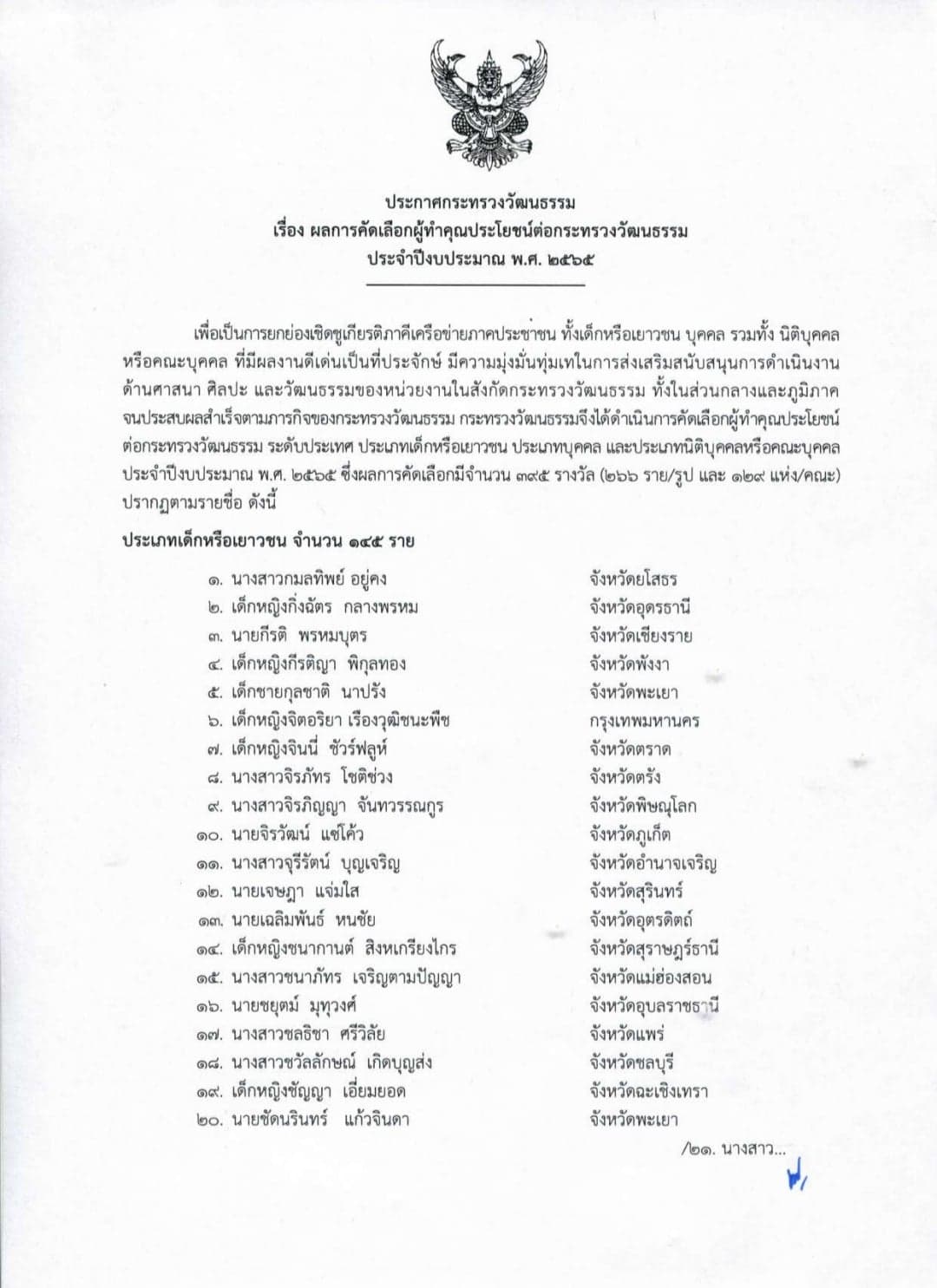 มรภ.เพชรบุรี ได้รับรางวัล“วัฒนคุณาธร” ประจำปี 2565 30 สิงหาคม 202230 สิงหาคม 2022Thitiporn Karaketข่าวสื่อสารองค์กร จำนวนผู้ชม : 138 มหาวิทยาลัยราชภัฏเพชรบุรี ได้รับการคัดเลือกผู้ทำคุณประโยชน์ รางวัล“วัฒนคุณาธร” ประจำปี 2565 ประเภทนิติบุคคลหรือคณะบุคคล เพื่อยกย่องเชิดชูเกียรติแก่เด็กหรือเยาวชน บุคคล นิติบุคคลหรือคณะบุคคลที่ร่วมเป็นพลังขับเคลื่อนงานด้านศาสนา ศิลปะและวัฒนธรรมในโอกาสวันคล้ายวันสถาปนากระทรวงวัฒนธรรม ครบรอบ 20 ปี 3 ตุลาคม 2565 โดยจะมีการมอบรางวัลในวันที่ 29 ตุลาคม 2565 ณ กระทรวงวัฒนธรรม#กลุ่มงานสื่อสารองค์กร มหาวิทยาลัยราชภัฏเพชรบุรี Facebook iconFacebookTwitter iconTwitterLINE iconLine