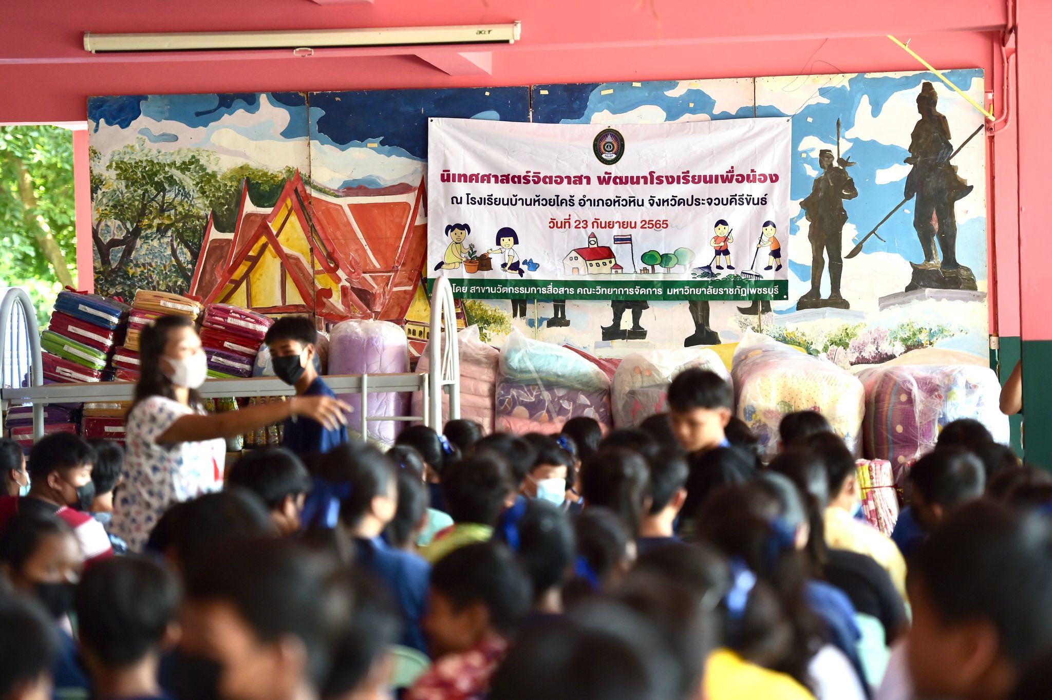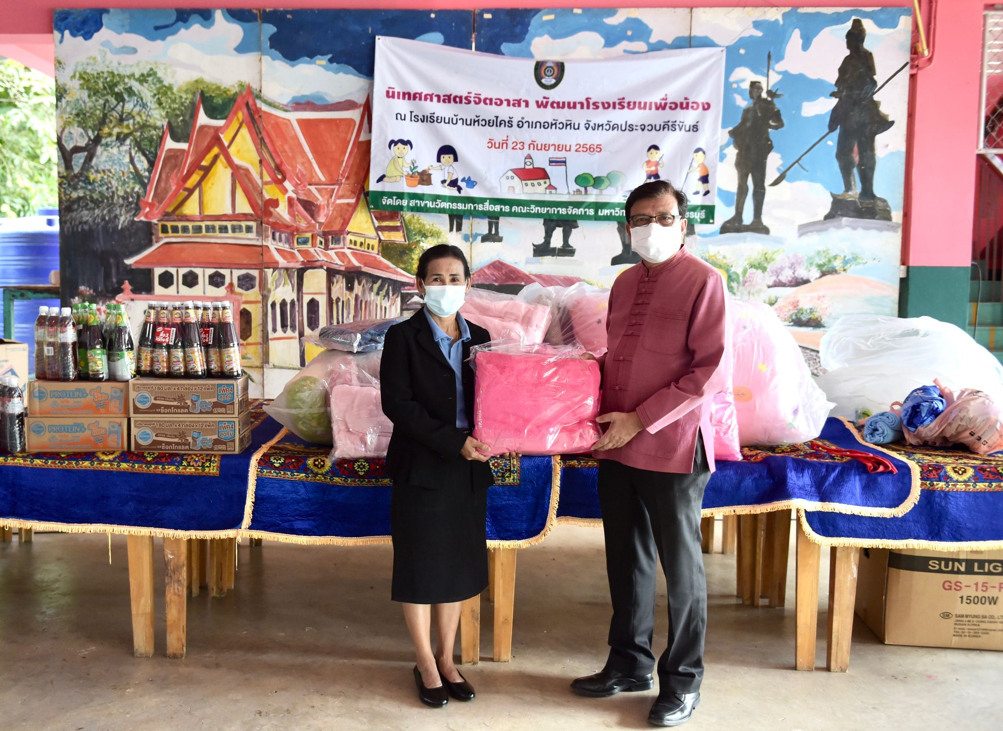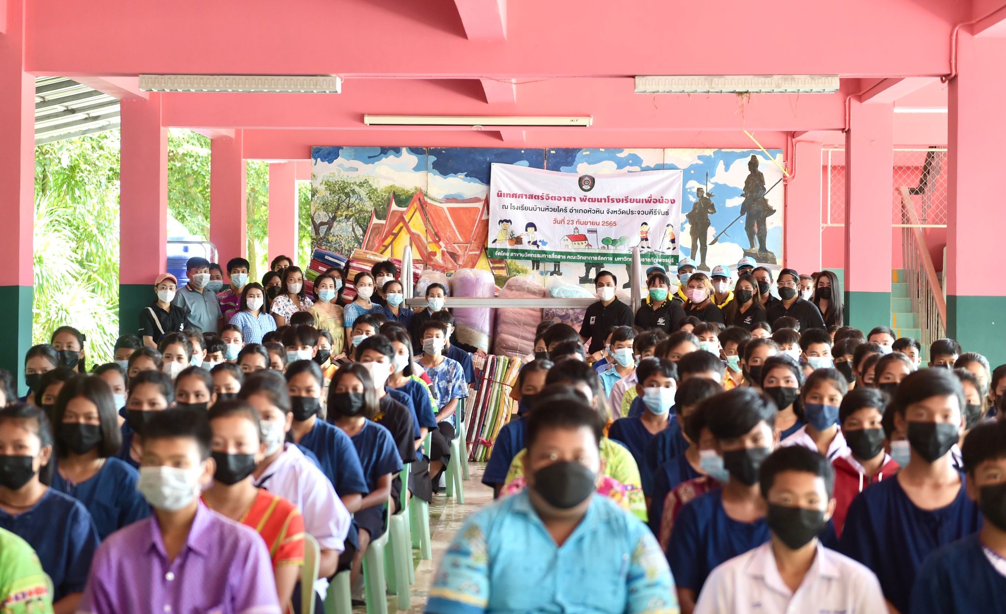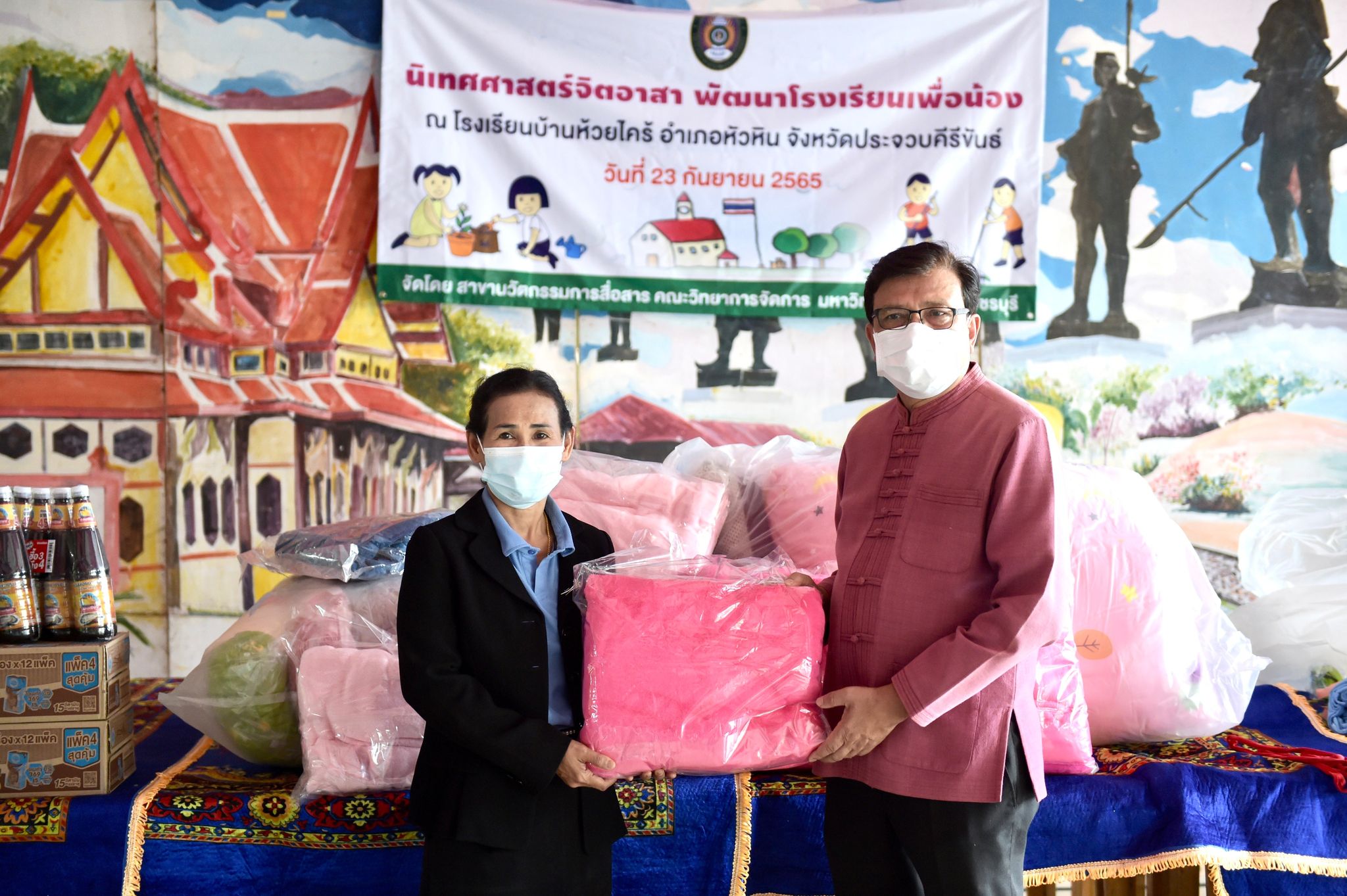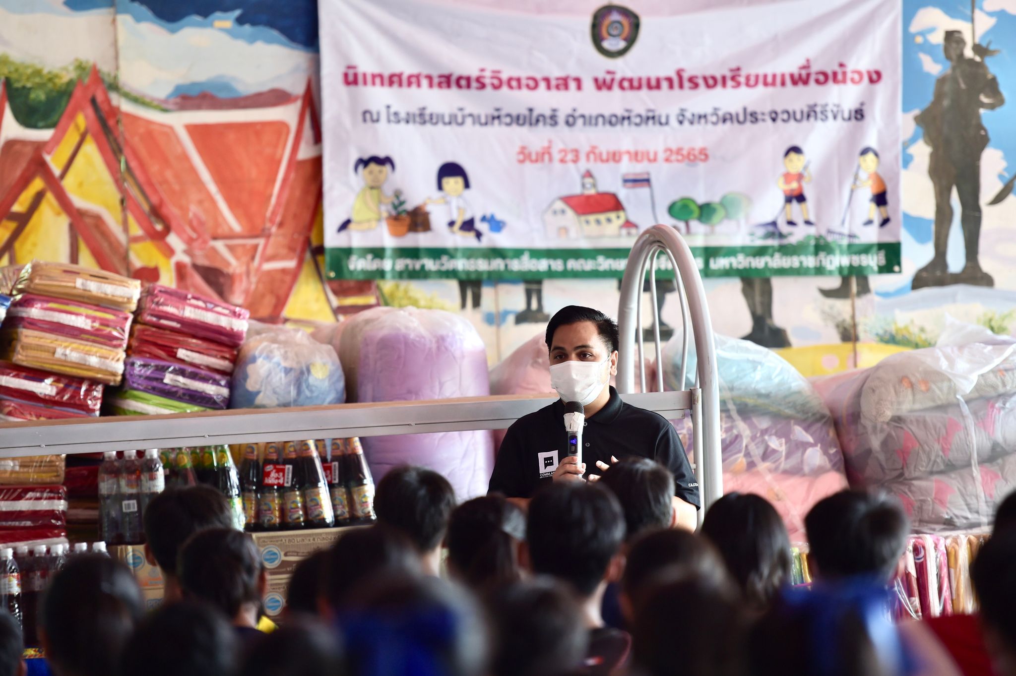 นิเทศศาสตร์จิตอาสาพัฒนาโรงเรียนเพื่อน้อง 24 กันยายน 202224 กันยายน 2022Thitiporn Karaketข่าวสื่อสารองค์กร จำนวนผู้ชม : 77 นักศึกษานิเทศศาสตร์บูรณาการรายวิชา ลงพื้นที่โรงเรียนบ้านห้วยไคร้ จัดโครงการนิเทศศาสตร์จิตอาสาพัฒนาโรงเรียนเพื่อน้อง นักศึกษาชั้นปีที่ 4 สาขาวิชานิเทศศาสตร์ คณะวิทยาการจัดการ ลงพื้นที่โรงเรียนบ้านห้วยไคร้ อ.หัวหิน จ.ประจวบคีรีขันธ์ ในโครงการนิเทศศาสตร์จิตอาสาพัฒนาโรงเรียนเพื่อน้อง ซึ่งเป็นกิจกรรมในรายวิชาโครงการพิเศษทางนิเทศศาสตร์ โดยมีอาจารย์ ดร.เมธาวิน สาระยาน ประธานสาขาวิชานิเทศศาสตร์ เป็นอาจารย์ผู้สอนประจำรายวิชา โอกาสนี้ได้รับเกียรติจาก ผศ.ดร.เสนาะ กลิ่นงาม อธิการบดีมหาวิทยาลัยราชภัฏเพชรบุรี ร่วมมอบสิ่งของให้กับนักเรียนโรงเรียนบ้านห้วยไคร้ โดยมีนางอรเยาว์ อาจหาญ ผู้อำนวยการโรงเรียนบ้านห้วยไคร้ เป็นผู้แทนในการรับมอบ เมื่อวันที่ 23 กันยายน 2565 สำหรับการจัดโครงการนิเทศศาสตร์จิตอาสาพัฒนาโรงเรียนเพื่อน้อง จัดขึ้นเพื่อสร้างจิตสำนึกให้นักศึกษามีจิตอาสาและสามารถนำศาสตร์วิชามาบูรณาการในพื้นที่ได้ ด้วยการถ่ายทำสารคดีวิถีชีวิตของนักเรียนโรงเรียนบ้านห้วยไคร้ซึ่งสอดคล้องกับศาสตร์ทางด้านนิเทศศาสตร์ นอกจากนี้ยังมีการซ่อมแซมบำรุงหอพักและอาคารเรียน การมอบเตียงนอน ชุดเครื่องนอน อาหารแห้ง อุปกรณ์ทำความสะอาด เพื่อสร้างสุขภาวะและสุขอนามัยที่ดีให้กับนักเรียน โดยได้รับความอนุเคราะห์จากมณฑลทหารบกที่ 15 ในการนำนักศึกษาลงพื้นที่และสนับสนุนกำลังพลในการทำกิจกรรม และนำสิ่งของต่าง ๆ ที่ได้รับการสนับสนุนงบประมาณจากคณาจารย์และบุคลากรในมหาวิทยาลัยมามอบให้กับนักเรียน ผศ.ดร.เสนาะ กลิ่นงาม กล่าวว่า มหาวิทยาลัยราชภัฏเพชรบุรีเป็นมหาวิทยาลัยเพื่อการพัฒนาท้องถิ่น ภายใต้นโยบายมหาวิทยาลัยและนโยบายสภามหาวิทยาลัย ตลอดจนการบริหารจัดการภายในมหาวิทยาลัย โดยที่ผ่านมาได้ลงมือปฏิบัติในหลายด้าน โดยเฉพาะในด้านการศึกษา ซึ่งโรงเรียนบ้านห้วยไคร้เป็น 1 ใน 14 โรงเรียนกองทุนการศึกษาที่มหาวิทยาลัยราชภัฏเพชรบุรีเข้าไปช่วยเหลือ สนับสนุนในด้านต่าง ๆ เช่น การปรับปรุงห้องสมุด การนำนักศึกษาสายวิชาชีพครูเข้าฝึกประสบการณ์วิชาชีพซึ่งช่วยในเรื่องของการขาดแคลนบุคลากรทางการศึกษา การติดตั้งเครื่องกรองน้ำด้วยพลังงานแสงอาทิตย์ ระบบคอมพิวเตอร์ การปลูกพืช การเลี้ยงสัตว์ เป็นต้น และที่สำคัญการจัดกิจกรรมในครั้งนี้เป็นการพัฒนานักศึกษาสาขาวิชานิเทศศาสตร์ด้วยการนำความรู้ที่ได้เรียนในห้องเรียนมาประยุกต์ใช
