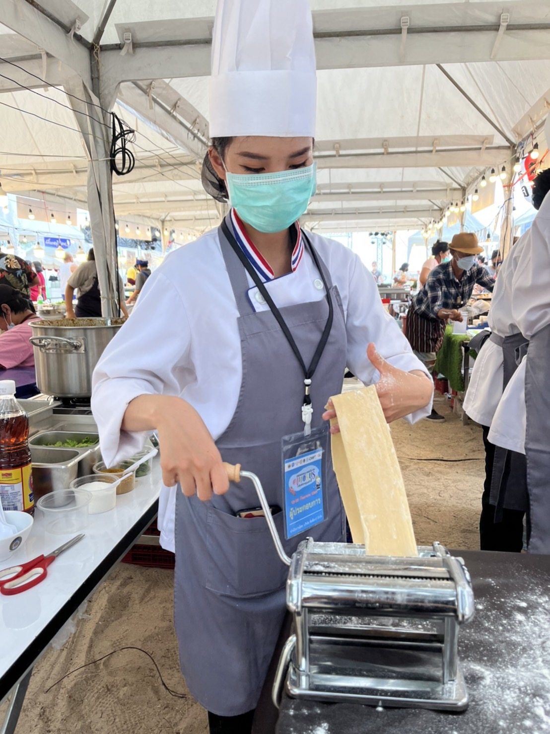นศ.มรภ.เพชรบุรี ร่วมโชว์ฝีมือในงาน“อร่อยออนเดอะบีช” 24 กันยายน 202224 กันยายน 2022Thitiporn Karaketข่าวสื่อสารองค์กร จำนวนผู้ชม : 44 มหาวิทยาลัยราชภัฏเพชรบุรี นำนักศึกษาออกโชว์ฝีมือในงาน “อร่อยออนเดอะบีช @เพชรบุรี การันตีจากยูเนสโก” ผศ.ดร.เสนาะ กลิ่นงาม อธิการบดีมหาวิทยาลัยราชภัฏเพชรบุรี พร้อมด้วยนายทศพร ลิ้มดำเนิน ผู้เชี่ยวชาญด้านอาหาร โรงเรียนการอาหารนานาชาติเพชรบุรี มหาวิทยาลัยราชภัฏเพชรบุรี นำนักศึกษาชั้นปีที่ 4 สาขาวิชาเทคโนโลยีและศิลปะการประกอบอาหาร คณะวิทยาศาสตร์และเทคโนโลยี.เข้าร่วมนำเสนอเมนูอาหารในงาน “อร่อยออนเดอะบีช @เพชรบุรี การันตีจากยูเนสโก” ที่สำนักงานการท่องเที่ยวและกีฬาจังหวัดเพชรบุรีได้จัดขึ้น ภายในงานนักศึกษาได้สาธิตการรีดเส้นพาสต้าเส้นสดให้ผู้เข้าร่วมงานได้ชิมฟรี และจำหน่ายอาหารนะราคาย่อมเยา ได้แก่ เมนูสปาเกตตี้แกงคั่วชะครามปู สปาเกตตี้ปูผัดผงกะหรี่ และสปาเกตตี้ครีมไข่กุ้ง และในโอกาสนี้ นายยุทธพงษ์ คำม่วง นักศึกษาสาขาเทคโนโลยีและศิลปะการประกอบอาหาร ยังได้สาธิตการประกอบอาหารกับนายณัฐวุฒิ เพ็ชรพรหมศร ผู้ว่าราชการจังหวัดเพชรบุรี ในเมนูสปาเกตตี้แกงคั่วชะครามปู เพื่อให้แขกผู้มีเกียรติลิ้มลองรสชาติและเป็นการยกระดับอาหารพื้นถิ่นให้มีมูลค่าเพิ่มยิ่งขึ้น เช่นเดียวกับสาขาวิชาศิลปศึกษา ก็ได้นำผลงานจิตรกรรมชุด “ขนมหวาน..ของดีเมืองเพชร” เข้าร่วมการจัดแสดงภายในด้วย ผู้ที่สนใจสามารถเข้าร่วมงานเพื่อรับชมและชิมสินค้าเพื่อเป็นกำลังใจให้กับนักศึกษาได้ภายในงาน“อร่อยออนเดอะบีช @เพชรบุรี การันตีจากยูเนสโก” ระหว่างวันที่ 23-25 กันยายน นี้ ณ ชายหาดชะอำ หน้าโรงแรมลองบีช อ.ชะอำ จ.เพชรบุรี#กลุ่มงานสื่อสารองค์กร มหาวิทยาลัยราชภัฏเพชรบุรี Facebook iconFacebookTwitter iconTwitterLINE iconLine