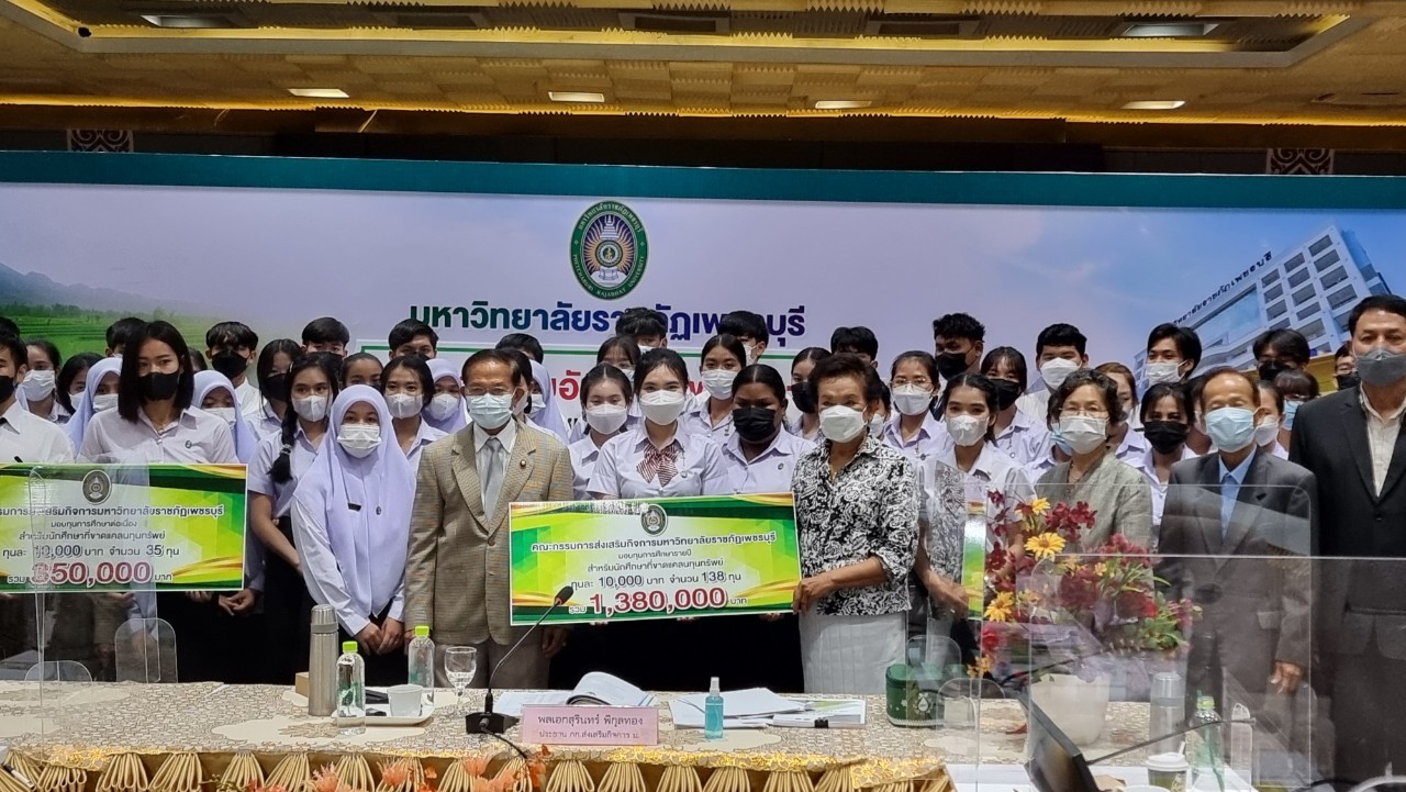 คณะกรรมการส่งเสริมกิจการ มรภ.เพชรบุรี มอบทุนการศึกษา 173 ทุน 5 ตุลาคม 20225 ตุลาคม 2022Thitiporn Karaketข่าวสื่อสารองค์กร จำนวนผู้ชม : 96 พลเอกสุรินทร์ พิกุลทอง ประธานคณะกรรมการส่งเสริมกิจการมหาวิทยาลัยราชภัฏเพชรบุรี พร้อมด้วยคณะกรรมการส่งเสริมกิจการมหาวิทยาลัยราชภัฏเพชรบุรี มอบทุนการศึกษาประจำปีการศึกษา 2565 ประเภททุนให้เปล่าให้กับนักศึกษาจำนวน 138 ทุนๆ ละ 10,000 บาท และทุนการศึกษาประเภทต่อเนื่อง จำนวน 35 ทุน ๆ ละ 10,000 บาท เนื่องในโอกาสวันเฉลิมพระชนมพรรษา ครบ 70 พรรษา ของพระบาทสมเด็จพระปรเมนทรรามาธิบดีศรีสินทรมหา วชิราลงกรณ พระวชิรเกล้าเจ้าอยู่หัว รัชกาลที่ 10 และเนื่องในวันคล้ายวันพระราชสมภพ สมเด็จพระกนิษฐาธิราชเจ้า กรมสมเด็จพระเทพรัตนราชสุดาฯ สยามบรมราชกุมารี เมื่อวันที่ 3 ตุลาคม 2565 ณ ห้องเอกศักดิ์บุตรลับ อาคารสุเมธตันติเวชกุล มหาวิทยาลัยราชภัฏเพชรบุรี#กลุ่มงานสื่อสารองค์กร มหาวิทยาลัยราชภัฏเพชรบุรี Facebook iconFacebookTwitter iconTwitterLINE iconLine