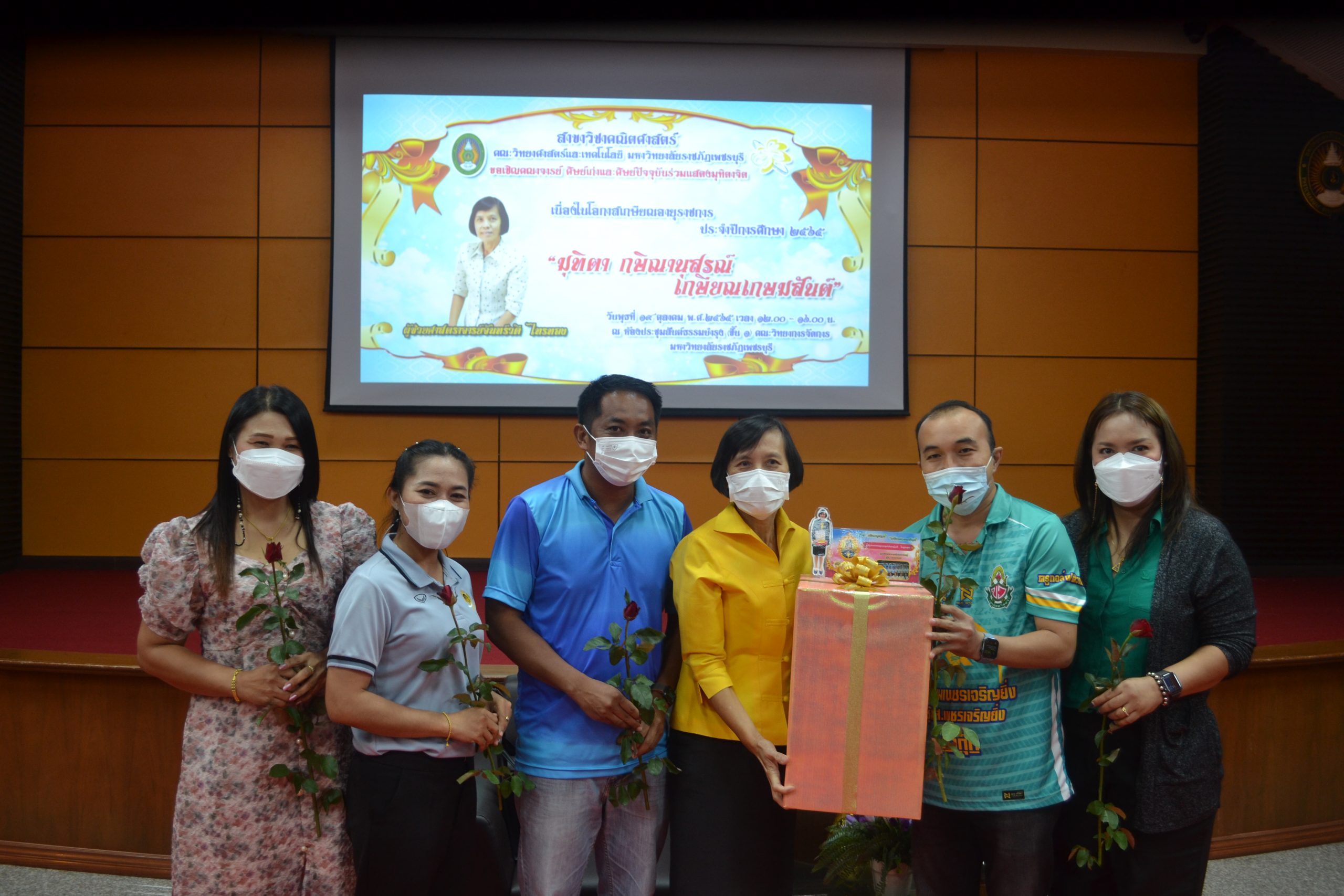 พิธีเกษียณอายุราชการ ผศ.จันทร์วดี ไทรทอง 1 พฤศจิกายน 20221 พฤศจิกายน 2022Thitiporn Karaketข่าวสื่อสารองค์กร จำนวนผู้ชม : 84 พิธีเกษียณอายุราชการ ผศ.จันทร์วดี ไทรทอง “มุทิตา กษิณานุสรณ์ เกษียณเกษมสันต์” ผู้ช่วยศาสตราจารย์ณรงค์ ไกรเนตร์ คณบดีคณะวิทยาศาสตร์และเทคโนโลยี พร้อมด้วยคณาจารย์ประจำสาขาวิชาคณิตศาสตร์ จัดงานแสดงมุทิตาจิตแด่ผู้ช่วยศาสตราจารย์จันทร์วดี ไทรทอง ประจำปี 2565 “มุทิตา กษิณานุสรณ์ เกษียณเกษมสันต์” เมื่อวันก่อนนี้ ณ ห้องประชุมสันต์ธรรมบำรุง (ชั้น 1) คณะวิทยาการจัดการ โดยมีคณาจารย์ ศิษย์เก่าและศิษย์ปัจจุบันเข้าร่วมงานภายใต้บรรยากาศที่เป็นไปอย่างอบอุ่น สืบเนื่องจากสาขาวิชาคณิตศาสตร์ คณะวิทยาศาสตร์และเทคโนโลยี ได้ตระหนักถึงความสำคัญของข้าราชการและบุคลากรของมหาวิทยาลัยที่เป็นผู้ครบเกษียณอายุราชการ ซึ่งเป็นทรัพยากรบุคคลที่มีคุณค่าทางสังคมและทำประโยชน์แก่ประเทศชาติมาเป็นเวลายาวนาน จึงได้จัดงานในครั้งนี้ขึ้นเพื่อให้คณาจารย์ ศิษย์เก่าและศิษย์ปัจจุบัน ได้ร่วมแสดงมุทิตาจิตและยกย่องเชิดชูเกียรติต่อผู้ครบเกษียณอายุราชการที่ได้ทำคุณประโยชน์แก่มหาวิทยาลัยและยังเป็นการสร้างขวัญและกำลังใจให้แก่ผู้ครบเกษียณอายุราชการด้วย ขณะที่กิจกรรมในงานประกอบด้วย ขบวนธงเกียรติยศแห่งสถาบัน การแสดงพิธีเปิดจำขึ้นใจ (รางวัลของครู) จากนักศึกษาชั้นปีที่ 2 การกล่าแสดงมุทิตาจิตโดยคณบดี ผู้แทนประธานสาขาวิชา ศิษย์เก่าและศิษย์ปัจจุบัน และการร้องเพลงแด่ผู้เกษียณอายุราชการ จากนั้นผู้เข้าร่วมงานร่วมมอบดอกไม้แสดงมุทิตาจิตแด่ผู้เกษียณอายุราชการ# กลุ่มงานสื่อสารองค์กร มหาวิทยาลัยราชภัฏเพชรบุรี Facebook iconFacebookTwitter iconTwitterLINE iconLine