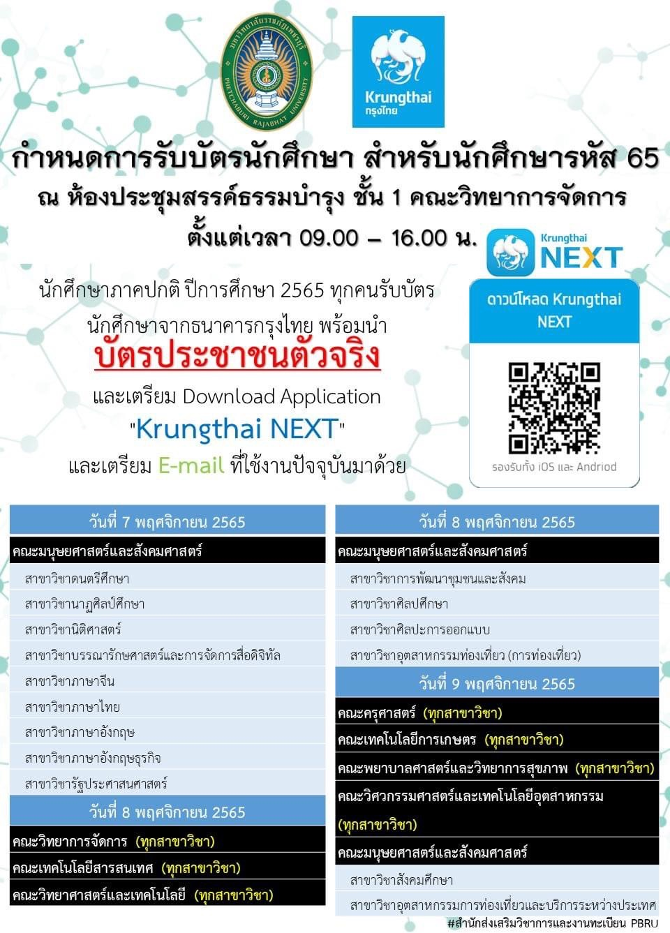 กำหนดการรับบัตรนักศึกษา สำหรับนักศึกษา ประจำปีการศึกษา 2565 ภาคปกติ