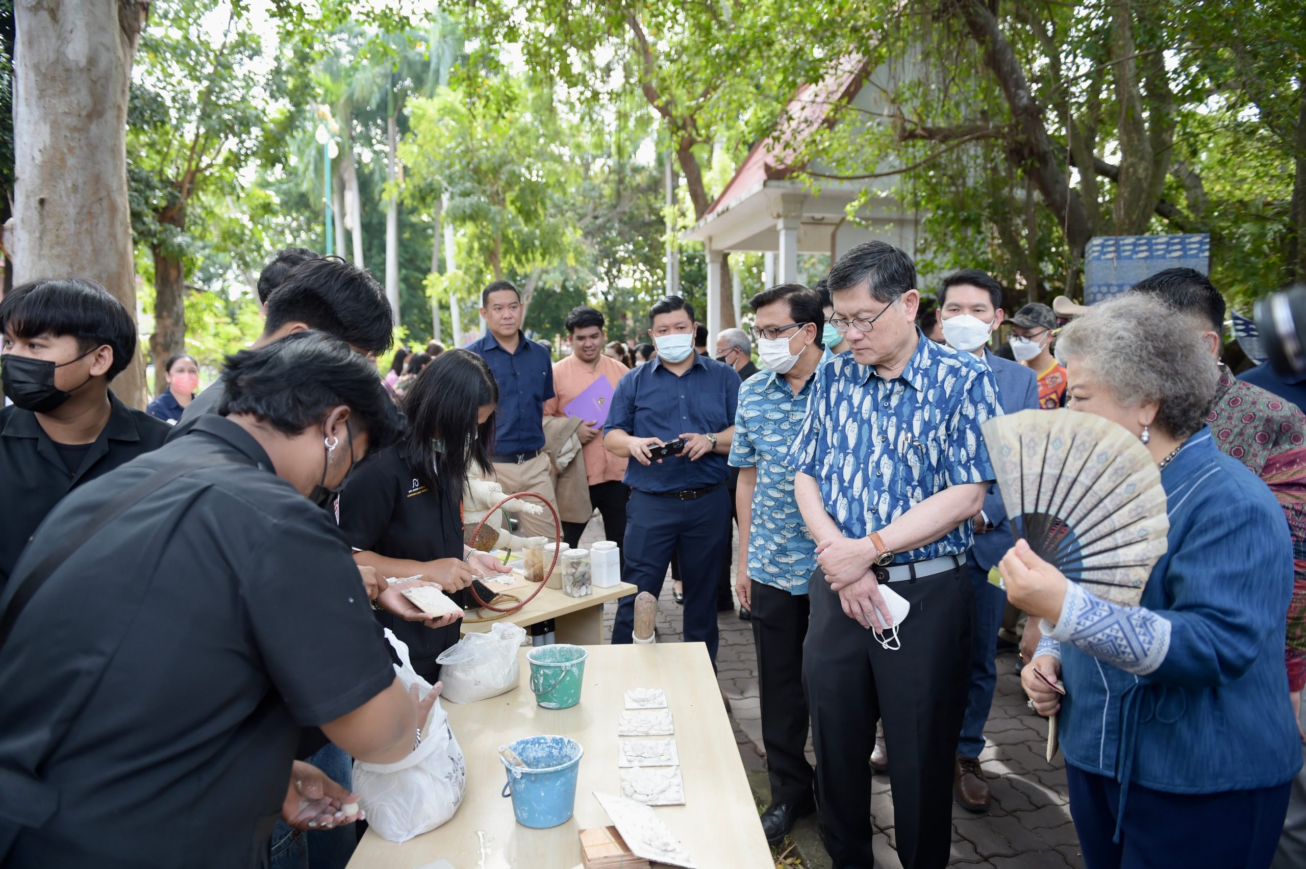 นิทรรศการ “คันฉ่องส่องเพ็ชร์ : มรดกภูมิปัญญาแห่งพริบพรี” 20 พฤศจิกายน 202220 พฤศจิกายน 2022Thitiporn Karaketข่าวสื่อสารองค์กร จำนวนผู้ชม : 246 มหาวิทยาลัยราชภัฏเพชรบุรีร่วมกับกระทรวง อว. จัดนิทรรศการ “คันฉ่องส่องเพ็ชร์ : มรดกภูมิปัญญาแห่งพริบพรี” นำเสนอผลงานหัตถศิลป์พื้นบ้านที่เป็นเอกลักษณ์ของจังหวัดเพชรบุรี วันที่ 20 พฤศจิกายน 2565 ณ หอวัฒนธรรมเฉลิมพระเกียรติ มหาวิทยาลัยราชภัฏเพชรบุรี ศาสตราจารย์ (พิเศษ) ดร.เอนก เหล่าธรรมทัศน์ รัฐมนตรีว่าการกระทรวงการอุดมศึกษา วิทยาศาสตร์ วิจัยและนวัตกรรม (อว.) เป็นประธานเปิดนิทรรศการ “คันฉ่องส่องเพ็ชร์ : มรดกภูมิปัญญาแห่งพริบพรี” โดยมี ดร.ธนภณ วัฒนกุล ที่ปรึกษารัฐมนตรีว่าการกระทรวงการอุดมศึกษา วิทยาศาสตร์ วิจัยและนวัตกรรม นางวันเพ็ญ มังศรี รองผู้ว่าราชการจังหวัดเพชรบุรี รักษาราชการแทนผู้ว่าราชการจังหวัดเพชรบุรี ผู้ช่วยศาสตราจารย์ชัยชาญ ถาวรเวช ผู้อำนวยการสถาบันพิพิธภัณฑ์ศิลปกรรมแห่งชาติ ผู้ช่วยศาสตราจารย์ ดร.เสนาะ กลิ่นงาม อธิการบดีมหาวิทยาลัยราชภัฏเพชรบุรี ส่วนราชการและผู้สนใจเข้าร่วมงาน ผู้ช่วยศาสตราจารย์ชัยชาญ ถาวรเวช ผู้อำนวยการสถาบันพิพิธภัณฑ์ศิลปกรรมแห่งชาติ กล่าวถึงการจัดงานในครั้งนี้ว่า “สถาบันพิพิธภัณฑ์ศิลปกรรมแห่งชาติ ซึ่งเป็นหน่วยงานหนึ่งในสถาบันภายในวิทยสถานด้านสังคมศาสตร์ มนุษยศาสตร์และศิลปกรรมศาสตร์แห่งประเทศไทย (ธัชชา) ได้ร่วมกับมหาวิทยาลัยราชภัฏเพชรบุรี จัดทำนิทรรศการ “คันฉ่องส่องเพ็ชร์ : มรดกภูมิปัญญาแห่งพริบพรี” จัดขึ้นในรูปแบบนิทรรศการหัตถศิลป์สัญจรครั้งที่ 3 เพื่อนำเสนอผลงานผ่านงานหัตถศิลป์พื้นบ้านที่สำคัญและเป็นเอกลักษณ์ของจังหวัดเพชรบุรี โดยได้ร้อยเรียงเรื่องราวของวัตถุจัดแสดงชิ้นต่าง ๆ ที่แสดงให้เห็นวิถีชีวิตของชาวเพชรบุรีเข้าไว้ด้วยกัน อาทิ งานปูนปั้น หัวละครชาตรี หัววัว งานฉลุกระดาษ หนังใหญ่ เทียนแห่นาค และโดยเฉพาะอย่างยิ่งคันฉ่องฝังลายไม้มูกที่เป็นเครื่องสะท้อนเรื่องราวของชาวเพชรบุรีทั้งแง่ความผูกพันธ์กับธรรมชาติและความเชื่อพื้นถิ่น” ศาสตราจารย์ (พิเศษ) ดร.เอนก เหล่าธรรมทัศน์ รัฐมนตรีว่าการกระทรวงการอุดมศึกษา วิทยาศาสตร์ วิจัยและนวัตกรรม (อว.) เผยว่า “มรดกอันล้ำค่าเหล่านี้มีคุณค่าต่อการศึกษาวัฒนธรรมทั้งในระดับท้องถิ่นและระดับชาติ คู่ควรกับการอนุรักษ์ เป็นต้นแบบนิทรรศการให้กับนิทรรศการศิลปะพื้นบ้านที่จะเกิดขึ้นจริงภายในพิพิธภัณฑ์ศิลปกรรมแห่งชาติ เป็นการสร้างเครือข่ายพิพิธภัณฑ์ศิลปกรรมแห่งชาติร่วมกับสถาบันในร