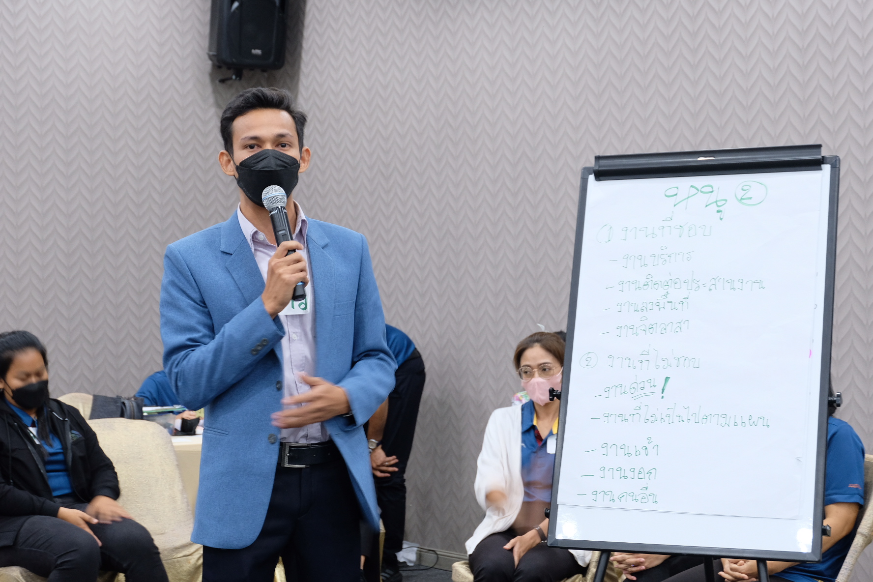 “Positive thinking เพื่อการให้บริการที่เป็นเลิศ” 28 พฤศจิกายน 202228 พฤศจิกายน 2022Thitiporn Karaketข่าวสื่อสารองค์กร จำนวนผู้ชม : 180 งานบริหารงานบุคคล จัดโครงการอบรมเชิงปฏิบัติการ “สร้าง Positive thinking เพื่อการให้บริการที่เป็นเลิศ” ให้กับบุคลากรสายสนับสนุนวิชาการ ผู้ช่วยศาสตราจารย์ ดร.เสนาะ กลิ่นงาม อธิการบดีมหาวิทยาลัยราชภัฏเพชรบุรี เป็นประธานเปิดโครงการอบรมเชิงปฏิบัติการ “สร้าง Positive thinking เพื่อการให้บริการที่เป็นเลิศ” ที่งานบริหารงานบุคคล กองกลาง สำนักงานอธิการบดี ได้จัดขึ้น ระหว่างวันที่ 26 – 27 พฤศจิกายน 2565 ณ โรงแรมโกลเด้นซี หัวหิน จังหวัดประจวบคีรีขันธ์ โดยมีบุคลากรสายสนับสนุนวิชาการเข้าร่วมกว่า 100 คน นางสาวธัญวรัณณิช โพธิสุวรรณ หัวหน้างานบริหารงานบุคคล กล่าวว่า “งานบริหารงานบุคคล ได้เล็งเห็นถึงความสำคัญของการให้บริการ ซึ่งถือเป็นหน้าที่หลักของบุคลากรสายสนับสนุนทุกคนที่ต้องพัฒนาให้รอบด้าน ทั้งความรู้ ทักษะ รวมไปถึงการมีทัศนคติเชิงบวกต่อภารกิจการให้บริการ กระบวนการทางความคิดของบุคลากรเป็นสิ่งที่มีอิทธิพลที่ส่งผลต่อการบริหารองค์กร ต้องอาศัยการมีมุมมองความคิดและทัศนคติในเชิงบวก มีความเชื่อมั่น ศรัทธา เล็งเห็นคุณค่าในตนเองและผู้อื่น มีความสุขและสร้างความสุขให้คนรอบข้าง มีจิตใจรักการทำงาน รักในองค์กร สามารถแก้ไขปัญหา และเผชิญอุปสรรคในการทำงานได้เป็นอย่างดี นำไปสู่คำตอบที่มหาวิทยาลัยต้องการคือ งานได้ผล คนเป็นสุข โดยวัตถุประสงค์เพื่อให้ผู้เข้ารับการอบรมมีความรู้ ความเข้าใจและตระหนักรู้ถึงผลดีของความคิดเชิงบวกต่อการทำงาน ปรับระดับคุณภาพการให้บริการสู่ความเป็นเลิศ และสามารถเชื่อมโยงองค์ความรู้ที่ได้จากการอบรมไปใช้ในการทำงานจริงได้อย่างเป็นรูปธรรม กิจกรรมในโครงการอบรมเชิงปฏิบัติการ “สร้าง Positive thinking เพื่อการให้บริการที่เป็นเลิศ” ได้รับเกียรติจากโค้ชช่อ ดร.พงศ์ปณต พัสระ และทีมงาน มาเป็นผู้บรรยายให้ความรู้ในเรื่องการสร้างความเข้าใจทางความคิดและสมอง Executive Function รู้จักกระบวนการปรับความคิดเชิงบวก การสร้างความเข้าใจความต้องการของคน ประเภทของคนเพื่อการทำงานร่วมกัน การวิเคราะห์คนเพื่อการบริหารงาน กิจกรรมเพื่อการไปถึงเป้าหมายร่วมกันและการวางแผนการทำงาน กิจกรรม Positive feedback ที่จะทำให้เกิดการสื่อสารที่ทรงพลัง ตลอดจนกิจกรรม workshop การจัดการอารมณ์#กลุ่มงานสื่อสารองค์กร มหาวิทยาลัยราชภัฏเพชรบุรี Facebook iconFacebookTwitter iconTwitterLINE iconLine