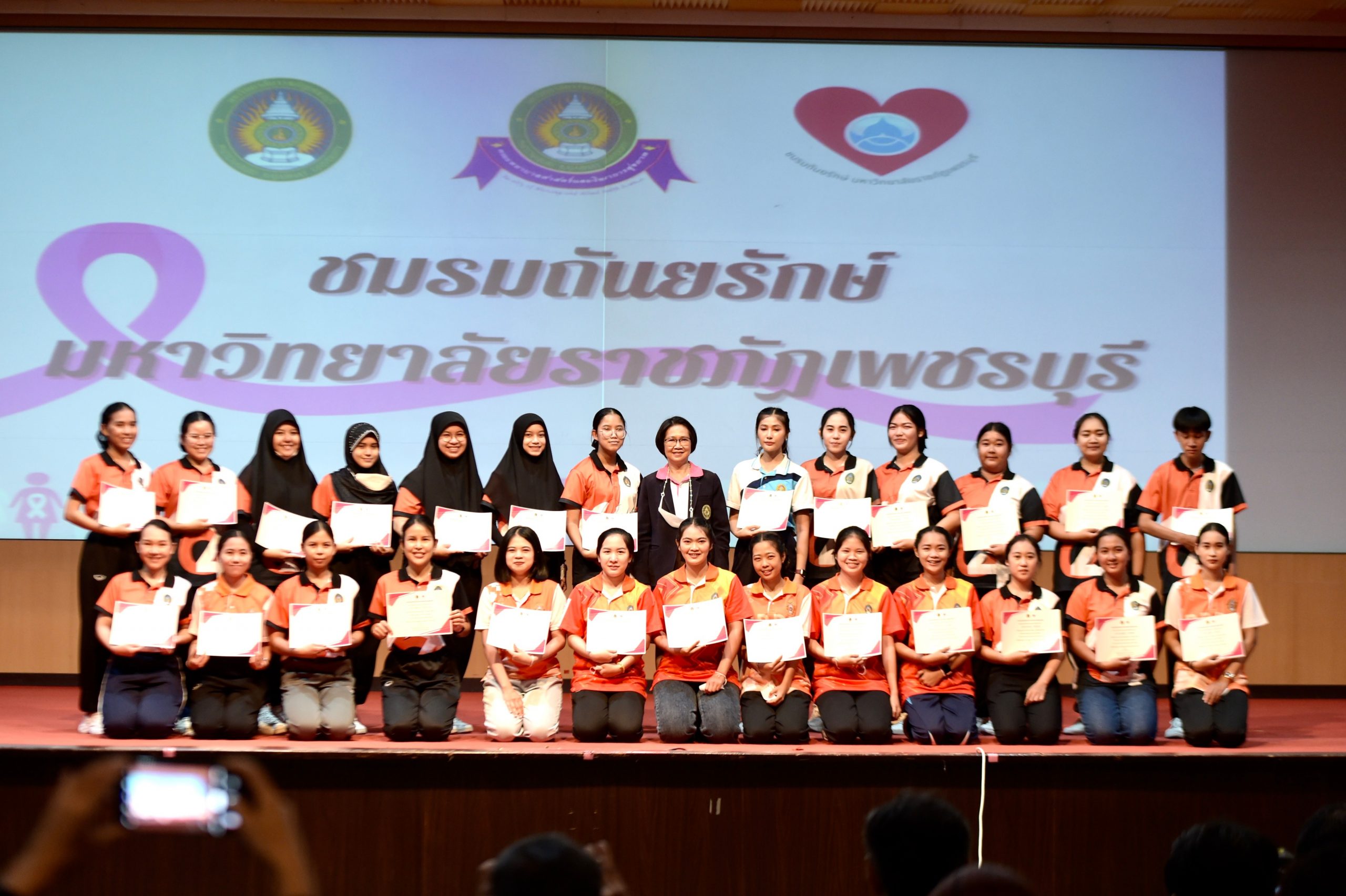 นางสาวทศพร สินสอน ประธานชมรมถันยรักษ์ มหาวิทยาลัยราชภัฏเพชรบุรี กล่าวว่า “โรคมะเร็งเต้านมถือเป็นปัญหาสาธารณสุขที่สำคัญและมีอตราการเสียชีวิตเป็นอันดับหนึ่งของผู้หญิงในประเทศไทย ส่วนมากพบในอายุ 20-40 ปี โดยมีปัจจัยเสี่ยงที่สำคัญคือ กลุ่มคนที่มีประจำเดือนเมื่ออายุน้อยหรือหมดประจำเดือนแล้ว ขาดการออกกำลังกาย รับประทานอาหารไขมันสูง คณะพยาบาลศาสตร์และวิทยาการสุขภาพ จึงได้จัดตั้งโครงการเพชรราชภัฏรักษ์ถัน (Breast Care) โดยมีนักศึกษาจากคณะต่าง ๆ เป็นแกนนำในการจัดกิจกรรม เพื่อเผยแพร่ความรู้และสอนวิธีการตรวจเต้านมด้วยตนเองให้แก่นักศึกษา อาสาสมัครสาธารณสุขและบุคคลทั่วไป รวมถึงจัดหน่วยสุขภาพเคลื่อนที่ให้กับหน่วยงานภายนอก เพื่อให้สามารถค้นหาความผิดปกติของเต้านมผ่านการตรวจเต้านมด้วยตนเอง (BSE)”