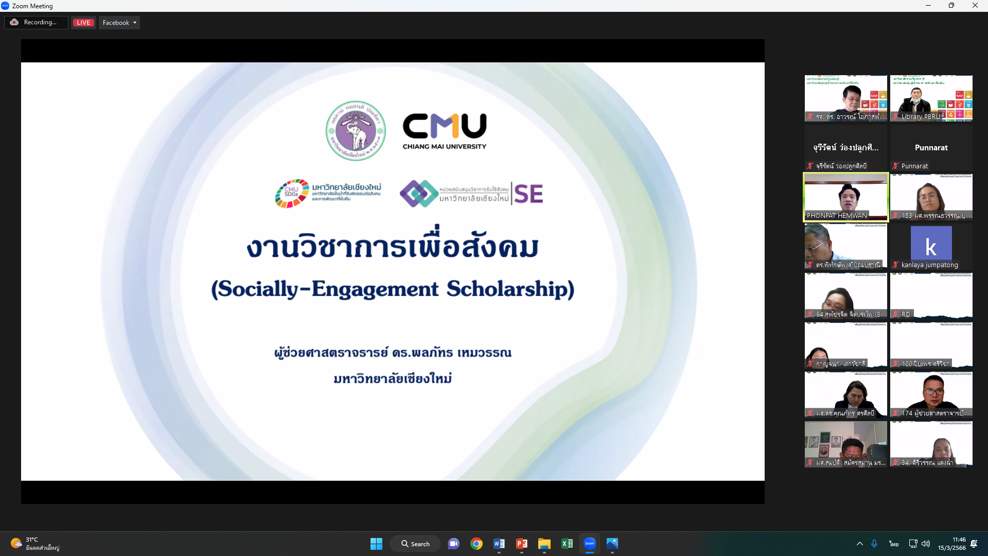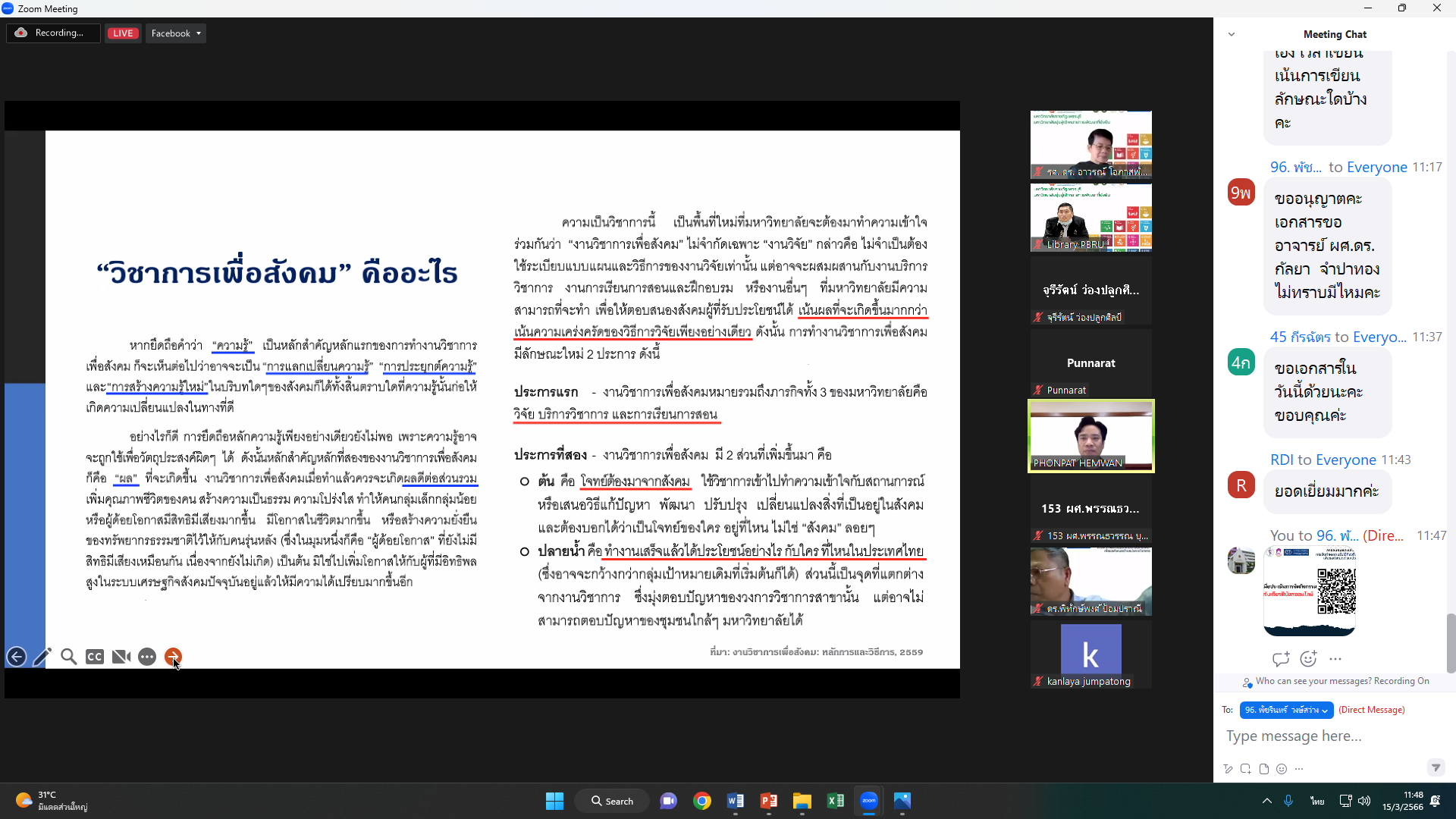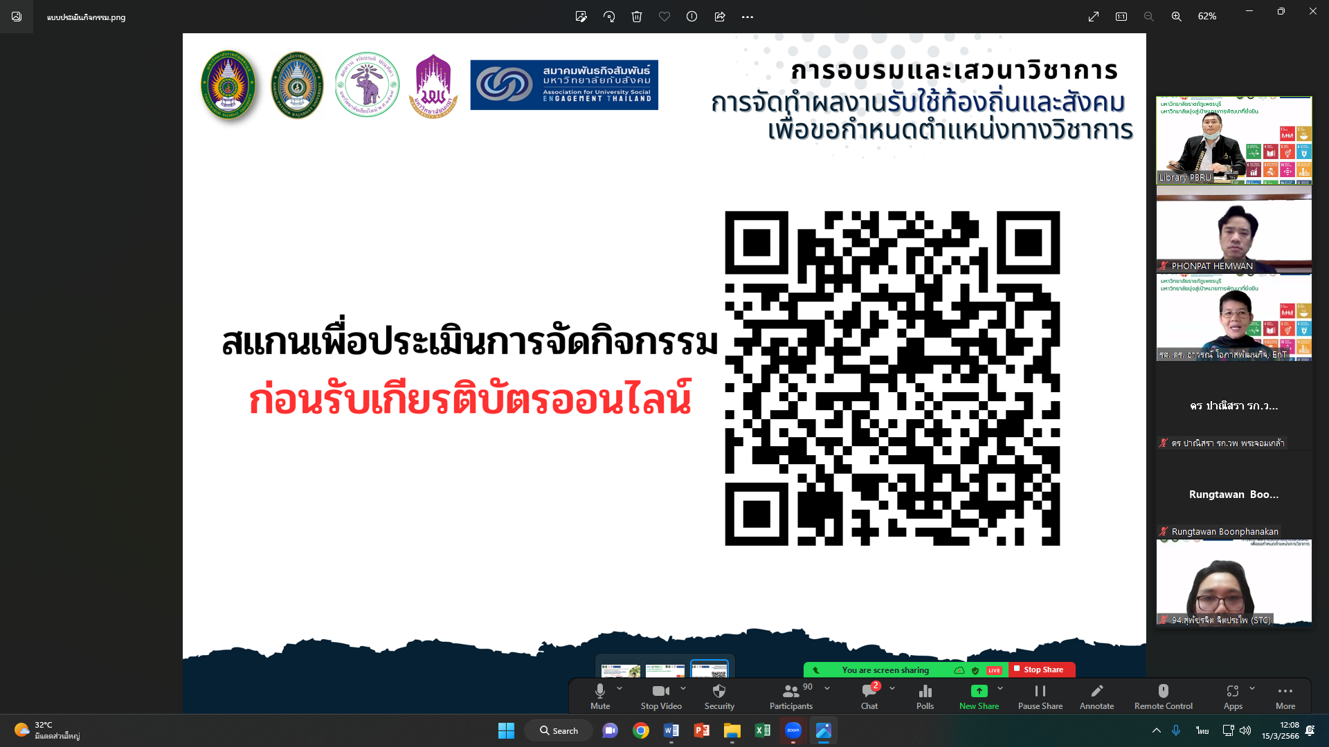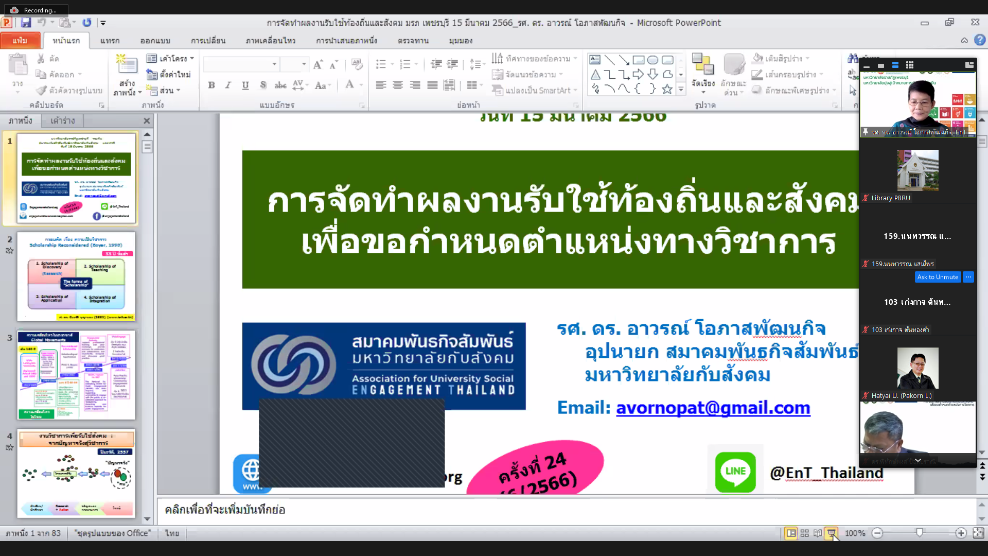 การจัดทำผลงานรับใช้ท้องถิ่นและสังคมเพื่อขอกำหนดตำแหน่งทางวิชาการ 16 มีนาคม 202316 มีนาคม 2023Thitiporn Karaketข่าวสื่อสารองค์กร จำนวนผู้ชม : 45 มหาวิทยาลัยราชภัฏเพชรบุรีจัดโครงการอบรมเชิงปฏิบัติการและเสวนาวิชาการ "การจัดทำผลงานรับใช้ท้องถิ่นและสังคมเพื่อขอกำหนดตำแหน่งทางวิชาการ" เมื่อวันที่ 15 มีนาคม 2566 มหาวิทยาลัยราชภัฏเพชรบุรี โดยสถาบันวิจัยและส่งเสริมศิลปวัฒนธรรม จัดโครงการอบรมเชิงปฏิบัติการและเสวนาวิชาการ “การจัดทำผลงานรับใช้ท้องถิ่นและสังคมเพื่อขอกำหนดตำแหน่งทางวิชาการ ในรูปแบบออนไลน์ โดยมีผู้บริหาร คณาจารย์และบุคลากรที่เกี่ยวข้องทั้งภายในและภายนอกมหาวิทยาลัย รวมถึงสถาบันเครือข่ายภายนอกที่ดำเนินงานด้านบริการวิชาการรับใช้ท้องถิ่นและสังคมข้าร่วม โอกาสนี้ได้รับเกียรติจากผู้ช่วยศาสตราจารย์พจนารถ บัวเขียว รองอธิการบดีฝ่ายยุทธศาสตร์การพัฒนาท้องถิ่นอย่างยั่งยืน เป็นประธานเปิดการจัดกิจกรรมโครงการ อาจารย์ปองพล รักการงาน รองผู้อำนวยการสถาบันวิจัยและส่งเสริมศิลปวัฒนธรรม ฝ่ายงานพัฒนาท้องถิ่นและบริการวิชาการ มหาวิทยาลัยราชภัฏเพชรบุรี ได้กล่าวถึงวัตถุประสงค์ของกิจกรรมในครั้งนี้ว่า “เพื่อสร้างความรู้ความเข้าใจในเรื่องการนำเสนอผลงาน/รายงานความก้าวหน้างานวิชาการรับใช้สังคม แนะนำแนวทางการทำงาน กรอบงานวิจัย รวมทั้งแนวทางการใช้งานวิจัยชุมชนขอกำหนดตำแหน่งทางวิชาการด้านรับใช้สังคม โดยได้รับเกียรติจากรองศาสตราจารย์ ดร.อาวรณ์ โอภาสพัฒนกิจ สมาคมพันธกิจสัมพันธ์มหาวิทยาลัยกับสังคม ผู้ช่วยศาสตราจารย์ ดร.พิทักษ์พงศ์ ป้อมปราณี มหาวิทยาลัยราชภัฏนครปฐม ผู้ช่วยศาสตราจารย์ ดร.กัลยา จำปาทอง มหาวิทยาลัยพะเยา ผู้ช่วยศาสตราจารย์ ดร.พลภัทร เหมวรรณ มหาวิทยาลัยเชียงใหม่ มาเป็นวิทยากรในการบรรยาย#กลุ่มงานสื่อสารองค์กร มหาวิทยาลัยราชภัฏเพชรบุรี Facebook iconFacebookTwitter iconTwitterLINE iconLine