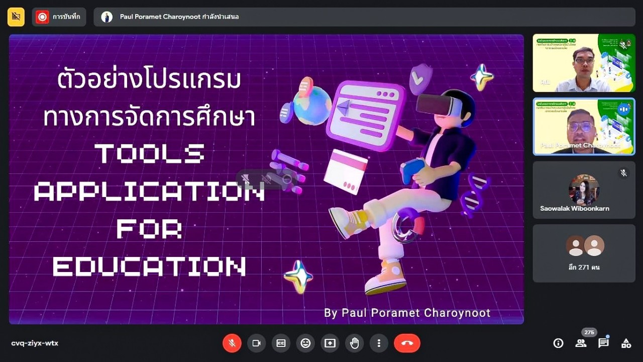 เทคโนโลยีสารสนเทศเพื่อการบริหารการศึกษา ได้รับเกียรติจาก คุณปรเมศวร์ ชรอยนุช ผู้อำนวยการกลุ่มส่งเสริมความร่วมมือทางวิชาการ สำนักบริหารงานความเป็นเลิศด้านวิทยาศาสตร์ศึกษา สพฐ. เป็นวิทยากร