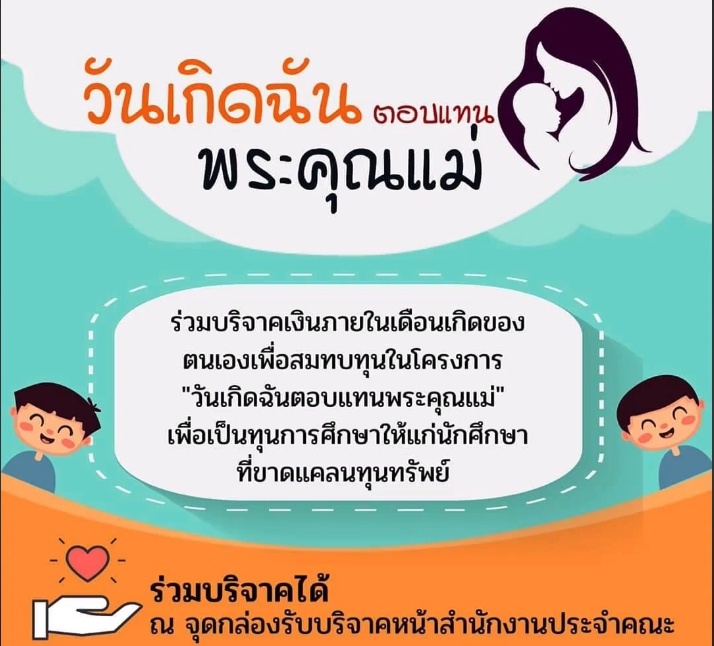 ขอเชิญชวนนักศึกษา ร่วมบริจาคเงินในเดือนเกิดของตนเอง 7 มกราคม 2020nisanti sinprasertกิจกรรมนักศึกษา จำนวนผู้ชม : 211 ขอเชิญชวนนักศึกษา ร่วมบริจาคเงินในเดือนเกิดของตนเอง เพื่อสมทบทุนในโครงการ “วันเกิดฉันตอบแทนพระคุณแม่” เป็นทุนการศึกษาให้แก่นักศึกษาที่ขาดแคลนทุนทรัพย์ ร่วมบริจาคได้ ณ จุดกล่องรับบริจาคหน้าสำนักงานประจำคณะ Facebook iconFacebookTwitter iconTwitterLINE iconLine