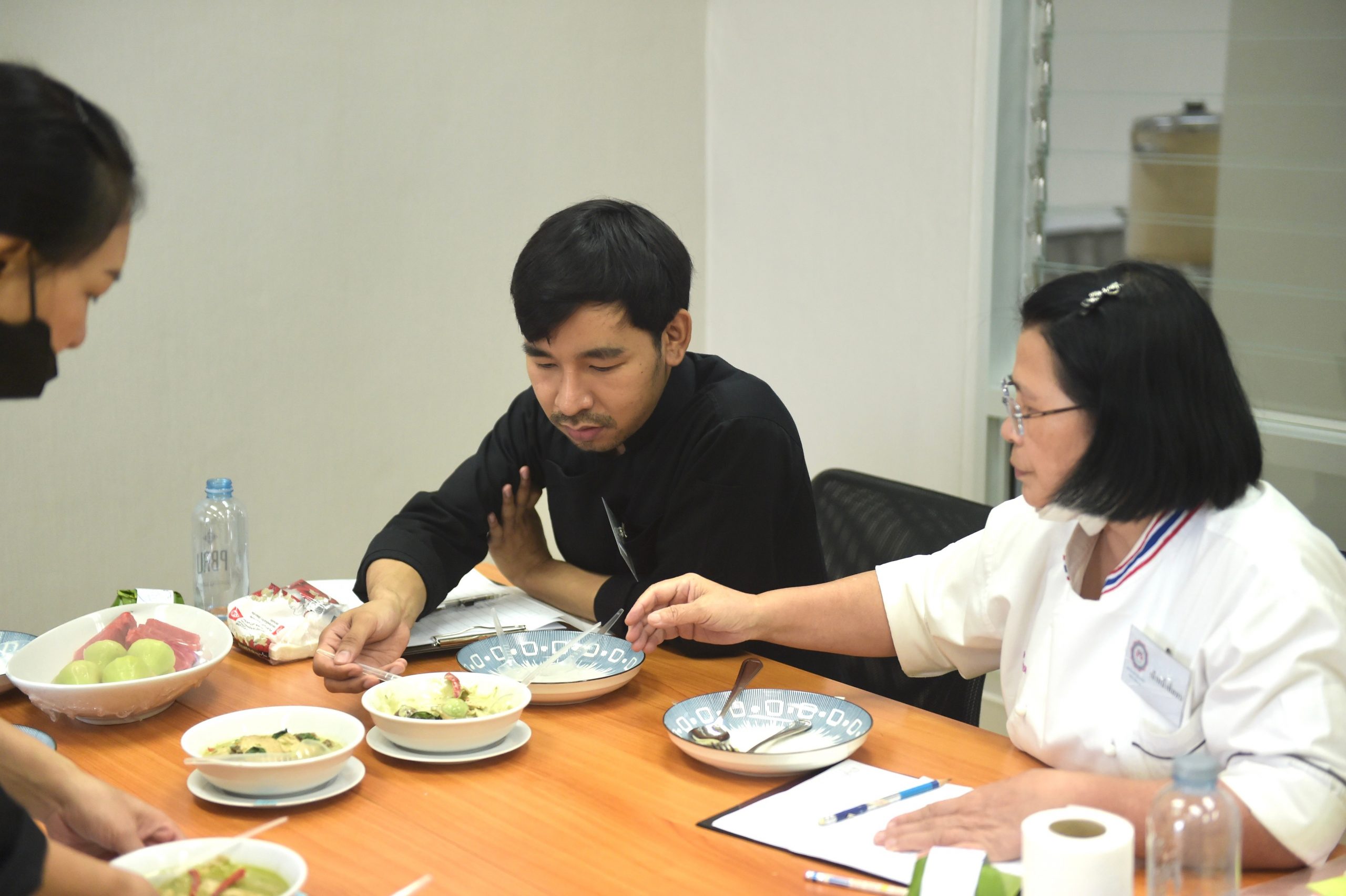 นักศึกษาเชฟ ทดสอบมาตรฐานคุณวุฒิวิชาชีพอาหารไทย ระดับ 2 27 เมษายน 202327 เมษายน 2023Thitiporn Karaketข่าวสื่อสารองค์กร จำนวนผู้ชม : 223 นักศึกษาเชฟ เข้ารับการทดสอบสมรรถนะบุคคลตามอาชีพคุณวุฒิวิชาชีพ อาหารไทย ระดับ 2 เพื่อยกระดับและพัฒนาทักษะทางวิชาชีพ นักศึกษาสาขาวิชาเทคโนโลยีและศิลปะการประกอบอาหาร คณะวิทยาศาสตร์และเทคโนโลยี ชั้นปีที่ 3 และปีที่ 4 จำนวน 46 คน เข้ารับการทดสอบสมรรถนะบุคคลตามาตรฐานอาชีพคุณวุฒิวิชาชีพ อาหารไทย ระดับ 2 ระหว่างวันที่ 26 – 27 เมษายน 2566 ที่โรงเรียนการอาหารนานาชาติเพชรบุรีได้จัดขึ้น ณ โรงเรียนการอาหารนานาชาติเพชรบุรี มหาวิทยาลัยราชภัฏเพชรบุรี สืบเนื่องจากโรงเรียนการอาหารนานาชาติเพชรบุรี ได้ผ่านการตรวจประเมินเพื่อเป็นองค์กรที่มีหน้าที่รับรองสมรรถนะของบุคคลตามมาตรฐานอาชีพ สถาบันคุณวุฒิวิชาชีพ องค์กรมหาชน เมื่อปี 2565 เพื่อเป็นสถานที่ในการทดสอบสมรรถนะวิชาชีพผู้ประกอบอาหารไทย ระดับ 1 – 3 โดยมีเจ้าหน้าที่สอบเป็นผู้เชี่ยวชาญในสาขาอาชีพที่ได้รับการรับรองจากสถาบันคุณวุฒิวิชาชีพ เพื่อยกระดับและพัฒนาทักษะทางวิชาชีพของนักศึกษา สำหรับเมนูที่ใช้ในการทดสอบในครั้งนี้ มีทั้งหมด 8 เมนู ใช้เวลาในการปรุงรวม 8 ชั่วโมง ได้แก่ เมนูต้มยำน้ำใส ข้าวต้มเครื่อง แกงเขียวหวาน น้ำพริกกะปิ ผักกะเพราะ ผัดไทย ขนมถุงทองและขนมตะโก้#กลุ่มงานสื่อสารองค์กร มหาวิทยาลัยราชภัฏเพชรบุรี Facebook iconFacebookTwitter iconTwitterLINE iconLine