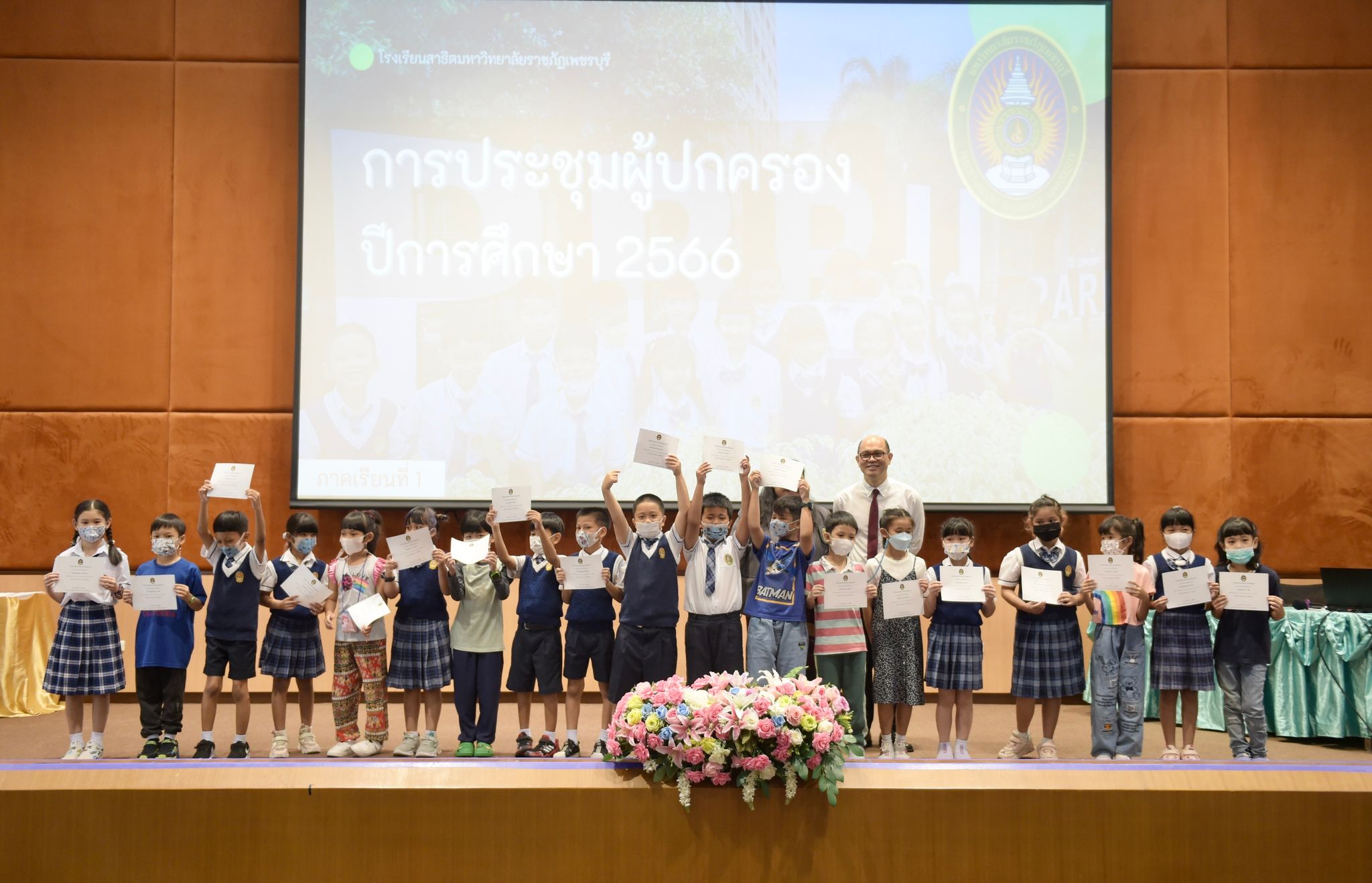 โรงเรียนสาธิตฯ ประชุมผู้ปกครอง ชั้นประถมศึกษา EP – MITSL 12 พฤษภาคม 202313 พฤษภาคม 2023Thitiporn Karaketข่าวสื่อสารองค์กร จำนวนผู้ชม : 190 โรงเรียนสาธิตมหาวิทยาลัยราชภัฏเพชรบุรี ประชุมผู้ปกครอง ชั้นประถมศึกษา EP – MITSL ประจำปีการศึกษา 2566 ผู้ช่วยศาสตราจารย์ ดร.เสนาะ กลิ่นงาม อธิการบดีมหาวิทยาลัยราชภัฏเพชรบุรี เป็นประธานในการกล่าวต้อนรับผู้ปกครองโรงเรียนสาธิตมหาวิทยาลัยราชภัฏเพชรบุรี ในการประชุมผู้ปกครอง ชั้นประถมศึกษา EP – MITSL ประจำปีการศึกษา 2566 ที่โรงเรียนสาธิตมหาวิทยาลัยราชภัฏเพชรบุรีได้จัดขึ้นเมื่อวันที่ 12 พฤษภาคม 2566 ณ ห้องประชุมคณะพยาบาลศาสตร์และวิทยาการสุขภาพ มหาวิทยาลัยราชภัฏเพชรบุรี โดยมีอาจารย์ ดร.มนัญญา ปริยวิชญภักดี รองอธิการบดีมหาวิทยาลัยราชภัฏเพชรบุรี ฝ่ายยุทธศาสตร์การพัฒนาบัณฑิตและวิชาการ และคณะครูโรงเรียนสาธิตมหาวิทยาลัยราชภัฏเพชรบุรี ให้การต้อนรับผู้ปกครอง อาจารย์ ดร.สรรเสริญ เลาหสถิตย์ ผู้อำนวยการโรงเรียนสาธิตมหาวิทยาลัยราชภัฏเพชรบุรี กล่าวว่า “การจัดการเรียนการสอนของโรงเรียนสาธิตมหาวิทยาลัยราชภัฏเพชรบุรี เน้นการจัดการเรียนการสอนโดยผู้เรียนเป็นหลัก พร้อมกับการจัดการเรียนการสอนของโรงเรียนที่สอนทักษะการนำเสนอ สนับสนุนให้นักเรียนได้เข้าร่วมการแข่งขันทั้งในระดับจังหวัด ระดับประเทศและระดับนานาชาติ ขณะเดียวกันยังได้ให้ความสำคัญในเรื่องของสุขภาวะทางอารมณ์ที่ดี ด้วยการจัดกิจกรรมต่าง ๆ เช่น เล่นเกม ร้องเพลง เล่นดนตรี” โอกาสนี้ อาจารย์ ดร.มนัญญา ปริยวิชญภักดี รองอธิการบดีมหาวิทยาลัยราชภัฏเพชรบุรี ได้ให้เกียรติมอบเกียรติบัตรให้กับนักเรียนระดับชั้นประถมศึกษาปีที่ 1 – ปีที่ 3 ที่มีผลการเรียนดีด้วย#กลุ่มงานสื่อสารองค์กร มหาวิทยาลัยราชภัฏเพชรบุรี Facebook iconFacebookTwitter iconTwitterLINE iconLine