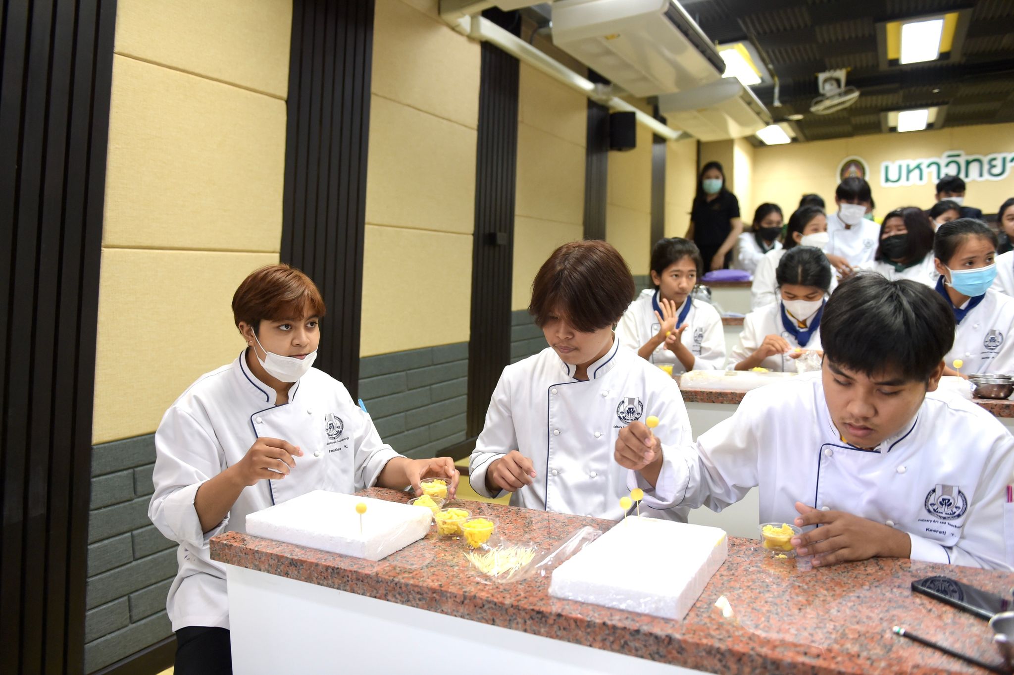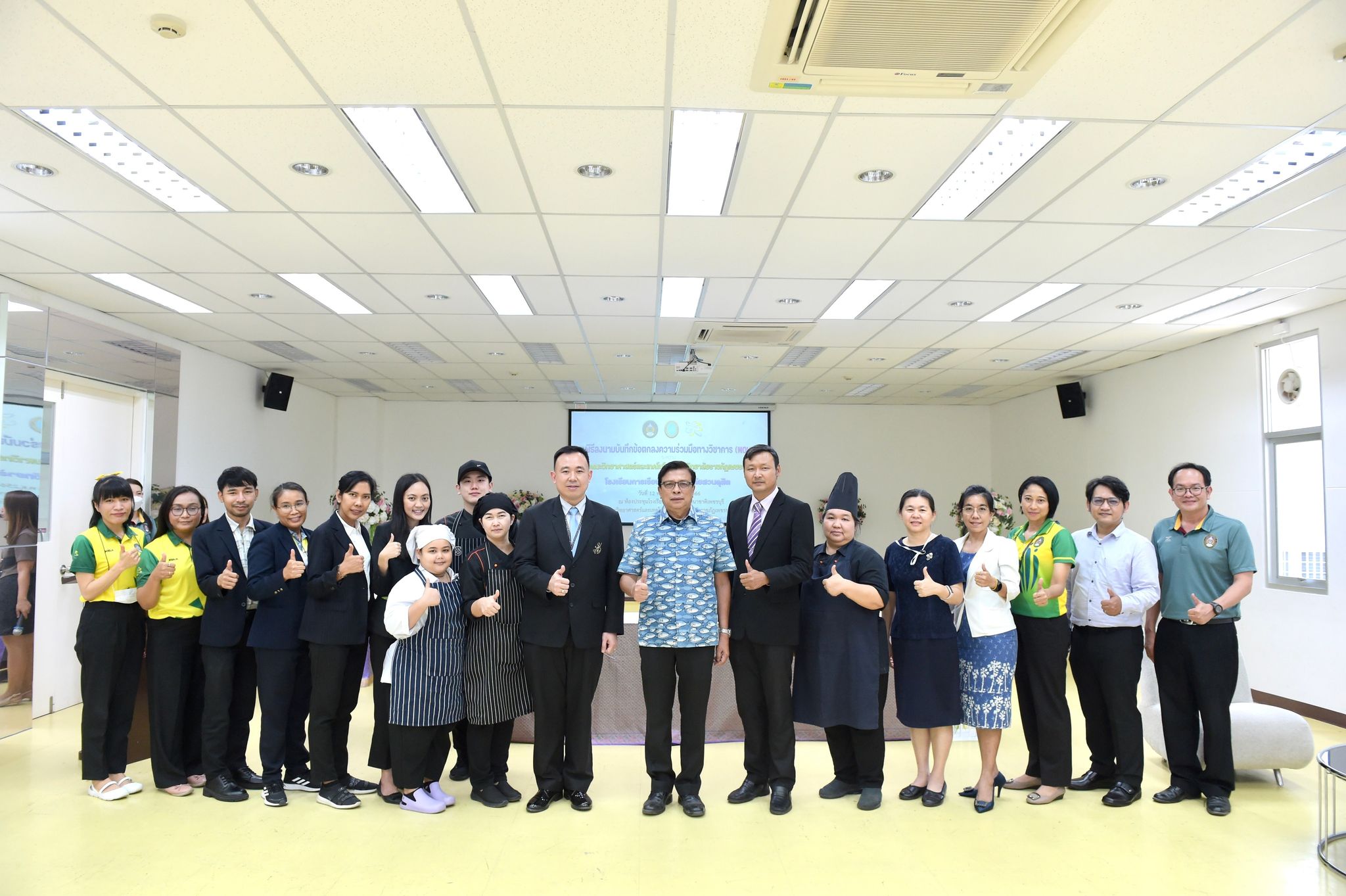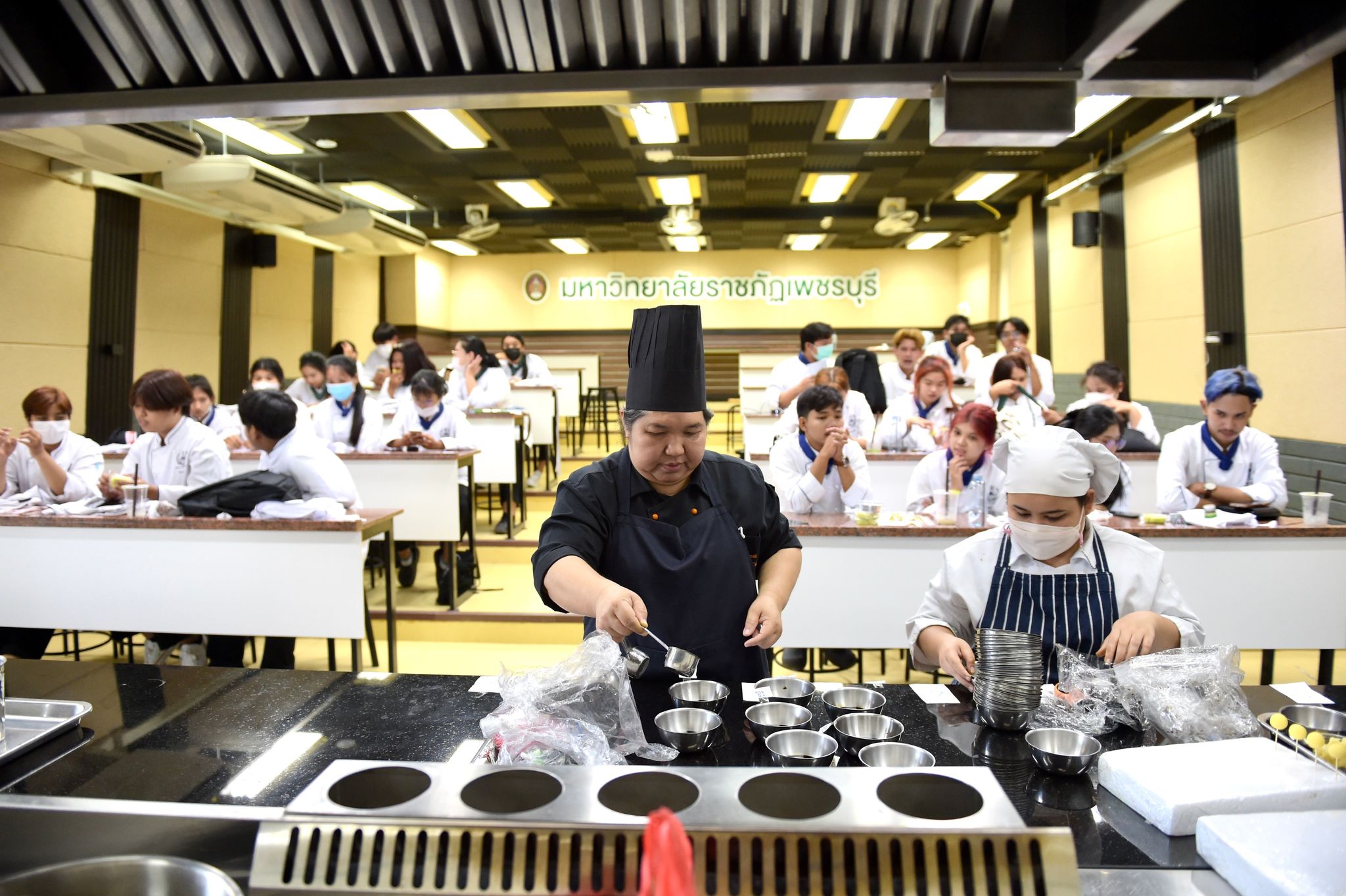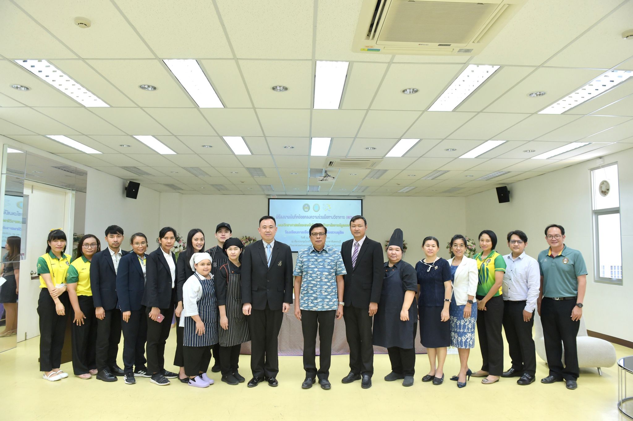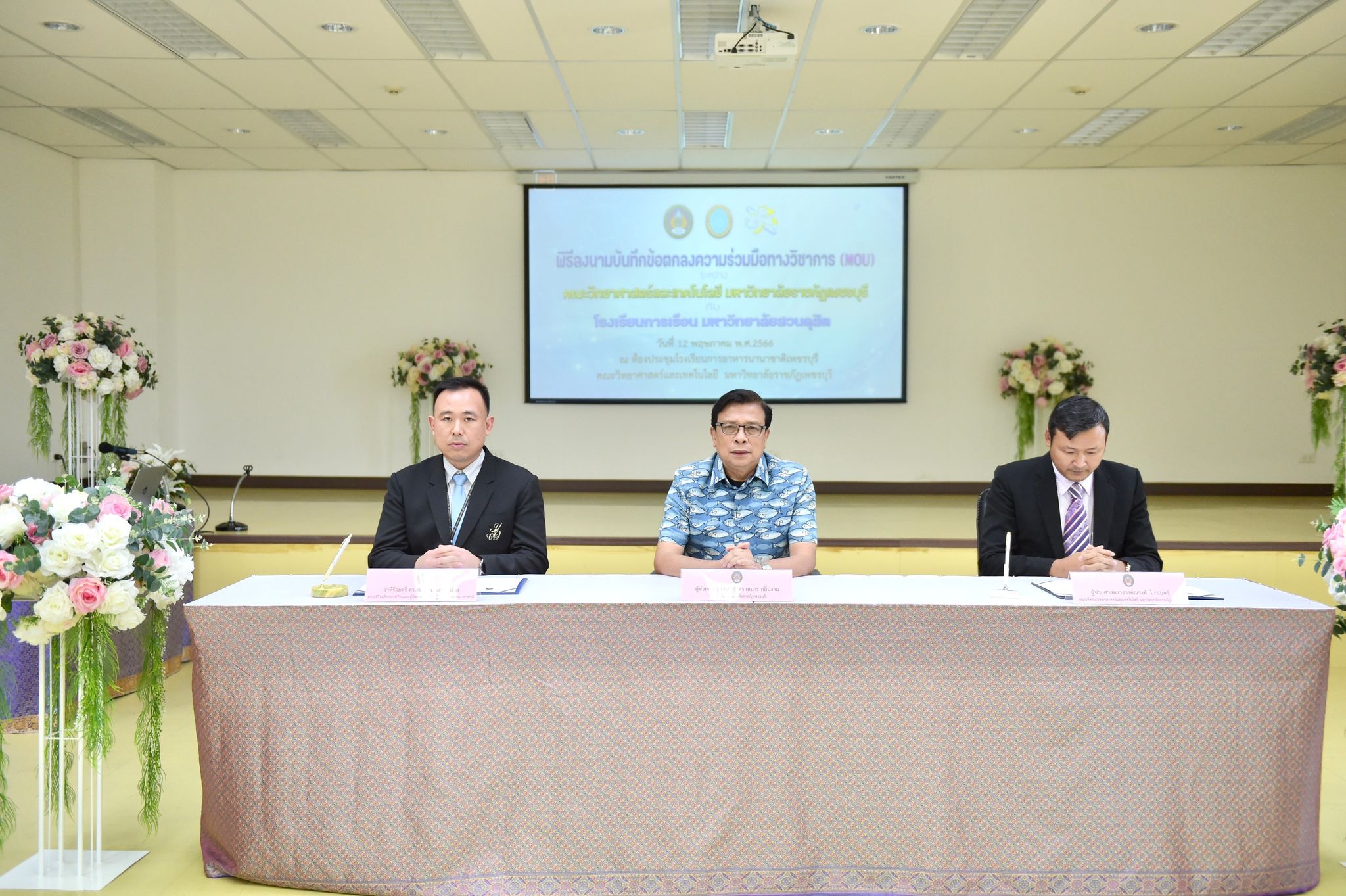 ลงนามความร่วมมือด้านคหกรรมศาสตร์ 12 พฤษภาคม 202316 มิถุนายน 2023Thitiporn Karaketข่าวสื่อสารองค์กร จำนวนผู้ชม : 65 คณะวิทยาศาสตร์และเทคโนโลยี ลงนามความร่วมมือกับโรงเรียนการเรือน มหาวิทยาลัยสวนดุสิต ในการพัฒนาการเรียนการสอน การบริการวิชาการและการวิจัยที่เกี่ยวข้องกับคหกรรมศาสตร์ วันที่ 12 พฤษภาคม 2566 ณ ห้องประชุมชั้น 5 โรงเรียนการอาหารนานาชาติเพชรบุรี มหาวิทยาลัยราชภัฏเพชรบุรี ผู้ช่วยศาสตราจารย์ ดร.เสนาะ กลิ่นงาม อธิการบดีมหาวิทยาลัยราชภัฏเพชรบุรี เป็นประธานในพิธีลงนามบันทึกข้อตกลงความร่วมมือทางวิชาการกับโรงเรียนการเรือน มหาวิทยาลัยสวนดุสิต โดยมีผู้ช่วยศาสตราจารย์ณรงค์ ไกรเนตร์ คณบดีคณะวิทยาศาสตร์และเทคโนโลยี มหาวิทยาลัยราชภัฏเพชรบุรี ร่วมลงนามบันทึกข้อตกลงความร่วมมือกับว่าที่ร้อยตรี ดร.ธนพัฒน์ แสงรุ่งเรือง คณบดีโรงเรียนการเรือน มหาวิทยาลัยสวนดุสิต การลงนามบันทึกข้อตกลงความร่วมมือทางวิชาการในครั้งนี้ เพื่อพัฒนาการเรียนการสอน การบริการวิชาการและการวิจัยที่เกี่ยวข้องกับคหกรรมศาสตร์ ร่วมกันผลักดันให้เกิดการขยายตัวของการเรียนการสอนและการวิจัยเกี่ยวกับคหกรรมศาสตร์ที่มีคุณภาพสูง ร่วมกันสนับสนุนให้มีการแลกเปลี่ยนบุคลากร นิสิต นักศึกษา และองค์ความรู้เพื่อพัฒนาหลักสูตรและการวิจัยด้านคหกรรมศาสตร์ โดยทั้งสองสถาบันจะร่วมมือกันในการพัฒนาการเรียนการสอน การแลกเปลี่ยนอาจารย์ การสร้างหลักสูตร การสร้างห้องปฏิบัติการเพื่อการเรียนรู้ รวมถึงการบูรณาการความรู้ การวิจัยและบริการวิชาการ การตีพิมพ์ผลงานทางวิชาการและการจัดประชุมทางวิชาการทั้งในระดับชาติและระดับนานาชาติ การพัฒนานิสิต นักศึกษา ผ่านการจัดโครงการและกิจกรรม สนับสนุนการสร้างความเข้มแข็งด้านการเรียนการสอนและการวิจัยตามสาขาที่เชี่ยวชาญผ่านการแลกเปลี่ยนบุคลากร คณาจารย์และนักวิจัย หรือกิจกรรมอื่น ๆ ที่เกี่ยวข้องโอกาสนี้ บุคลากรจากโรงเรียนการเรือน มหาวิทยาลัยสวนดุสิต ได้อบรมและฝึกปฏิบัติการทำอาหารคาวและอาหารหวานให้กับนักศึกษาสาขาวิชาอาหารและโภชนาการประยุกต์และสาขาวิชาเทคโนโลยีและศิลปะการประกอบอาหาร#กลุ่มงานสื่อสารองค์กร มหาวิทยาลัยราชภัฏเพชรบุรี Facebook iconFacebookTwitter iconTwitterLINE iconLine
