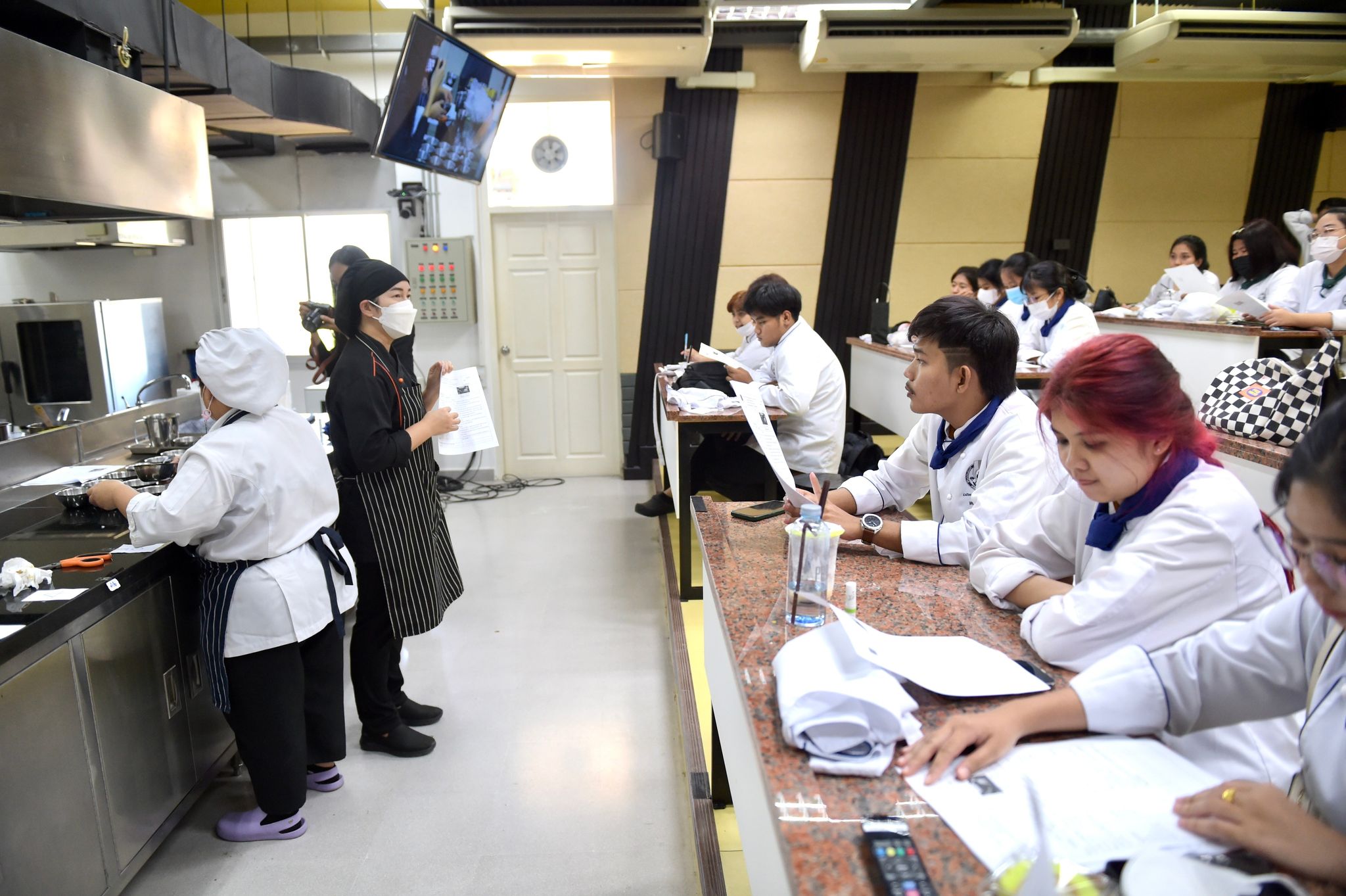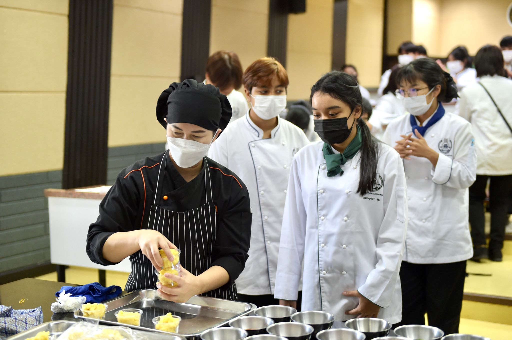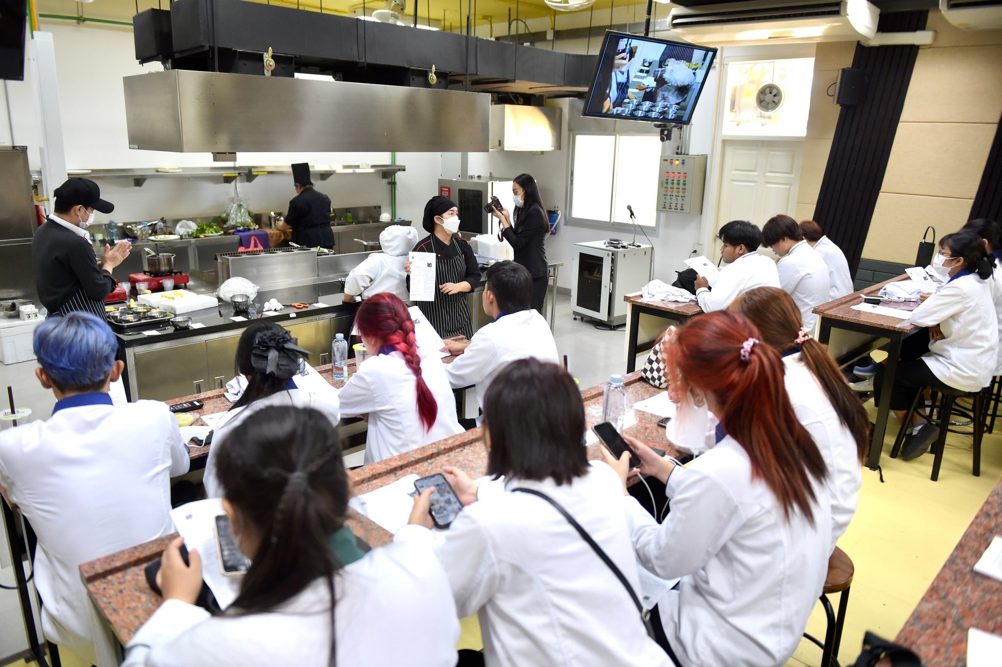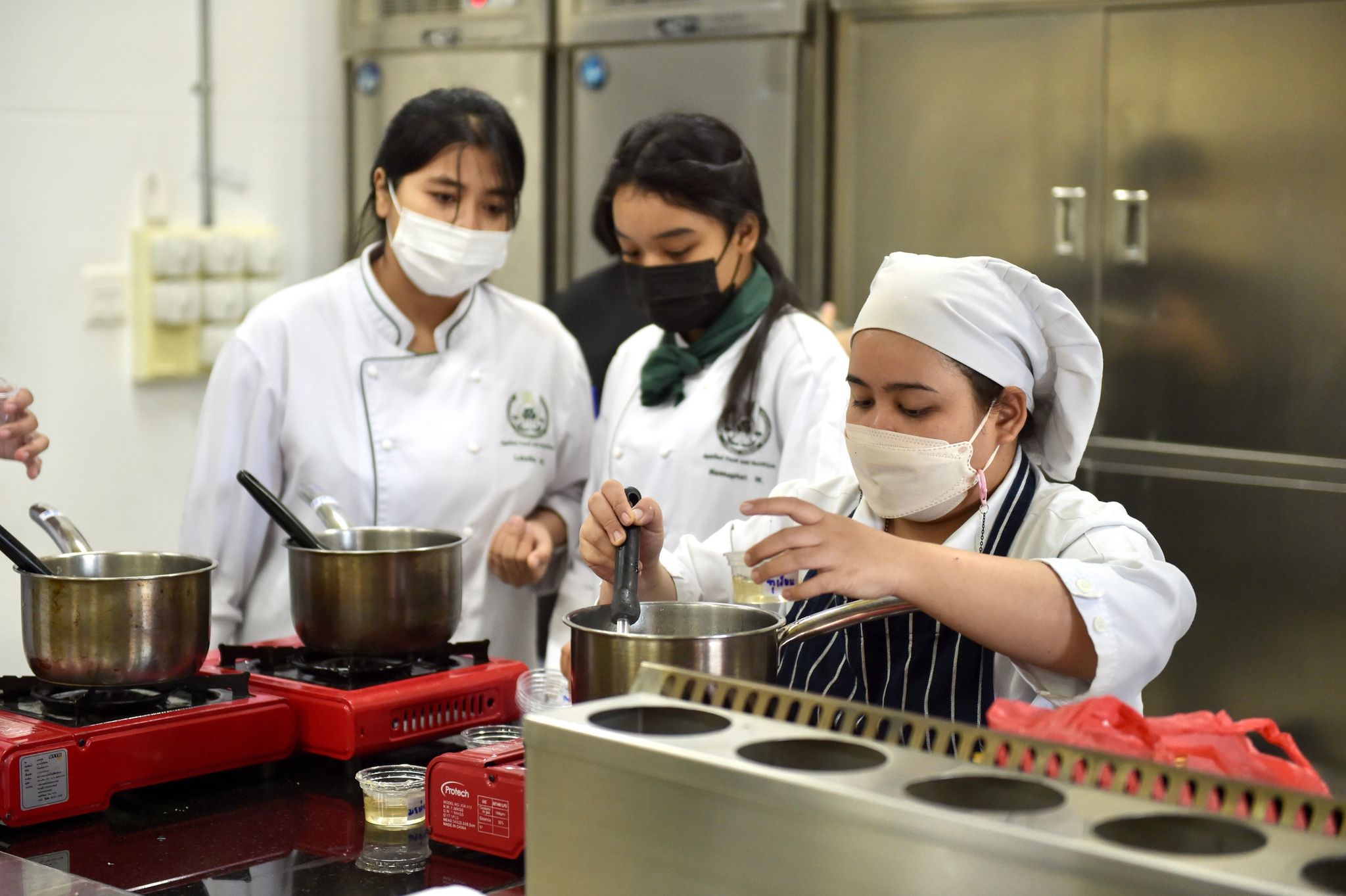 ลงนามความร่วมมือด้านคหกรรมศาสตร์ 12 พฤษภาคม 202316 มิถุนายน 2023Thitiporn Karaketข่าวสื่อสารองค์กร จำนวนผู้ชม : 65 คณะวิทยาศาสตร์และเทคโนโลยี ลงนามความร่วมมือกับโรงเรียนการเรือน มหาวิทยาลัยสวนดุสิต ในการพัฒนาการเรียนการสอน การบริการวิชาการและการวิจัยที่เกี่ยวข้องกับคหกรรมศาสตร์ วันที่ 12 พฤษภาคม 2566 ณ ห้องประชุมชั้น 5 โรงเรียนการอาหารนานาชาติเพชรบุรี มหาวิทยาลัยราชภัฏเพชรบุรี ผู้ช่วยศาสตราจารย์ ดร.เสนาะ กลิ่นงาม อธิการบดีมหาวิทยาลัยราชภัฏเพชรบุรี เป็นประธานในพิธีลงนามบันทึกข้อตกลงความร่วมมือทางวิชาการกับโรงเรียนการเรือน มหาวิทยาลัยสวนดุสิต โดยมีผู้ช่วยศาสตราจารย์ณรงค์ ไกรเนตร์ คณบดีคณะวิทยาศาสตร์และเทคโนโลยี มหาวิทยาลัยราชภัฏเพชรบุรี ร่วมลงนามบันทึกข้อตกลงความร่วมมือกับว่าที่ร้อยตรี ดร.ธนพัฒน์ แสงรุ่งเรือง คณบดีโรงเรียนการเรือน มหาวิทยาลัยสวนดุสิต การลงนามบันทึกข้อตกลงความร่วมมือทางวิชาการในครั้งนี้ เพื่อพัฒนาการเรียนการสอน การบริการวิชาการและการวิจัยที่เกี่ยวข้องกับคหกรรมศาสตร์ ร่วมกันผลักดันให้เกิดการขยายตัวของการเรียนการสอนและการวิจัยเกี่ยวกับคหกรรมศาสตร์ที่มีคุณภาพสูง ร่วมกันสนับสนุนให้มีการแลกเปลี่ยนบุคลากร นิสิต นักศึกษา และองค์ความรู้เพื่อพัฒนาหลักสูตรและการวิจัยด้านคหกรรมศาสตร์ โดยทั้งสองสถาบันจะร่วมมือกันในการพัฒนาการเรียนการสอน การแลกเปลี่ยนอาจารย์ การสร้างหลักสูตร การสร้างห้องปฏิบัติการเพื่อการเรียนรู้ รวมถึงการบูรณาการความรู้ การวิจัยและบริการวิชาการ การตีพิมพ์ผลงานทางวิชาการและการจัดประชุมทางวิชาการทั้งในระดับชาติและระดับนานาชาติ การพัฒนานิสิต นักศึกษา ผ่านการจัดโครงการและกิจกรรม สนับสนุนการสร้างความเข้มแข็งด้านการเรียนการสอนและการวิจัยตามสาขาที่เชี่ยวชาญผ่านการแลกเปลี่ยนบุคลากร คณาจารย์และนักวิจัย หรือกิจกรรมอื่น ๆ ที่เกี่ยวข้องโอกาสนี้ บุคลากรจากโรงเรียนการเรือน มหาวิทยาลัยสวนดุสิต ได้อบรมและฝึกปฏิบัติการทำอาหารคาวและอาหารหวานให้กับนักศึกษาสาขาวิชาอาหารและโภชนาการประยุกต์และสาขาวิชาเทคโนโลยีและศิลปะการประกอบอาหาร#กลุ่มงานสื่อสารองค์กร มหาวิทยาลัยราชภัฏเพชรบุรี Facebook iconFacebookTwitter iconTwitterLINE iconLine