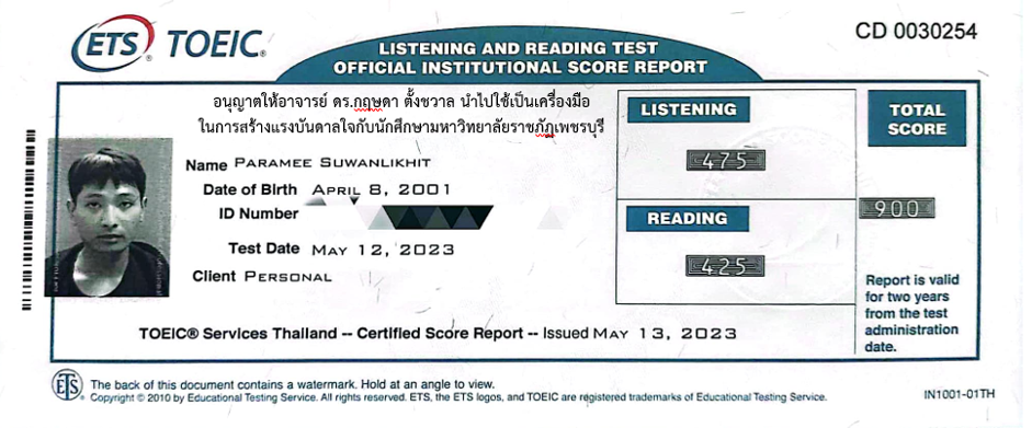 นายปรมี สุวรรณลิขิต นักศึกษาชั้นปีที่ 4 สาขาวิชาอุตสาหกรรมการท่องเที่ยวและบริการระหว่างประเทศ (สองภาษา) คณะมนุษยศาสตร์และสังคมศาสตร์ เป็นผู้สามารถทำคะแนนสอบภาษาอังกฤษมาตรฐาน Test of English for International Communication (TOEIC) ประจำเดือนพฤษภาคม 2566 โดยมีคะแนนรวม 900/990 (Listening 475 คะแนน และ Reading 425 คะแนน โดยเทียบตามมาตรฐานการวัดภาษาอังกฤษ Common European Framework of Reference for Languages (CEFR) ในระดับ C1 (Advanced) และเป็นการเข้าทดสอบครั้งแรก