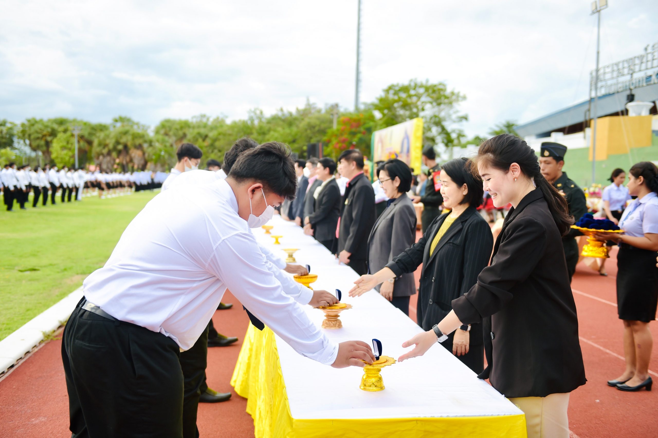 พิธีอัญเชิญตราพระราชลัญจกรและมอบเข็มตรามหาวิทยาลัย 30 มิถุนายน 202330 มิถุนายน 2023Thitiporn Karaketข่าวสื่อสารองค์กร จำนวนผู้ชม : 579 มหาวิทยาลัยราชภัฏเพชรบุรี จัดพิธีอัญเชิญตราพระราชลัญจกรและพิธีมอบเข็มตรามหาวิทยาลัยราชภัฏเพชรบุรี ประจำปีการศึกษา 2566 เมื่อช่วงเย็นวันที่ 29 มิถุนายน 2566 มหาวิทยาลัยราชภัฏเพชรบุรีพิธีอัญเชิญตราพระราชลัญจกรและพิธีมอบเข็มตรามหาวิทยาลัยราชภัฏเพชรบุรี ประจำปีการศึกษา 2566 ให้แก่นักศึกษาใหม่กว่า 1,500 คน สร้างความรักความภาคภูมิใจและสำนึกในพระมหากรุณาธิคุณที่พระบาทสมเด็จพระบรมชนกาธิเบศร มหาภูมิพลอดุลยเดชมหาราช บรมนาถบพิตร ทรงพระกรุณาโปรดเกล้าฯ พระราชทานตราประจำพระองค์แด่มหาวิทยาลัยราชภัฏทั่วประเทศ เพื่อให้นักศึกษาได้เห็นคุณค่าในตราพระราชลัญจกรและปฏิบัติตัวให้สมกับเป็น “คนของพระราชา” ณ จุลานนท์กีฬาสถาน มหาวิทยาลัยราชภัฏเพชรบุรี ผศ.ดร.เสนาะ กลิ่นงาม อธิการบดีมหาวิทยาลัยราชภัฏเพชรบุรี กล่าวว่า “ตราสัญลักษณ์ประจำมหาวิทยาลัยราชภัฏเพชรบุรี เป็นตราพระราชลัญจกรประจำพระองค์ พระบาทสมเด็จพระบรมชนกาธิเบศร มหาภูมิพลอดุลยเดชมหาราช บรมนาถบพิตร มีลักษณะเป็นรูปกลมรีและมีรูปพระที่นั่งอัฐทิศ ประกอบด้วยวงจักร กลางวงจักรมีอักขระเป็นอุ รอบวงจักรมีรัศมีเปล่งออกโดยรอบ เหนือจักรเป็นรูปเศวตฉัตร 7 ชั้น ตั้งอยู่บนพระที่นั่งอัฐทิศ แปลความหมายว่า ทรงมีพระบรมเดชานุภาพในแผ่นดิน โดยการจัดตั้งมหาวิทยาลัยราชภัฏเป็นการจัดตั้งเพื่อให้เป็นสถาบันอุดมศึกษาเพื่อการพัฒนาท้องถิ่นทำหน้าที่ในฐานะคนของพระราชา โดยพระราชาทรงราชทานนามและตราประจำพระองค์ให้เป็นสัญลักษณ์ ขณะที่ความสำคัญในการจัดพิธีอัญเชิญตราพระราชลัญจกรและพิธีมอบเข็มตรามหาวิทยาลัยราชภัฏเพชรบุรี จัดขึ้นเพื่อให้นักศึกษาใหม่ทราบถึงความเป็นมาของมหาวิทยาลัยราชภัฏเพชรบุรี ร่วมสํานึกในพระมหากรุณาธิคุณของพระบาทสมเด็จพระบรมชนกาธิเบศร มหาภูมิพลอดุลยเดชมหาราช บรมนาถบพิตร ที่ได้พระราชทานตราพระราชลัญจกร เป็นการสร้างจิตสํานึกความภาคภูมิใจ และความรักในมหาวิทยาลัย สร้างความตระหนักถึงการเป็นคนของพระราชา#กลุ่มงานสื่อสารองค์กร มหาวิทยาลัยราชภัฏเพชรบุรี Facebook iconFacebookTwitter iconTwitterLINE iconLine