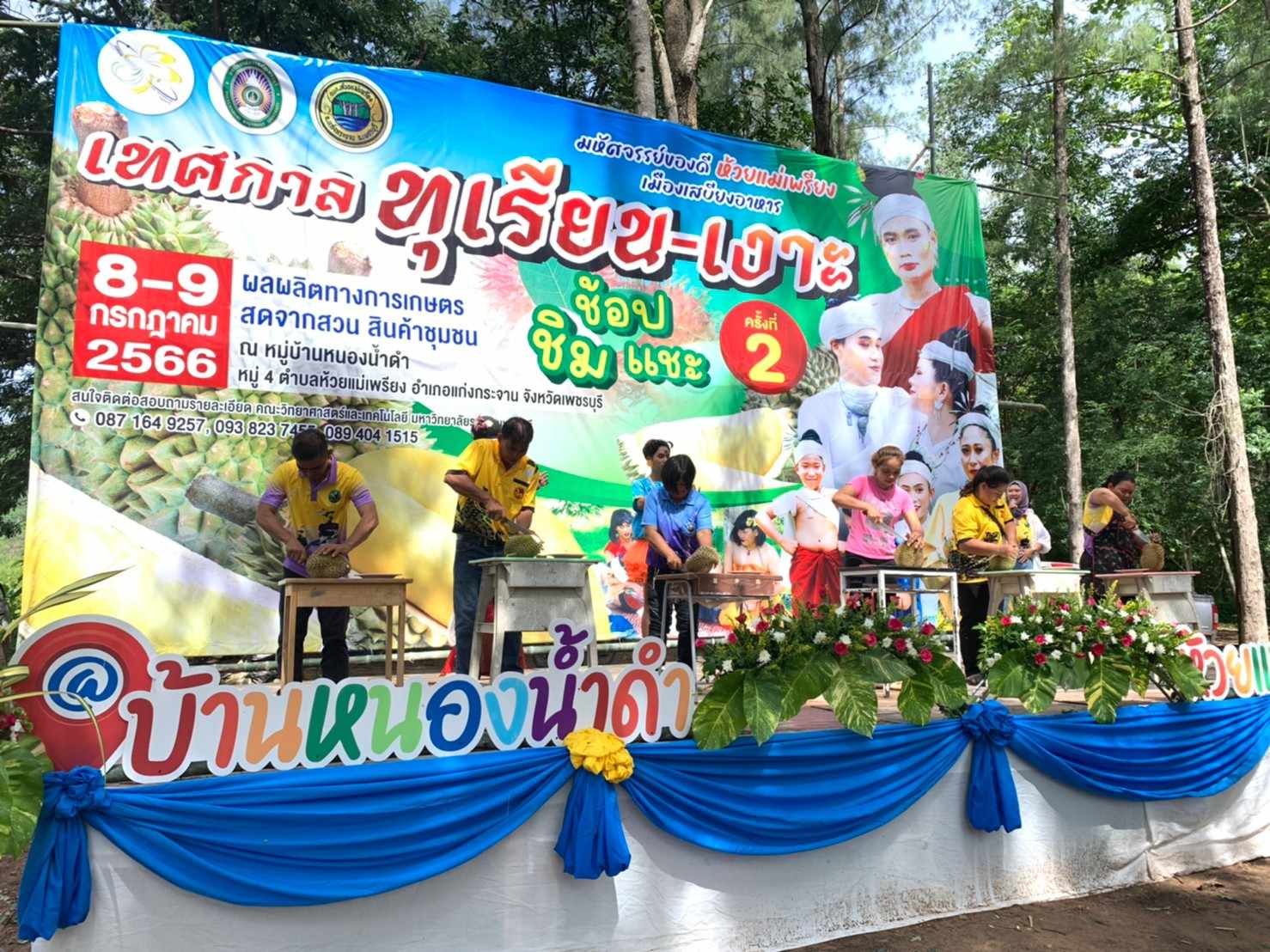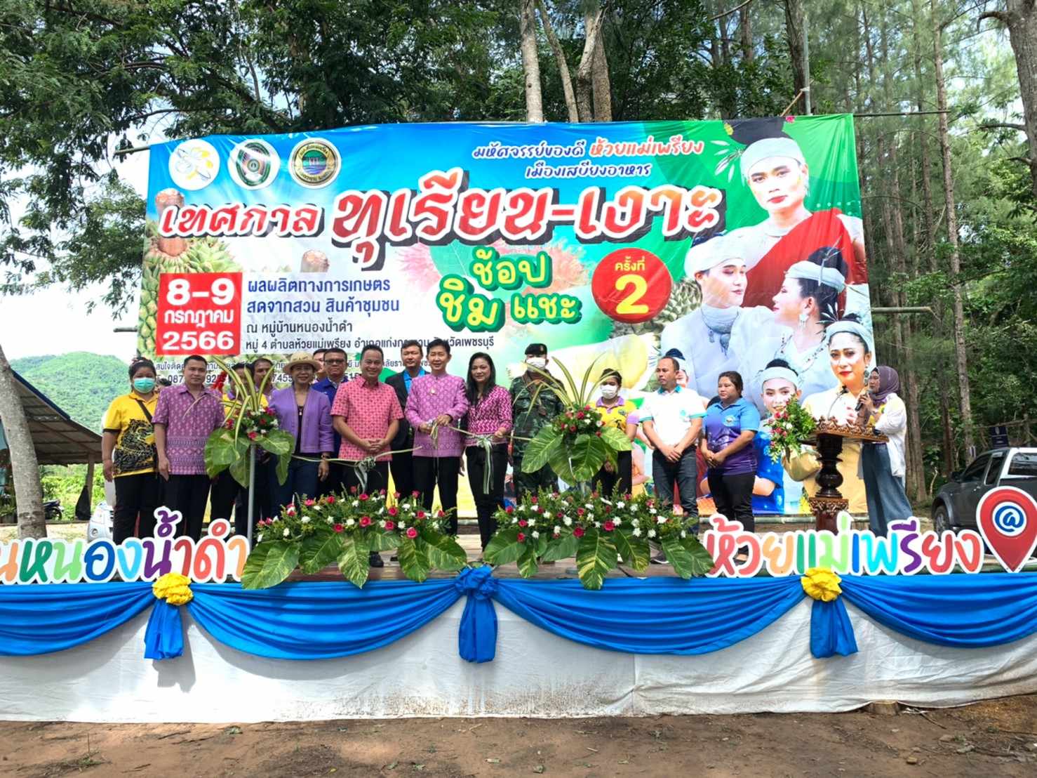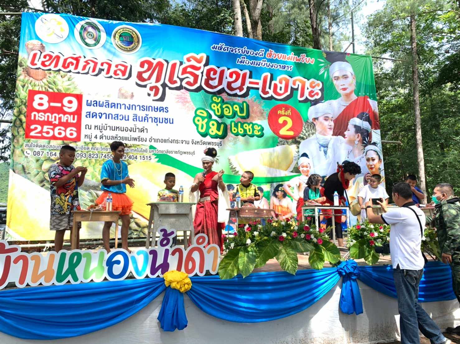 เทศกาลทุเรียน เงาะ มหัศจรรย์ของดีห้วยแม่เพรียง 9 กรกฎาคม 20239 กรกฎาคม 2023Thitiporn Karaketข่าวสื่อสารองค์กร จำนวนผู้ชม : 67 ปิดฉากลงไปอย่างสวยงามกับเทศกาลทุเรียน เงาะ มหัศจรรย์ของดีห้วยแม่เพรียง เมืองเสบียงอาหาร เปิดพื้นที่บ้านหนองน้ำดำ กระตุ้นเศรษฐกิจ เทศกาลทุเรียน เงาะ มหัศจรรย์ของดีห้วยแม่เพรียง เมืองเสบียงอาหาร ในครั้งนี้จัดขึ้นเป็นครั้งที่ 2 ระหว่างวันที่ 8 – 9 กรกฎาคม 2566 ณ ชุมชนบ้านหนองน้ำดำ หมู่ 4 ต.ห้วยแม่เพรียง อำเภอแก่งกระจาน จังหวัดเพชรบุรี โดยได้รับเกียรติจากนายภคพัส ส่งวัฒนายุทธ ปลัดจังหวัดเพชรบุรี เป็นประธานในการเปิดงาน พร้อมด้วยจ.อ.อภิชาติ แก้วโกศล นายกสมาคมศิษย์เก่าราชภัฏเพชรบุรี คณาจารย์ บุคลากรและประชาชนในพื้นที่ เข้าร่วม ผู้ช่วยศาสตราจารย์ณรงค์ ไกรเนตร์ คณบดีคณะวิทยาศาสตร์และเทคโนโลยี กล่าวว่า “การจัดเทศกาลทุเรียน – เงาะ มหัศจรรย์ของดีห้วยแม่เพรียง เมืองเสบียงอาหาร ในครั้งนี้ จัดขึ้นเพื่อสร้างความสามัคคีให้กับคนในชุมชน เป็นการประชาสัมพันธ์พื้นที่ให้นักท่องเที่ยวได้รู้จักมากขึ้น และเมื่อมีนักท่องเที่ยวเข้ามาในพื้นที่ก็จะให้คนในชุมชนมีรายได้เพิ่มขึ้น โดยมีการนำทุเรียน เงาะจากเกษตรกรในพื้นที่มาจัดจำหน่าย” นอกจากนี้ภายในงานยังมีการแสดงของนักเรียนบ้านด่านโง การแข่งขันปอกและกินทุเรียน การแข่งขันกินเงาะ นอกจากนี้ยังมีการจำหน่ายผลิตภัณฑ์ชุมชนและสินค้าต่าง ๆ ที่น่าสนใจอีกมากมาย# กลุ่มงานสื่อสารองค์กร มหาวิทยาลัยราชภัฏเพชรบุรี Facebook iconFacebookTwitter iconTwitterLINE iconLine