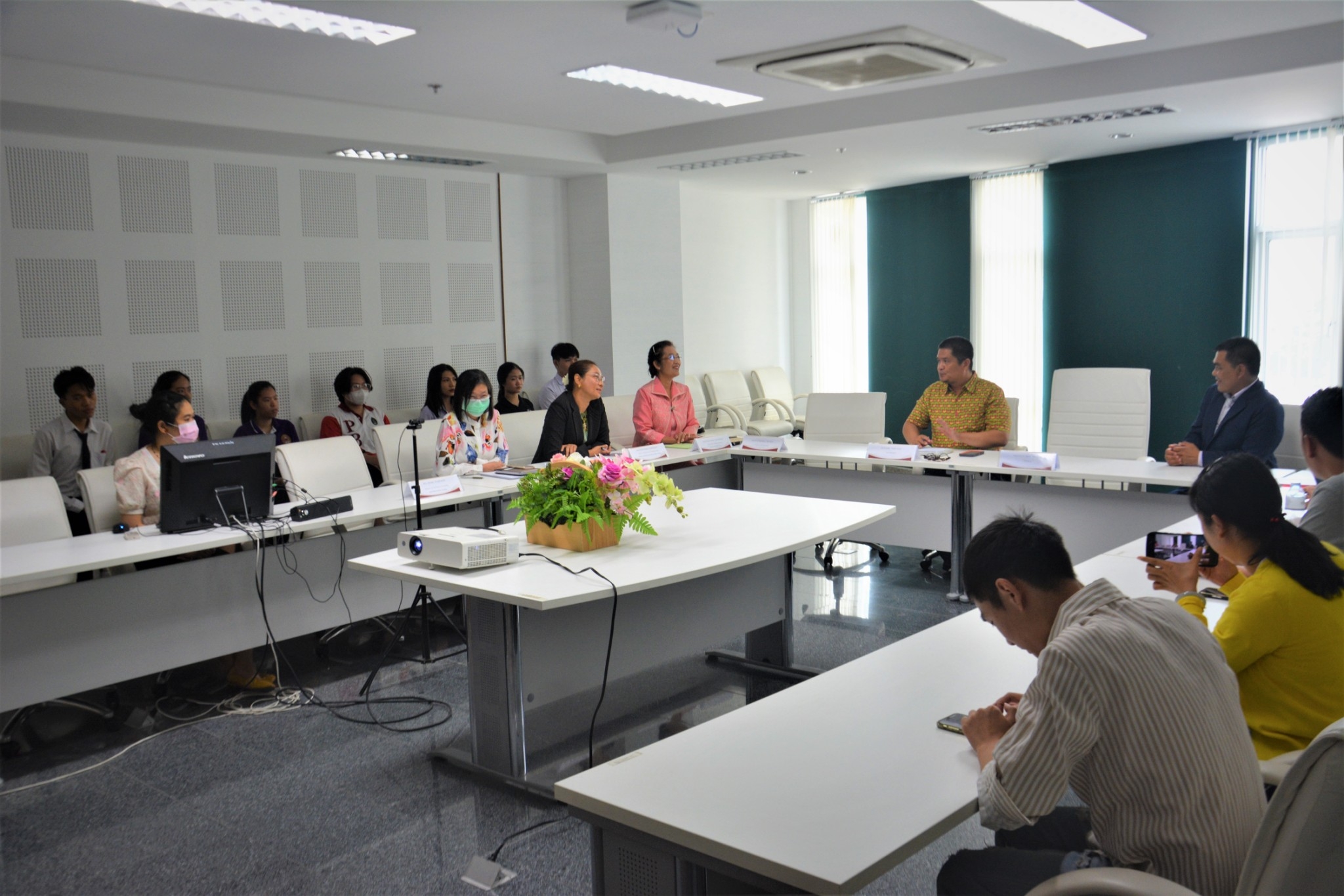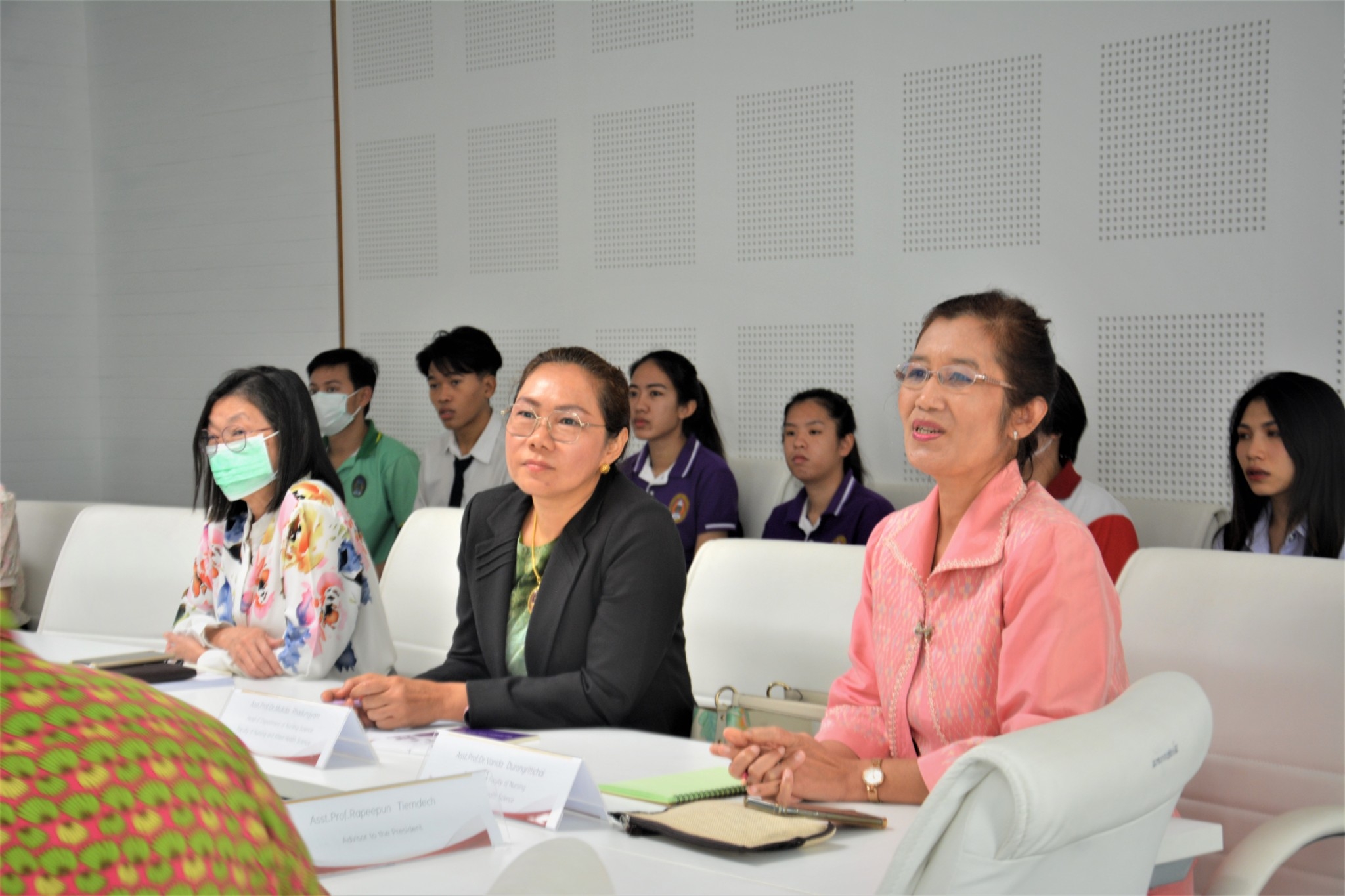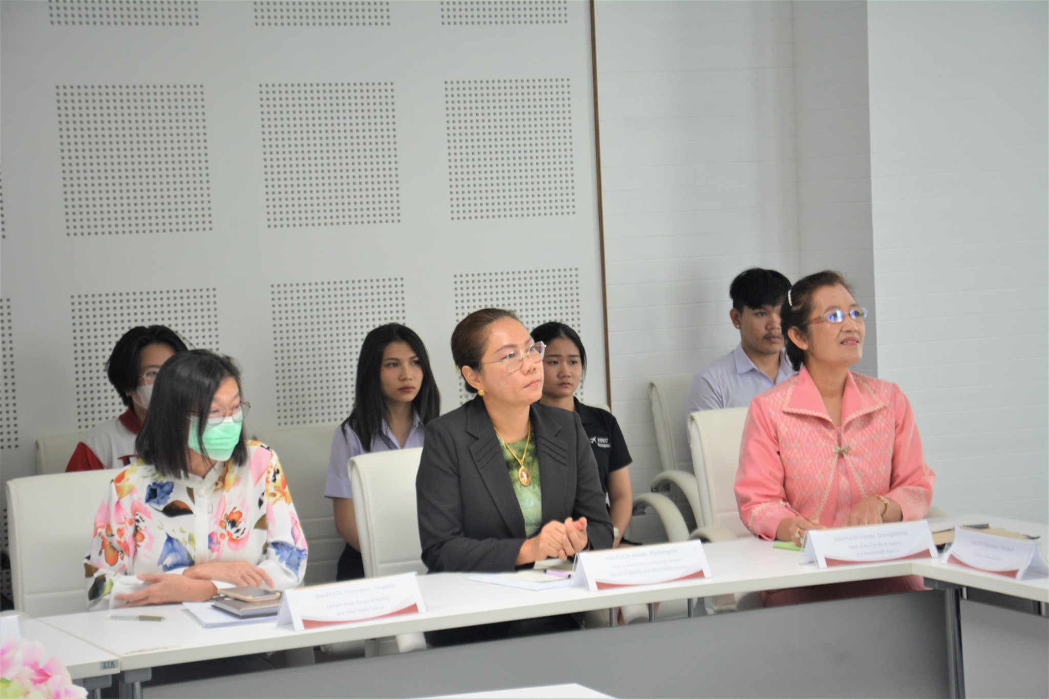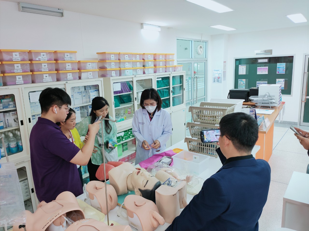 วันที่ 18 กรกฎาคม 2566 ผู้ช่วยศาสตราจารย์ ดร.เสนาะ กลิ่นงาม อธิการบดีมหาวิทยาลัยราชภัฏเพชรบุรี พร้อมด้วยผู้ช่วยศาสตราจารย์ ดร.วนิดา ดุรงค์ฤทธิชัย คณบดีคณะพยาบาลศาสตร์และวิทยาการสุขภาพ และบุคลากรคณะพยาบาลศาสตร์และวิทยาการสุขภาพ ให้การต้อนรับคณะดูงานจากประเทศจีน นำโดย Asia Pacific Education Alliance Research Center Miss .Wanghui, UNan Study ABROAD EDUCATION RESEARCH INSTITUTE Mr.Ding Xiaofu and Mr.Guo Hong, Kun Ming WeiShengZhiYeXueYuan Mr. Yan Haiyan and Miss. Ye Xing ในโอกาสเดินทางมาเยี่ยมชมความพร้อมในการจัดการเรียนการสอนของคะพยาบาลศาสตร์และวิทยาการสุขภาพ และเข้าชมศูนย์ SIRCOP (Simulation and Innovation Resource Center of Phetchaburi) เพื่อเตรียมความพร้อมในการส่งนักศึกษาจีนเข้าศึกษาในหลักสูตรนานาชาติ คณะพยาบาลศาสตร์และวิทยาการสุขภาพ