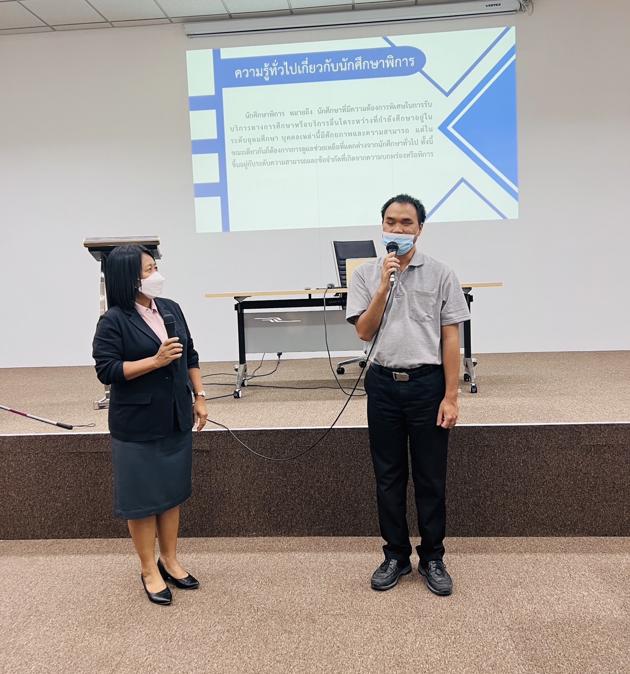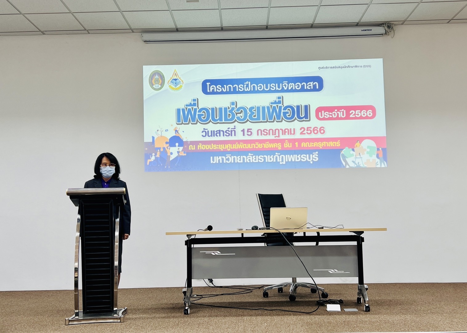 โครงการฝึกอบรมจิตอาสาเพื่อนช่วยเพื่อน 19 กรกฎาคม 202319 กรกฎาคม 2023Thitiporn Karaketข่าวสื่อสารองค์กร จำนวนผู้ชม : 46 โครงการฝึกอบรมจิตอาสาเพื่อนช่วยเพื่อน (ศูนย์DSS) รองศาสตราจารย์ ดร.กาญจนา บุญส่ง คณบดีคณะครุศาสตร์ มหาวิทยาลัยราชภัฎเพชรบุรี เป็นประธานเปิดโครงการฝึกอบรมจิตอาสาเพื่อนช่วยเพื่อน ประจำปี 2566 ที่ศูนย์บริการสนับสนุนนักศึกษาพิการ กรก(DSS) คณะครุศาสตร์ ได้จัดขึ้นเมื่อวันที่ 15 กรกฎาคม ที่ผ่านมา เพื่อพัฒนานักศึกษาอาสาสมัครให้มีความรู้ ความเข้าใจ สร้างเครือข่ายอาสาสมัครในการช่วยเหลือนักศึกษาพิการในการดำเนินชีวิตประจำวันและส่งเสริมสนับสนุนการบำเพ็ญประโยชน์หรือการใช้เวลาว่างให้เป็นประโยชน์ของนักศึกษา#กลุ่มงานสื่อสารองค์กรมหาวิทยาลัยราชภัฏเพชรบุรี Facebook iconFacebookTwitter iconTwitterLINE iconLine