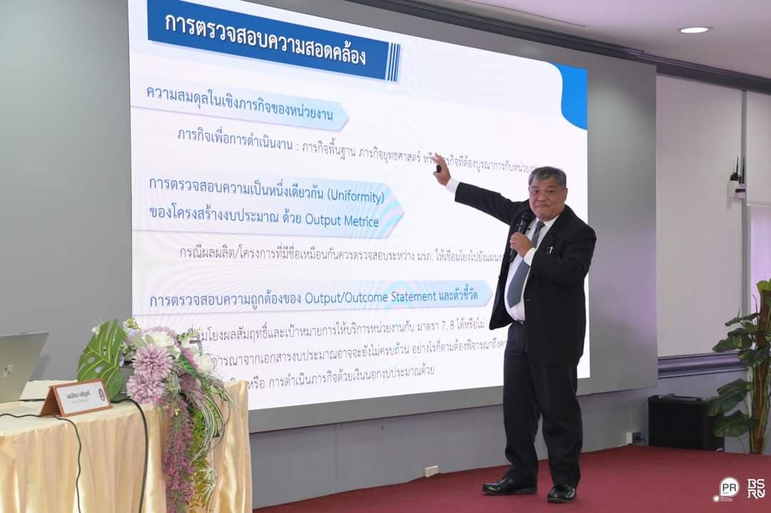 การประชุมในครั้งนี้ได้รับเกียรติจากนางสาวมัทนา เจริญศรี ที่ปรึกษาสำนักงบประมาณ และคณะ บรรยายในหัวข้อ “การทบทวน วางแผนและปรับปรุง เป้าหมาย ตัวชี้วัดผลผลิต/โครงการ ในการจัดทำงบประมาณรายจ่ายประจำปี” ประกอบด้วย ระบบงบประมาณแบบมุ่งเน้นผลงาน การจัดทำงบประมาณฐานศูนย์ กระบวนการงบประมาณ Spending Review, Value for Money (VFM) ผลผลิต/ผลลัพธ์ ลักษณะของตัวชี้วัดความสำเร็จที่ดีและการกำหนดค่าเป้าหมาย