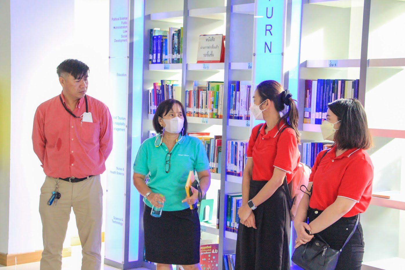 อาจารย์ปิยวรรณ คุสินธุ์ ผู้อำนวยการสำนักวิทยบริการและเทคโนโลยีสารสนเทศ และบุคลากรสำนักวิทยบริการและเทคโนโลยีสารสนเทศ ให้การต้อนรับคณะศึกษาดูงานจากสำนักคอมพิวเตอร์และเทคโนโลยีสารสนเทศ มหาวิทยาลัยเทคโนโลยีพระจอมเกล้าพระนครเหนือ โอกาสเดินทางมาแลกเปลี่ยนเรียนรู้การดำเนินงานสำนักงานสีเขียว เมื่อวันก่อนนี้