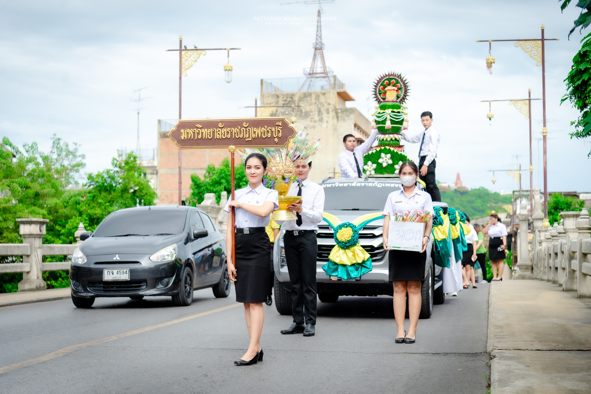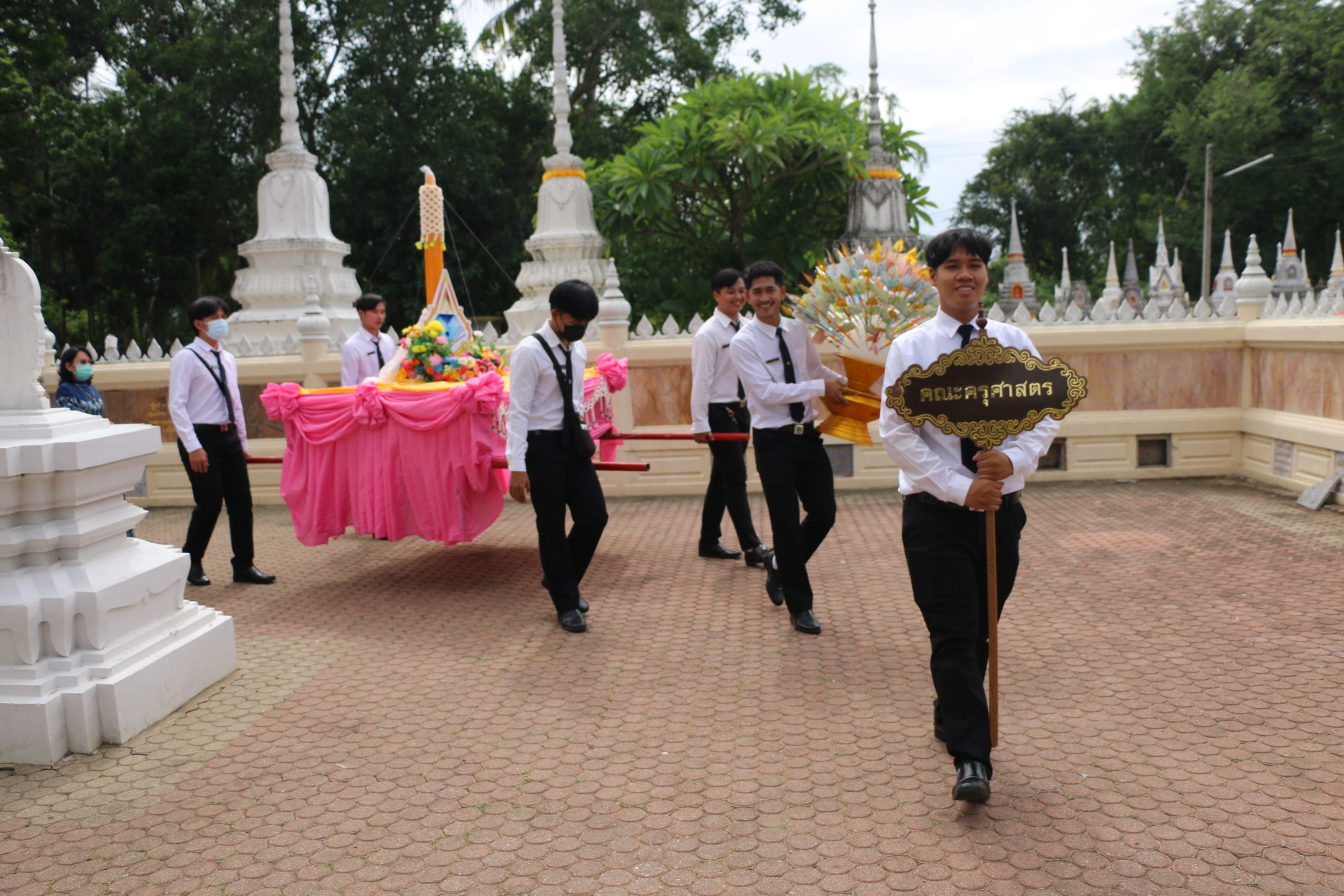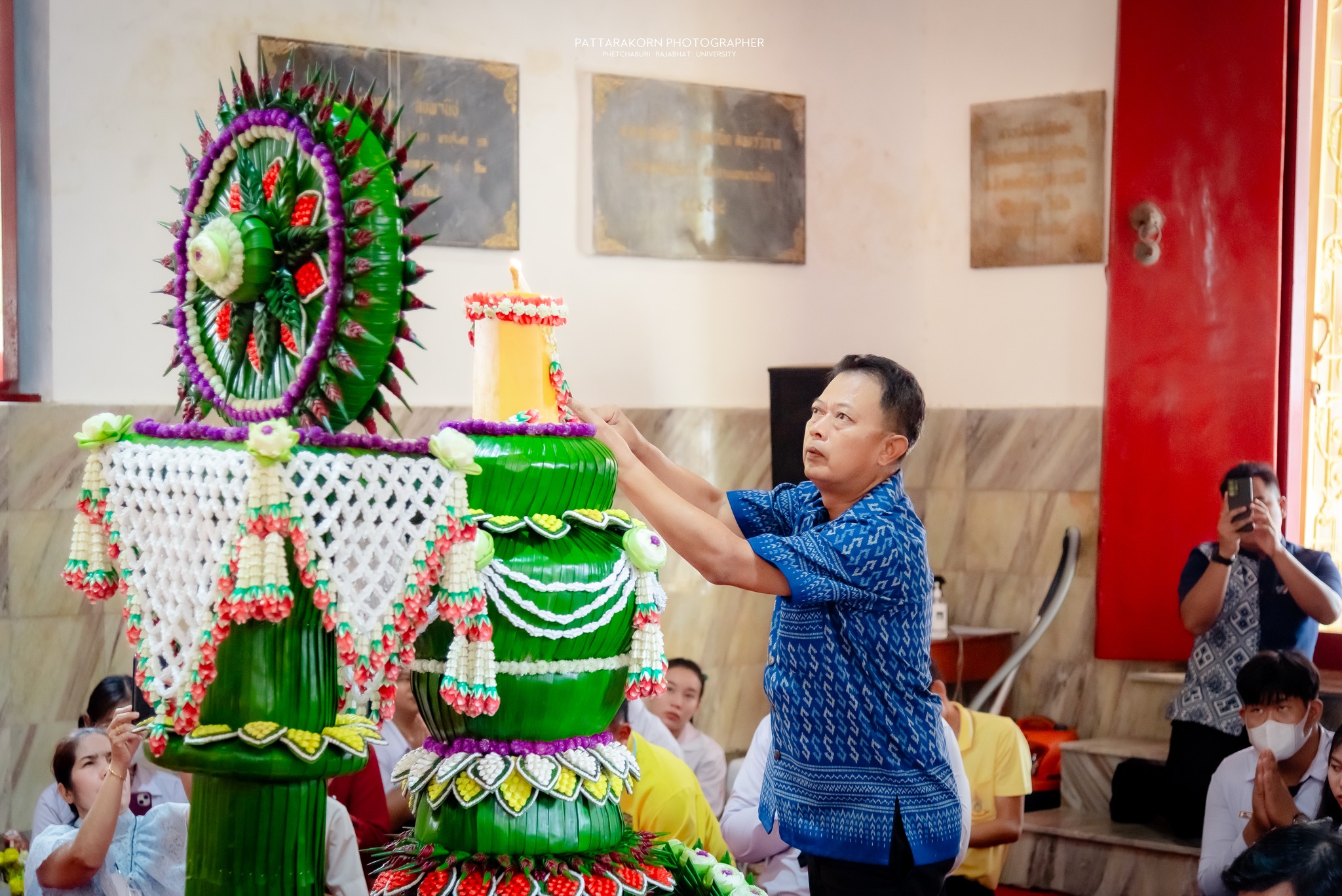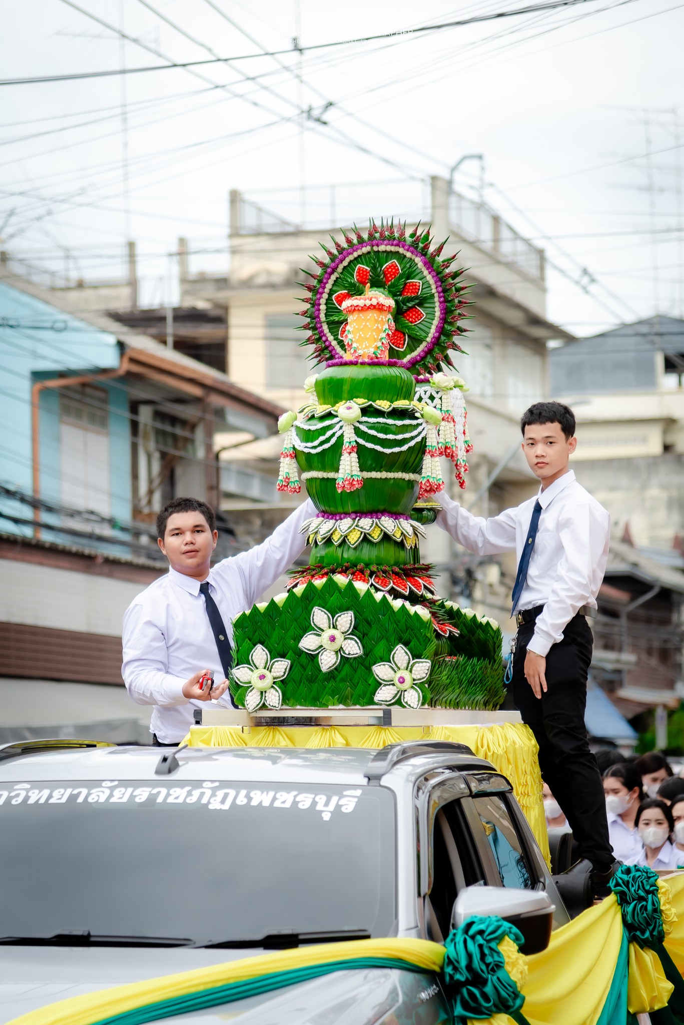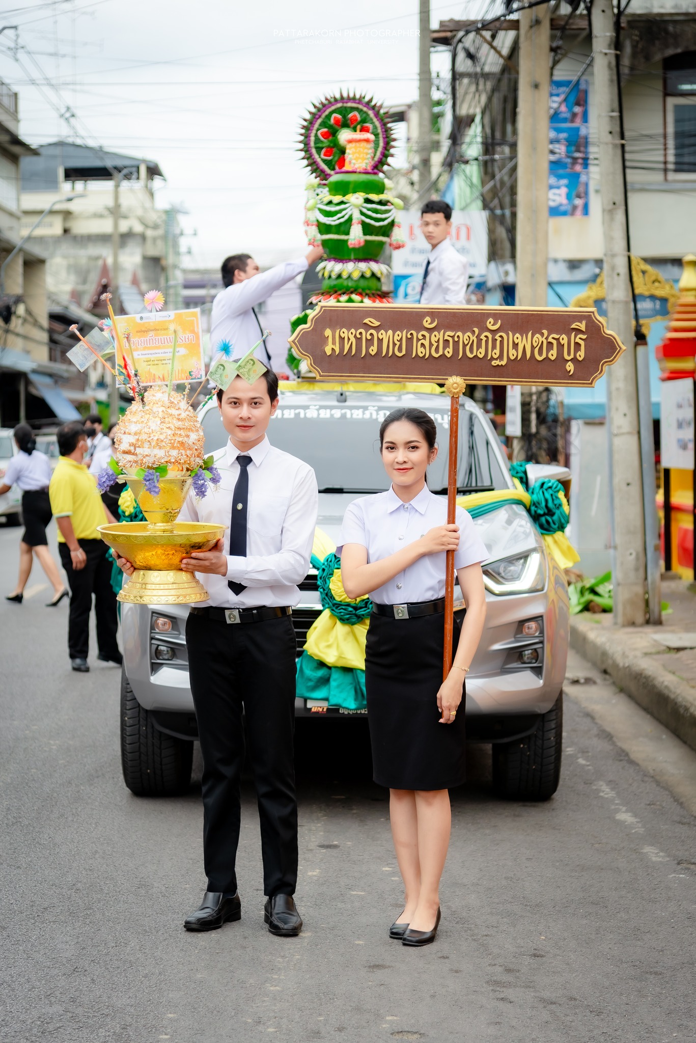 ประเพณีถวายเทียนพรรษา ปี 2566 26 กรกฎาคม 202327 กรกฎาคม 2023Thitiporn Karaketข่าวสื่อสารองค์กร จำนวนผู้ชม : 98 มหาวิทยาลัยราชภัฏเพชรบุรี จัดกิจกรรมสืบสานประเพณี ถวายเทียนพรรษา ปี 2566 วันที่ 26 กรกฎาคม 2566 มหาวิทยาลัยราชภัฏเพชรบุรี โดยกองพัฒนานักศึกษา จัดขบวนแห่เทียนพรรษา ประจำปี 2566 เพื่อนำไปถวายแด่พระภิกษุสงฆ์ ณ วัดมหาธาตุวรวิหาร โดยมีผู้ช่วยศาสตราจารย์วิเชียร เข็มเงิน รองอธิการบดีมหาวิทยาลัยราชภัฏเพชรบุรี เป็นประธานในพิธี พร้อมด้วยคณาจารย์ บุคลากร และนักศึกษา โดยมีขบวนแห่เทียนพรรษารอบตลาดสดเพชรบุรี ซึ่งตลอดระยะทางมีผู้มีจิตศรัทธาร่วมติดพุ่มเงินทำบุญ จากนั้นได้นำเทียนแห่รอบพระอุโบสถและสวดมนต์อาราธนาศีล ถวายเครื่องไทยธรรมแด่พระสงฆ์ จากนั้นผู้ช่วยศาสตราจารย์วิเชียร เข็มเงิน ได้เป็นผู้แทนมหาวิทยาลัย มอบพุ่มเงินทำบุญจากผู้มีจิตศรัทธา จำนวน 19,485 บาท ให้แก่ทางวัดเพื่อนำไปใช้ประโยชน์ในการทำนุบำรุงพระพุทธศาสตนาต่อไป เช่นเดียวกันกับคณะต่าง ๆ ทั้ง 8 คณะของมหาวิทยาลัยราชภัฏเพชรบุรี ที่ได้จัดกิจกรรมสืบสานประเพณี ถวายเทียนพรรษา โดยมีรายละเอียดการจัดกิจกรรม ณ วัดต่าง ๆ ดังนี้ คณะครุศาสตร์ ถวายแด่พระภิกษุสงฆ์วัดลาดโพธิ์ อำเภอเมืองเพชรบุรี จังหวัดเพชรบุรี คณะวิทยาการจัดการ ถวายแด่พระภิกษุสงฆ์วัดใหญ่สุวรรณารามวรวิหาร อำเภอเมืองเพชรบุรี จังหวัดเพชรบุรี คณะเทคโนโลยีสารสนเทศ ถวายแด่พระภิกษุสงฆ์วัดไสกระดาน อำเภอเมืองเพชรบุรี จังหวัดเพชรบุรี คณะวิทยาศาสตร์และเทคโนโลยี ถวายแด่พระภิกษุสงฆ์วัดกำแพงแลง อำเภอเมืองเพชรบุรี จังหวัดเพชรบุรี การจัดกิจกรรมในครั้งนี้จัดขึ้นเพื่อส่งเสริมให้คณาจารย์และนักศึกษาได้มีส่วนร่วมในวันสำคัญทางพระพุทธศาสนา อีกทั้งเป็นการส่งเสริมและพัฒนานักศึกษาให้มีคุณธรรมจริยธรรม อนุรักษ์และสืบสานศิลปวัฒนธรรมประเพณีของไทยให้คงอยู่ โดยมีความสอดคล้องกับนโยบายของมหาวิทยาลัยราชภัฏเพชรบุรีในด้านศิลปวัฒนธรรม คุณธรรมและจริยธรรม สืบสานการทำนุบำรุงศิลปวัฒนธรรมที่ดีของไทยให้อยู่คู่คนไทยตลอดไป #กลุ่มงานสื่อสารองค์กร มหาวิทยาลัยราชภัฏเพชรบุรี กองพัฒนานักศึกษา คณะครุศาสตร์ คณะวิทยาการจัดการ คณะเทคโนโลยีสารสนเทศ คณะวิทยาศาสตร์และเทคโนโลยี Facebook iconFacebookTwitter iconTwitterLINE iconLine