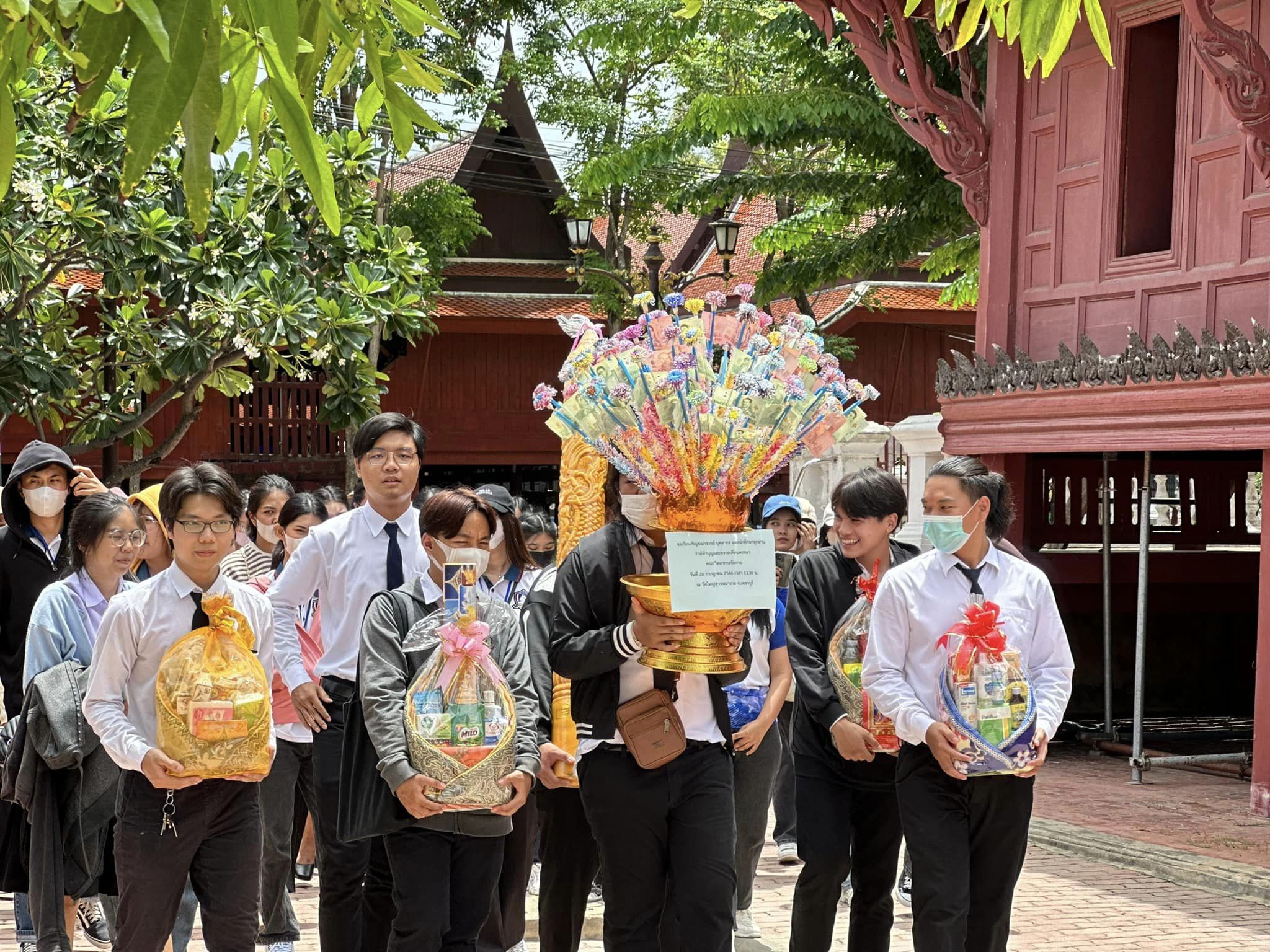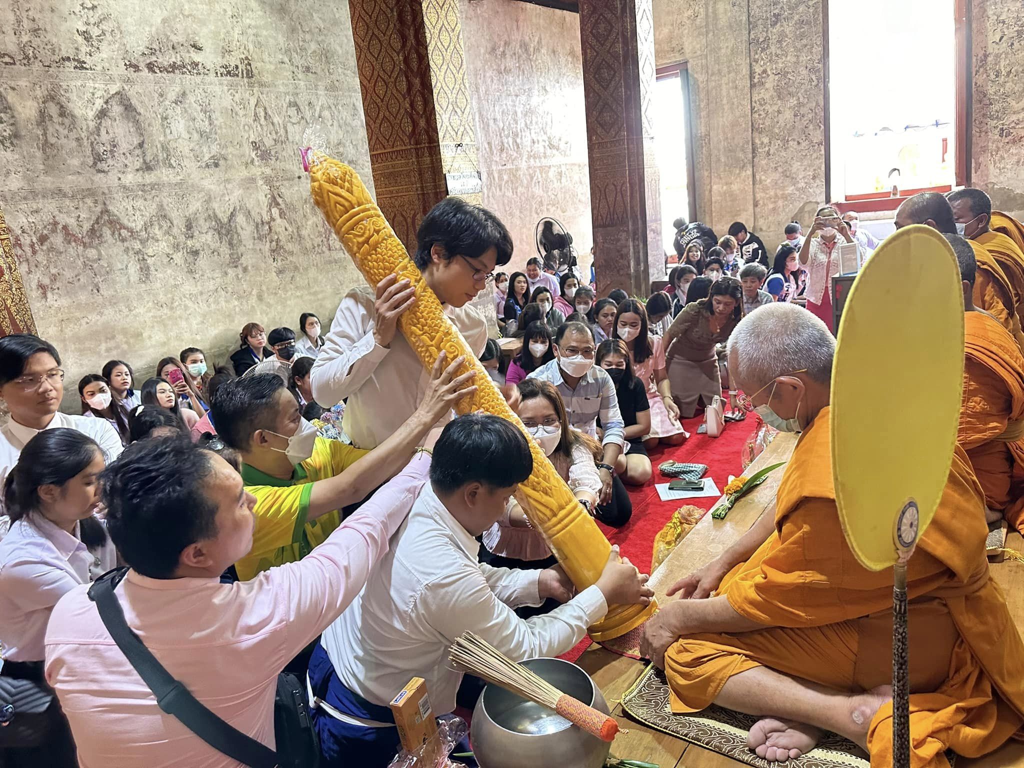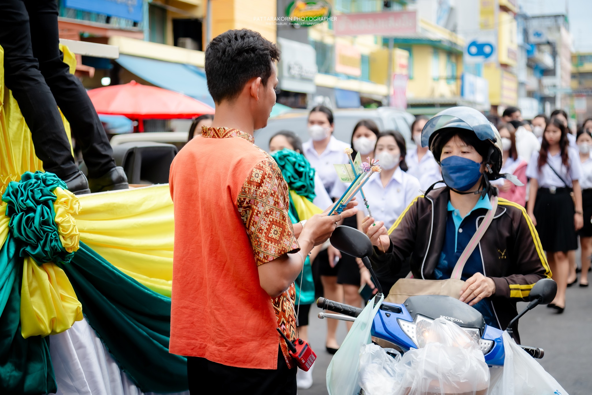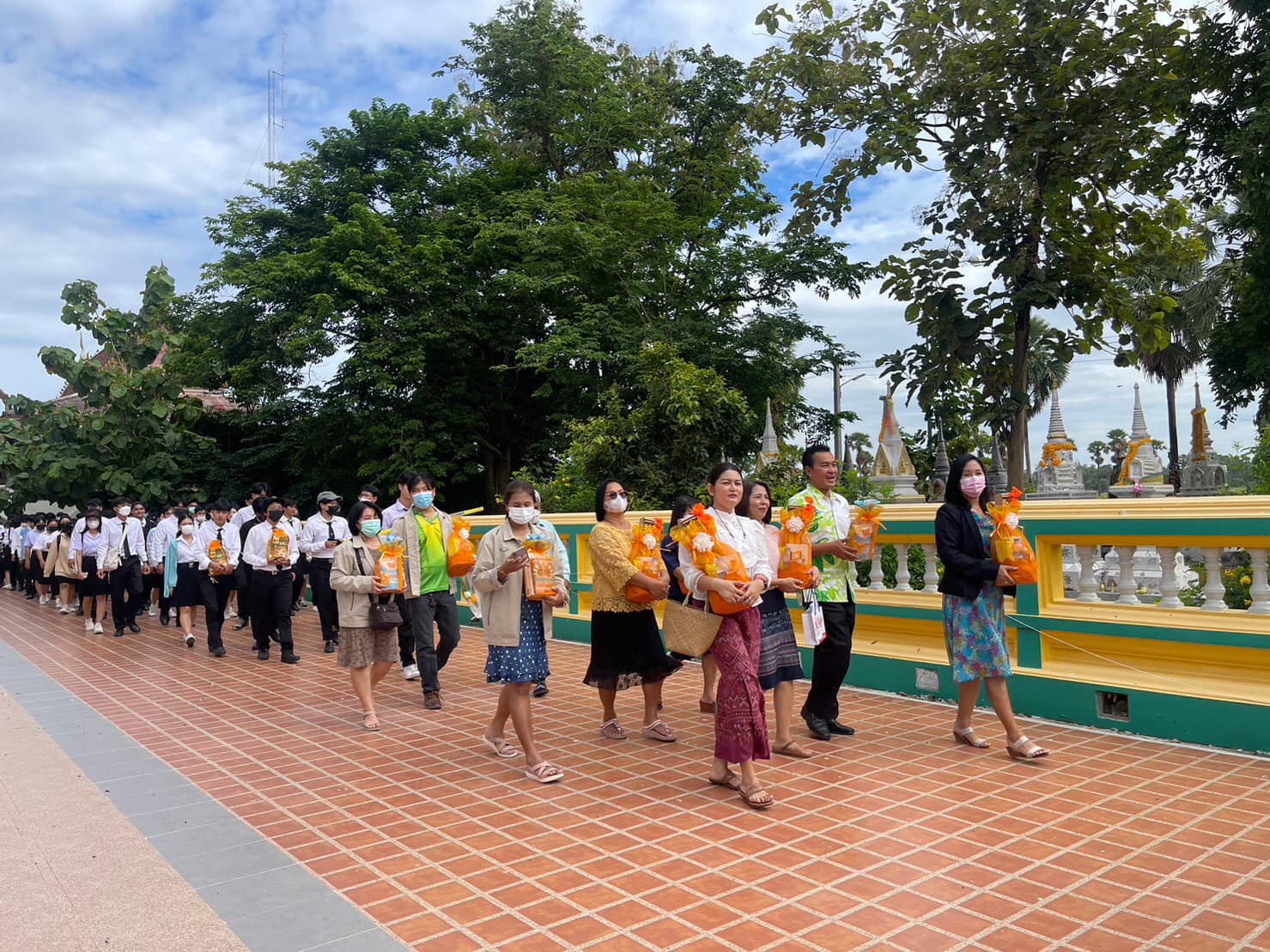 ประเพณีถวายเทียนพรรษา ปี 2566 26 กรกฎาคม 202327 กรกฎาคม 2023Thitiporn Karaketข่าวสื่อสารองค์กร จำนวนผู้ชม : 98 มหาวิทยาลัยราชภัฏเพชรบุรี จัดกิจกรรมสืบสานประเพณี ถวายเทียนพรรษา ปี 2566 วันที่ 26 กรกฎาคม 2566 มหาวิทยาลัยราชภัฏเพชรบุรี โดยกองพัฒนานักศึกษา จัดขบวนแห่เทียนพรรษา ประจำปี 2566 เพื่อนำไปถวายแด่พระภิกษุสงฆ์ ณ วัดมหาธาตุวรวิหาร โดยมีผู้ช่วยศาสตราจารย์วิเชียร เข็มเงิน รองอธิการบดีมหาวิทยาลัยราชภัฏเพชรบุรี เป็นประธานในพิธี พร้อมด้วยคณาจารย์ บุคลากร และนักศึกษา โดยมีขบวนแห่เทียนพรรษารอบตลาดสดเพชรบุรี ซึ่งตลอดระยะทางมีผู้มีจิตศรัทธาร่วมติดพุ่มเงินทำบุญ จากนั้นได้นำเทียนแห่รอบพระอุโบสถและสวดมนต์อาราธนาศีล ถวายเครื่องไทยธรรมแด่พระสงฆ์ จากนั้นผู้ช่วยศาสตราจารย์วิเชียร เข็มเงิน ได้เป็นผู้แทนมหาวิทยาลัย มอบพุ่มเงินทำบุญจากผู้มีจิตศรัทธา จำนวน 19,485 บาท ให้แก่ทางวัดเพื่อนำไปใช้ประโยชน์ในการทำนุบำรุงพระพุทธศาสตนาต่อไป เช่นเดียวกันกับคณะต่าง ๆ ทั้ง 8 คณะของมหาวิทยาลัยราชภัฏเพชรบุรี ที่ได้จัดกิจกรรมสืบสานประเพณี ถวายเทียนพรรษา โดยมีรายละเอียดการจัดกิจกรรม ณ วัดต่าง ๆ ดังนี้ คณะครุศาสตร์ ถวายแด่พระภิกษุสงฆ์วัดลาดโพธิ์ อำเภอเมืองเพชรบุรี จังหวัดเพชรบุรี คณะวิทยาการจัดการ ถวายแด่พระภิกษุสงฆ์วัดใหญ่สุวรรณารามวรวิหาร อำเภอเมืองเพชรบุรี จังหวัดเพชรบุรี คณะเทคโนโลยีสารสนเทศ ถวายแด่พระภิกษุสงฆ์วัดไสกระดาน อำเภอเมืองเพชรบุรี จังหวัดเพชรบุรี คณะวิทยาศาสตร์และเทคโนโลยี ถวายแด่พระภิกษุสงฆ์วัดกำแพงแลง อำเภอเมืองเพชรบุรี จังหวัดเพชรบุรี การจัดกิจกรรมในครั้งนี้จัดขึ้นเพื่อส่งเสริมให้คณาจารย์และนักศึกษาได้มีส่วนร่วมในวันสำคัญทางพระพุทธศาสนา อีกทั้งเป็นการส่งเสริมและพัฒนานักศึกษาให้มีคุณธรรมจริยธรรม อนุรักษ์และสืบสานศิลปวัฒนธรรมประเพณีของไทยให้คงอยู่ โดยมีความสอดคล้องกับนโยบายของมหาวิทยาลัยราชภัฏเพชรบุรีในด้านศิลปวัฒนธรรม คุณธรรมและจริยธรรม สืบสานการทำนุบำรุงศิลปวัฒนธรรมที่ดีของไทยให้อยู่คู่คนไทยตลอดไป #กลุ่มงานสื่อสารองค์กร มหาวิทยาลัยราชภัฏเพชรบุรี กองพัฒนานักศึกษา คณะครุศาสตร์ คณะวิทยาการจัดการ คณะเทคโนโลยีสารสนเทศ คณะวิทยาศาสตร์และเทคโนโลยี Facebook iconFacebookTwitter iconTwitterLINE iconLine