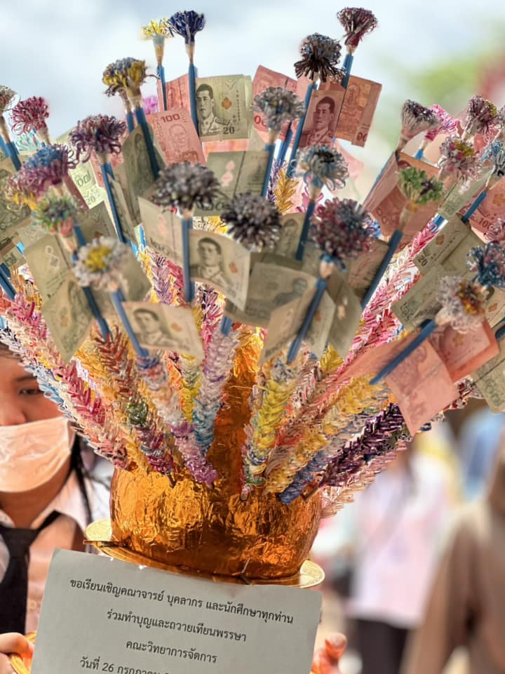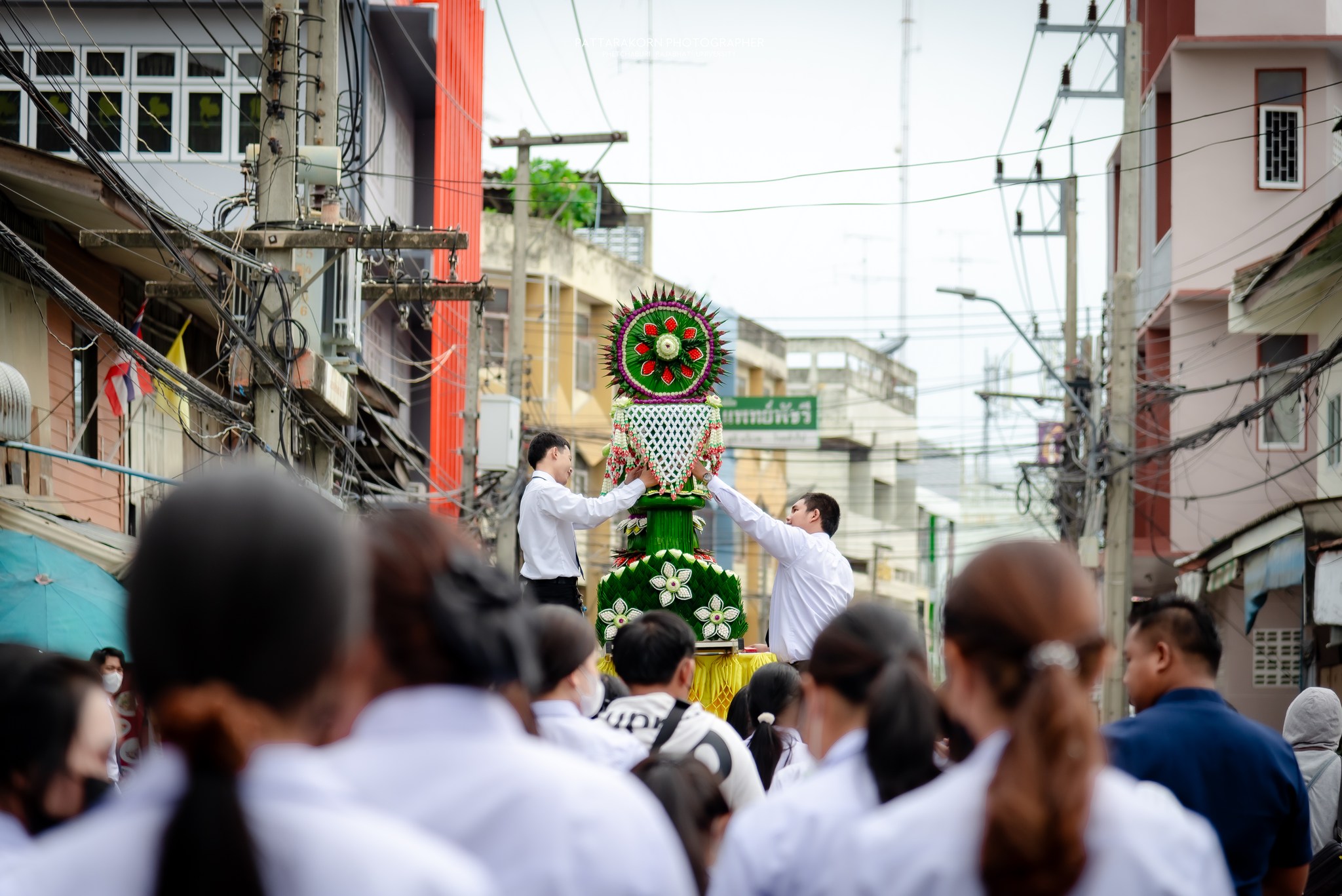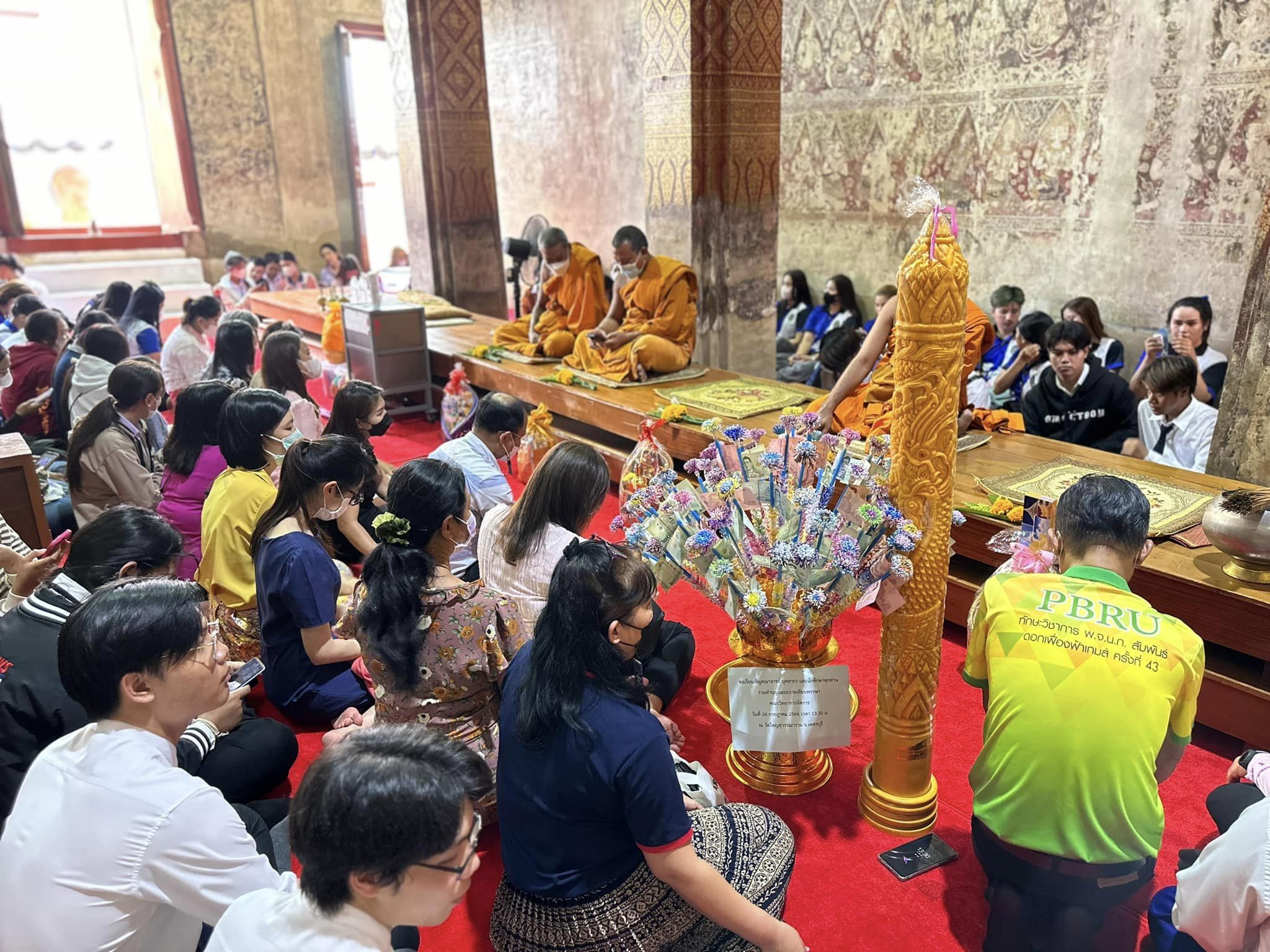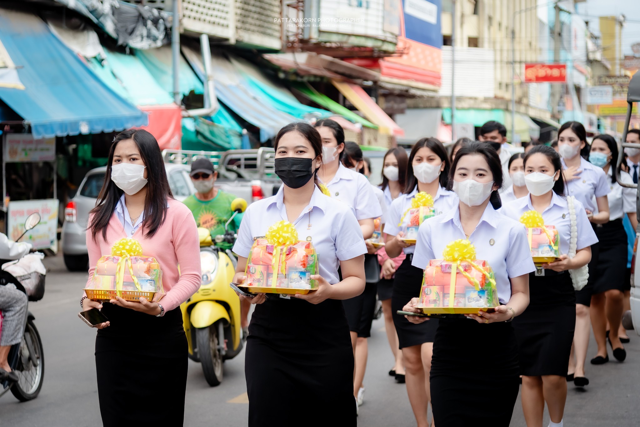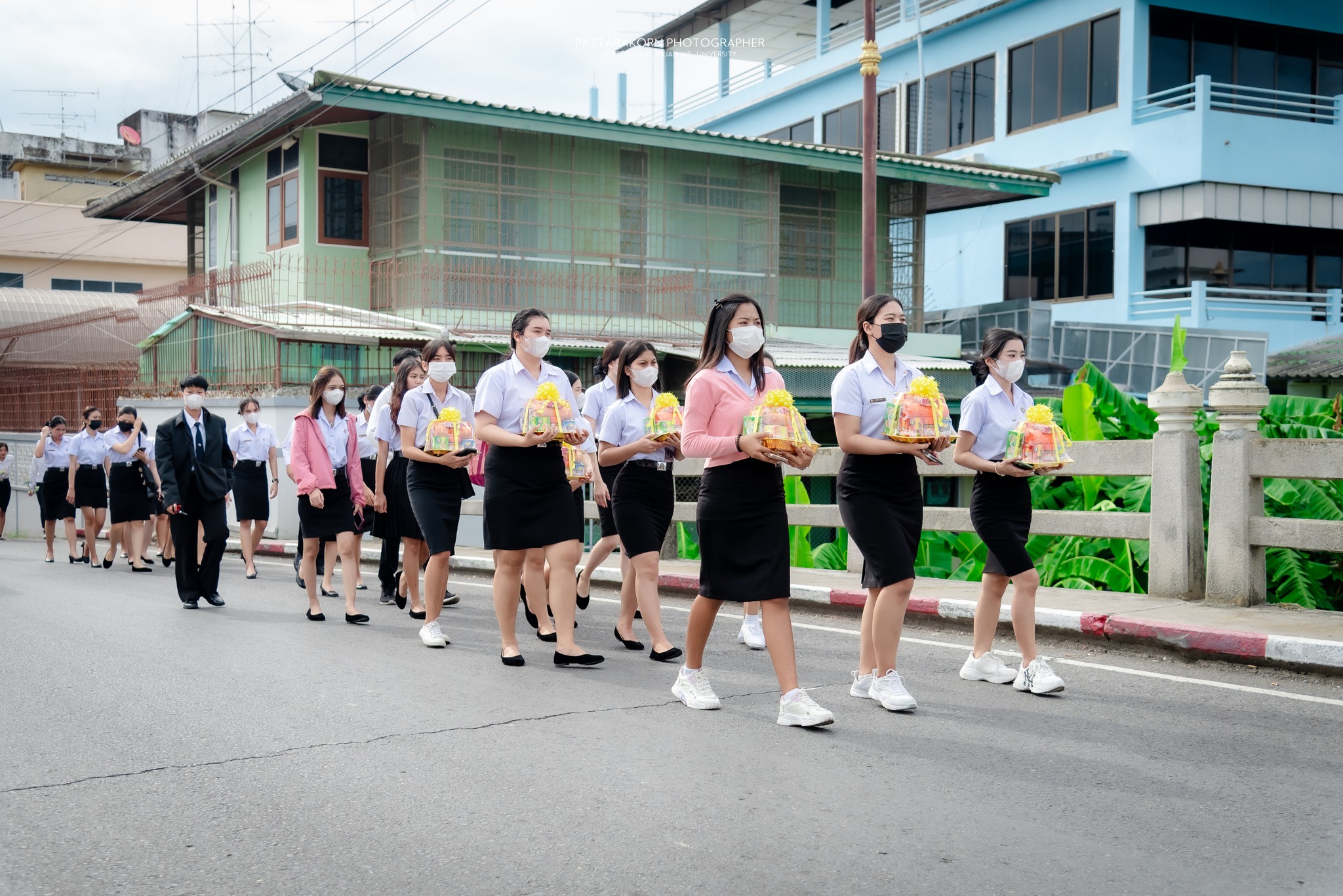 ประเพณีถวายเทียนพรรษา ปี 2566 26 กรกฎาคม 202327 กรกฎาคม 2023Thitiporn Karaketข่าวสื่อสารองค์กร จำนวนผู้ชม : 98 มหาวิทยาลัยราชภัฏเพชรบุรี จัดกิจกรรมสืบสานประเพณี ถวายเทียนพรรษา ปี 2566 วันที่ 26 กรกฎาคม 2566 มหาวิทยาลัยราชภัฏเพชรบุรี โดยกองพัฒนานักศึกษา จัดขบวนแห่เทียนพรรษา ประจำปี 2566 เพื่อนำไปถวายแด่พระภิกษุสงฆ์ ณ วัดมหาธาตุวรวิหาร โดยมีผู้ช่วยศาสตราจารย์วิเชียร เข็มเงิน รองอธิการบดีมหาวิทยาลัยราชภัฏเพชรบุรี เป็นประธานในพิธี พร้อมด้วยคณาจารย์ บุคลากร และนักศึกษา โดยมีขบวนแห่เทียนพรรษารอบตลาดสดเพชรบุรี ซึ่งตลอดระยะทางมีผู้มีจิตศรัทธาร่วมติดพุ่มเงินทำบุญ จากนั้นได้นำเทียนแห่รอบพระอุโบสถและสวดมนต์อาราธนาศีล ถวายเครื่องไทยธรรมแด่พระสงฆ์ จากนั้นผู้ช่วยศาสตราจารย์วิเชียร เข็มเงิน ได้เป็นผู้แทนมหาวิทยาลัย มอบพุ่มเงินทำบุญจากผู้มีจิตศรัทธา จำนวน 19,485 บาท ให้แก่ทางวัดเพื่อนำไปใช้ประโยชน์ในการทำนุบำรุงพระพุทธศาสตนาต่อไป เช่นเดียวกันกับคณะต่าง ๆ ทั้ง 8 คณะของมหาวิทยาลัยราชภัฏเพชรบุรี ที่ได้จัดกิจกรรมสืบสานประเพณี ถวายเทียนพรรษา โดยมีรายละเอียดการจัดกิจกรรม ณ วัดต่าง ๆ ดังนี้ คณะครุศาสตร์ ถวายแด่พระภิกษุสงฆ์วัดลาดโพธิ์ อำเภอเมืองเพชรบุรี จังหวัดเพชรบุรี คณะวิทยาการจัดการ ถวายแด่พระภิกษุสงฆ์วัดใหญ่สุวรรณารามวรวิหาร อำเภอเมืองเพชรบุรี จังหวัดเพชรบุรี คณะเทคโนโลยีสารสนเทศ ถวายแด่พระภิกษุสงฆ์วัดไสกระดาน อำเภอเมืองเพชรบุรี จังหวัดเพชรบุรี คณะวิทยาศาสตร์และเทคโนโลยี ถวายแด่พระภิกษุสงฆ์วัดกำแพงแลง อำเภอเมืองเพชรบุรี จังหวัดเพชรบุรี การจัดกิจกรรมในครั้งนี้จัดขึ้นเพื่อส่งเสริมให้คณาจารย์และนักศึกษาได้มีส่วนร่วมในวันสำคัญทางพระพุทธศาสนา อีกทั้งเป็นการส่งเสริมและพัฒนานักศึกษาให้มีคุณธรรมจริยธรรม อนุรักษ์และสืบสานศิลปวัฒนธรรมประเพณีของไทยให้คงอยู่ โดยมีความสอดคล้องกับนโยบายของมหาวิทยาลัยราชภัฏเพชรบุรีในด้านศิลปวัฒนธรรม คุณธรรมและจริยธรรม สืบสานการทำนุบำรุงศิลปวัฒนธรรมที่ดีของไทยให้อยู่คู่คนไทยตลอดไป #กลุ่มงานสื่อสารองค์กร มหาวิทยาลัยราชภัฏเพชรบุรี กองพัฒนานักศึกษา คณะครุศาสตร์ คณะวิทยาการจัดการ คณะเทคโนโลยีสารสนเทศ คณะวิทยาศาสตร์และเทคโนโลยี Facebook iconFacebookTwitter iconTwitterLINE iconLine