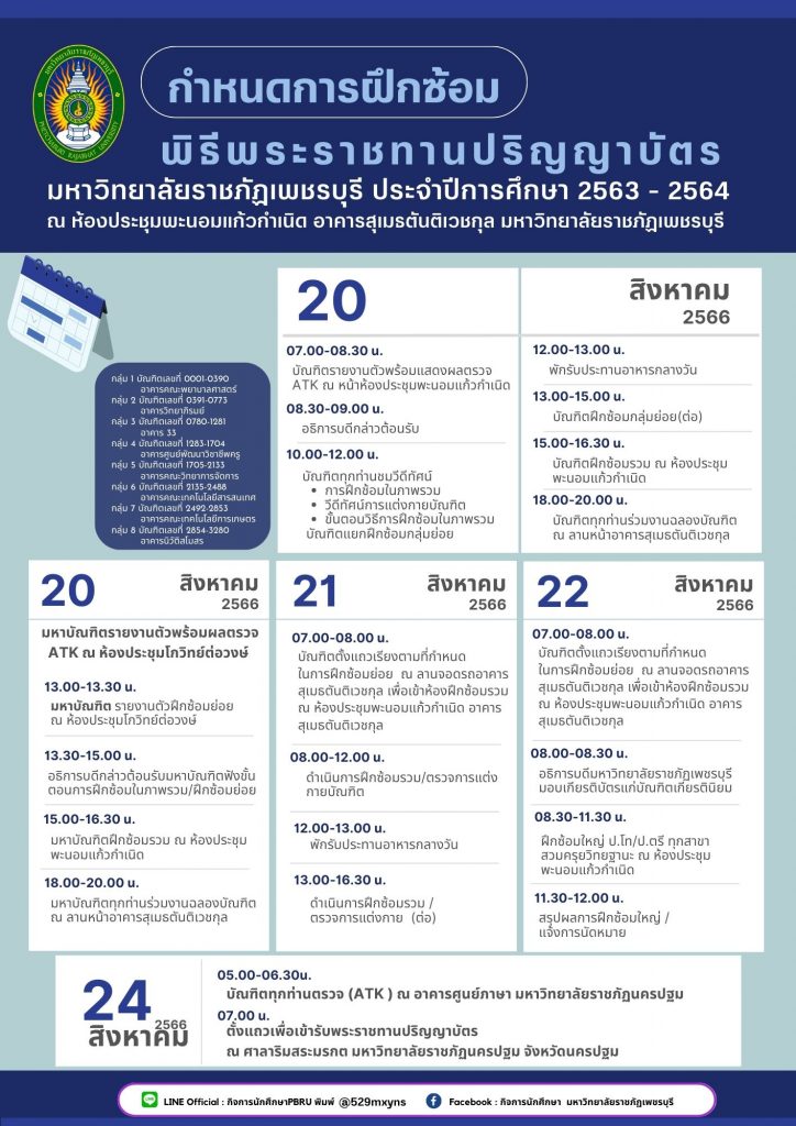 กำหนดการ-ปริญญา-66-3-724×1024 ประกาศกำหนดการฝึกซ้อมพิธีรับพระราชทานปริญญาบัตร ประจำปีการศึกษา 2563 – 2564