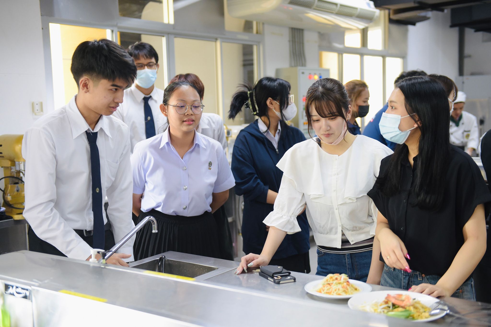 กิจกรรมแลกเปลี่ยนศิลปวัฒนธรรม Wayo –PBRU Culture and Arts Exchange 7 กันยายน 20238 กันยายน 2023Thitiporn Karaketข่าวสื่อสารองค์กร จำนวนผู้ชม : 181 กิจกรรมแลกเปลี่ยนศิลปวัฒนธรรม Wayo –PBRU Culture and Arts Exchange อาจารย์ ดร.มนัญญา ปริยวิชญภักดี รองอธิการบดีมหาวิทยลัยราชภัฏเพชรบุรี กล่าวให้การต้อนรับคณาจารย์และนักศึกษาจาก Wayo Women’s University ประเทศญี่ปุ่น นำโดย Asst.Professor. Dr. Itagaki Takeru ในโอกาสเดินทางมาแลกเปลี่ยนวัฒนธรรมระหว่างประเทศไทยและประเทศญี่ปุ่น โดยมีอาจารย์ ดร.มลทิชา โอซาวะ อาจารย์ประจำสาขาวิชาอุตสาหกรรมท่องเที่ยว และรองศาสตราจารย์ ดร.กมลทิพย์ พลบุตร อาจารย์ประจำสาขาวิชาภาษาอังกฤษธุรกิจ พร้อมทั้งนักศึกษาทั้งสองสาขาวิชาเข้าร่วมกิจกรรมแลกเปลี่ยนวัฒนธรรม ระหว่างวันที่ 6 -7 กันยายน 2566 ณ คณะมนุษยศาสตร์และสังคมศาสตร์และพื้นที๋โดยรอบมหาวิทยาลัย โดยกิจกรรมประกอบไปด้วย การแสดง 4 ภาค โดยนักศึกษาสาขาวิชานาฏศิลป์ศึกษา การนำเสนอวัฒนธรรมระหว่างประเทศไทยและประเทศญี่ปุ่นแล้ว ยังได้ทำกิจกรรม Workshop ได้แก่ เพ้นท์กระเป๋าผ้าลายขนมไทย โดยสาขาวิชาศิลปศึกษา ทำกิจกรรมปูนปั้นโดยข่างชัชวาลย์ สหัสสพาศน์ ช่างปูนปั้นของประจำจังหวัดเพชรบุรี ตลอดจนการทำอาหารไทย 2 เมนู ได้แก่ ผัดไทยและส้มตำไทย โดยมีคณาจารย์และนักศึกษาจากสาขาวิชาเทคโนโลยีและศิลปะการประกอบอาหาร คณะวิทยาศาสตร์และเทคโนโลยี และการเข้าเยี่ยมชมศูนย์เรียนรู้ศาสตร์พระราชาเพื่อการพัฒนาท้องถิ่นอย่างยั่งยืน สำหรับการแลกเปลี่ยนวัฒนธรรมในครั้งนี้ นักศึกษาจากมหาวิทยาลัยราชภัฏเพชรบุรีและนักศึกษาจาก Wayo Women’s University ต่างได้มีโอกาสพูดและแลกเปลี่ยนเรียนรู้ซึ่งกันและกัน ถือเป็นโอกาสในการพัฒนาทักษะทางด้านภาษาและเป็นแรงจูงใจในการเรียนให้กับนักศึกษา # กลุ่มงานสื่อสารองค์กร มหาวิทยาลัยราชภัฏเพชรบุรี Facebook iconFacebookTwitter iconTwitterLINE iconLine