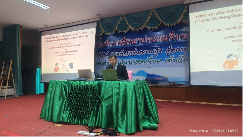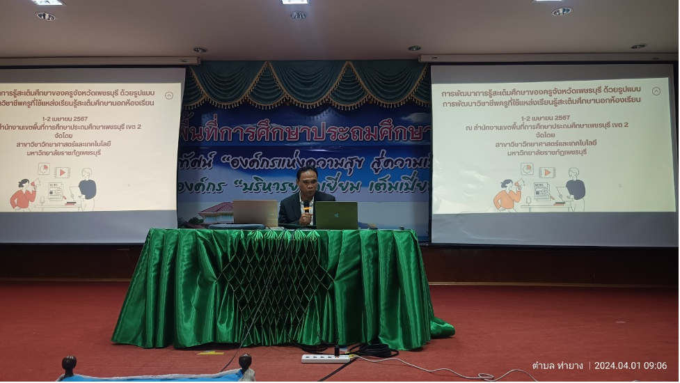 คณะวิทยาศาสตร์และเทคโนโลยี จัดโครงการพัฒนาการเรียนรู้สะเต็มของครูทยาศาสตร์ 2 เมษายน 20242 เมษายน 2024piyanunข่าวประชาสัมพันธ์, ข่าวสื่อสารองค์กร จำนวนผู้ชม : 21 คณะวิทยาศาสตร์และเทคโนโลยี จัดโครงการพัฒนาการเรียนรู้สะเต็มของครูทยาศาสตร์ ผู้ช่วยศาสตราจารย์ณรงค์ ไกรเนตร์ คณบดีคณะวิทยาศาสตร์และเทคโนโลยี พร้อมด้วยคณาจารย์สาขาวิชาวิทยาศาสตร์และเทคโนโลยี จัดโครงการอบรมเชิงปฏิบัติการโครงการการพัฒนาการเรียนรู้สะเต็มของครูจังหวัดเพชรบุรี ยกระดับคุณภาพการศึกษาโรงเรียนขนาดเล็ก โดยรูปแบบการพัฒนาวิชาชีพครูที่ใช้แหล่งเรียนรู้สะเต็มศึกษานอกห้องเรียน ณ สำนักงานเขตพื้นที่การศึกษาประถมศึกษาเพชรบุรี เขต 2 ระหว่างวันที่ 1-2 เมษายน 2567 โดยมีผู้ช่วยศาสตราจารย์พจนารถ บัวเขียว รองอธิการบดีมหาวิทยาลัยราชภัฏเพชรบุรี ด้านงานพัฒนาท้องถิ่นที่ยั่งยืน เป็นประธานในการเปิดโครงการ ทั้งนี้ ได้รับเกียรติจาก รองศาสตราจารย์ ดร.ศศิเทพ ปิติพรเทพิน รองหัวหน้าภาควิชาการศึกษา คณะศึกษาศาสตร์ มหาวิทยาลัยเกษตรศาสตร์เป็นวิทยากรให้ความรู้เกี่ยวกับ STEM literacy รวมถึงการจัดการศึกษาในรูปแบบ outdoor -STEM ร่วมกับคณาจารย์สาขาวิชาวิทยาศาสตร์และเทคโนโลยี ในการบรรยายให้ความรู้แก่ครูผู้สอนวิทยาศาสตร์ในสังกัดพื้นที่การศึกษาประถมศึกษาเพชรบุรี เขต 2 #กลุ่มงานสื่อสารองค์กร มหาวิทยาลัยราชภัฏเพชรบุรี Facebook iconFacebookTwitter iconTwitterLINE iconLine