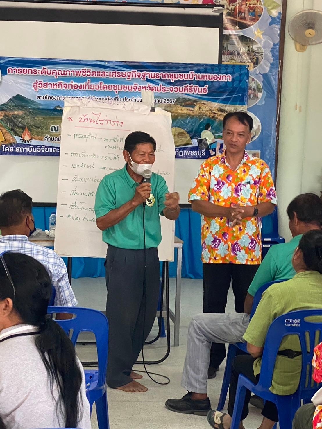 มหาวิทยาลัยราชภัฏเพชรบุรี ลงพื้นที่พัฒนาชุมชนบ้านหนองกา ตำบลปราณบุรี อำเภอปราณบุรี จังหวัดประจวบคีรีขันธ์ 14 เมษายน 202414 เมษายน 2024piyanunข่าวประชาสัมพันธ์, ข่าวสื่อสารองค์กร จำนวนผู้ชม : 93 มหาวิทยาลัยราชภัฏเพชรบุรี ลงพื้นที่พัฒนาชุมชนบ้านหนองกา ตำบล ปราณบุรี อำเภอปราณบุรี จังหวัด ประจวบคีรีขันธ์ ตามโครงการยุทธศาสตร์ การพัฒนาท้องถิ่นอย่างยั่งยืน ปีงบประมาณ 2567 อาจารย์พนัส ชัยรัมย์ ผู้รับผิดชอบโครงการการยกระดับคุณภาพชีวิตและเศรษฐกิจฐานรากชุมชนบ้านหนองกา สู่วิสาหกิจโดยชุมชน จังหวัดประจวบคีรีขันธ์ ภายใต้โครงการพัฒนาคุณภาพชีวิตและเศรษฐกิจฐานราก และทีมคณะทำงานพัฒนาท้องถิ่นตามศาสตร์พระราชา ลงพื้นที่จัดกิจกรรมพัฒนาศักยภาพของชุมชน เพื่อยกระดับสู่ชุมชนแห่งการท่องเที่ยวอย่างยั่งยืน ณ ชุมชนบ้านหนองกา ตำบลปราณบุรี อำเภอปราณบุรี จังหวัดประจวบคีรีขันธ์ ระหว่างวันที่ 9 – 10 เมษายน ที่ผ่านมา วันที่ 9 เมษายน พ.ศ. 2567 ได้นำชุมชนศึกษาดูงานที่ ชุมชนบ้านถ้ำเสือ อำเภอแก่งกระจาน และชุมชนบ้านไร่กร่าง อำเภอบ้านลาด จังหวัดเพชรบุรี ทั้งในส่วนของการบริหารจัดการชุมชน การจัดกิจกรรมสำหรับนักท่องเที่ยว การสร้างองค์ความรู้ การรักษาภูมิปัญญาท้องถิ่น เอกสักษณ์ของชุมชน เพื่อนำความรู้ที่ได้รับไปพัฒนา และต่อยอดการท่องเที่ยวโดยชุมชนบ้านหนองกา วันที่ 10 เมษายน พ.ศ. 2567 ได้จัดอบรมเชิงปฏิบัติการการเป็นเจ้าบ้านที่ดี และการวางแผนจัดทำเส้นทางการท่องเที่ยวและพัฒนาเส้นทางการท่องเที่ยว ให้กับชุมชนบ้านหนองกา โดยได้รับเกียรติจากคุณพรชัย คุ้มมี มัคคุเทศก์นำเที่ยว เป็นวิทยากรบรรยายให้ความรู้ ด้วยการค้นหาจุดเด่น เอกลักษณ์ความเป็นตนเองของชุมชน กิจกรรมต่าง ๆ ในแผนเส้นทางการท่องเที่ยว และได้ลงพื้นที่เยี่ยมชมฐานการเรียนรู้ในชุมชนบ้านหนองกา เพื่อพัฒนาศักยภาพชุมชนและพร้อมที่จะเปิดแหล่งท่องเที่ยวโดยชุมชนต่อไป #กลุ่มงานสื่อสารองค์กร มหาวิทยาลัยราชภัฏเพชรบุรี Facebook iconFacebookTwitter iconTwitterLINE iconLine