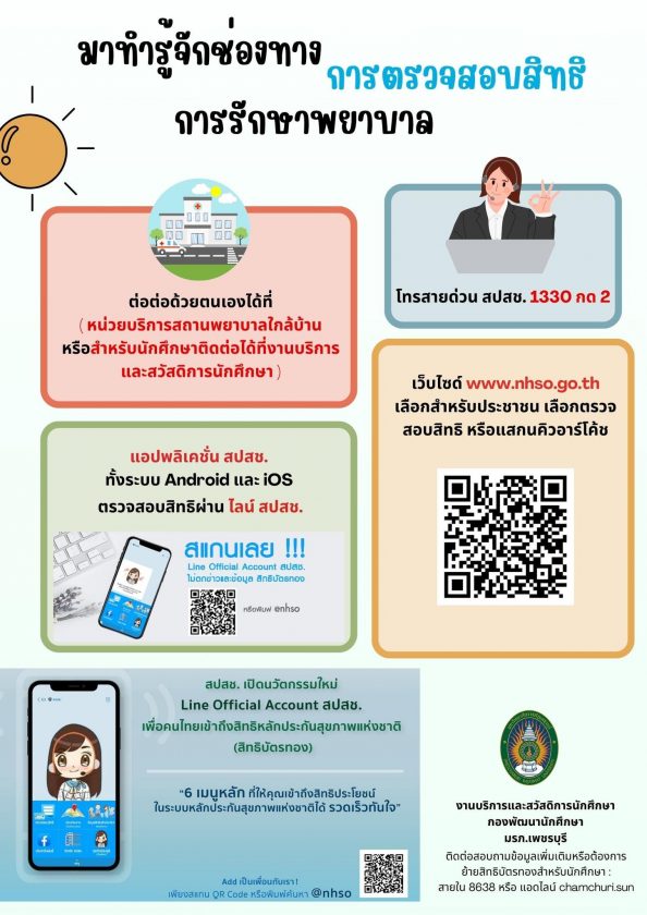 การตรวจสอบสิทธิ์การรักษาพยาบาล และหลักเกณฑ์การจ่ายเงินกองทุนสวัสดิการนักศึกษา 23 เมษายน 202423 เมษายน 2024AdminNongข่าวประชาสัมพันธ์, ข่าวสำหรับนักศึกษา จำนวนผู้ชม : 7 การตรวจสอบสิทธิ์การรักษาพยาบาล และหลักเกณฑ์การจ่ายเงินกองทุนสวัสดิการนักศึกษาหากประสบอุบัติเหตุ Facebook iconFacebookTwitter iconTwitterLINE iconLine